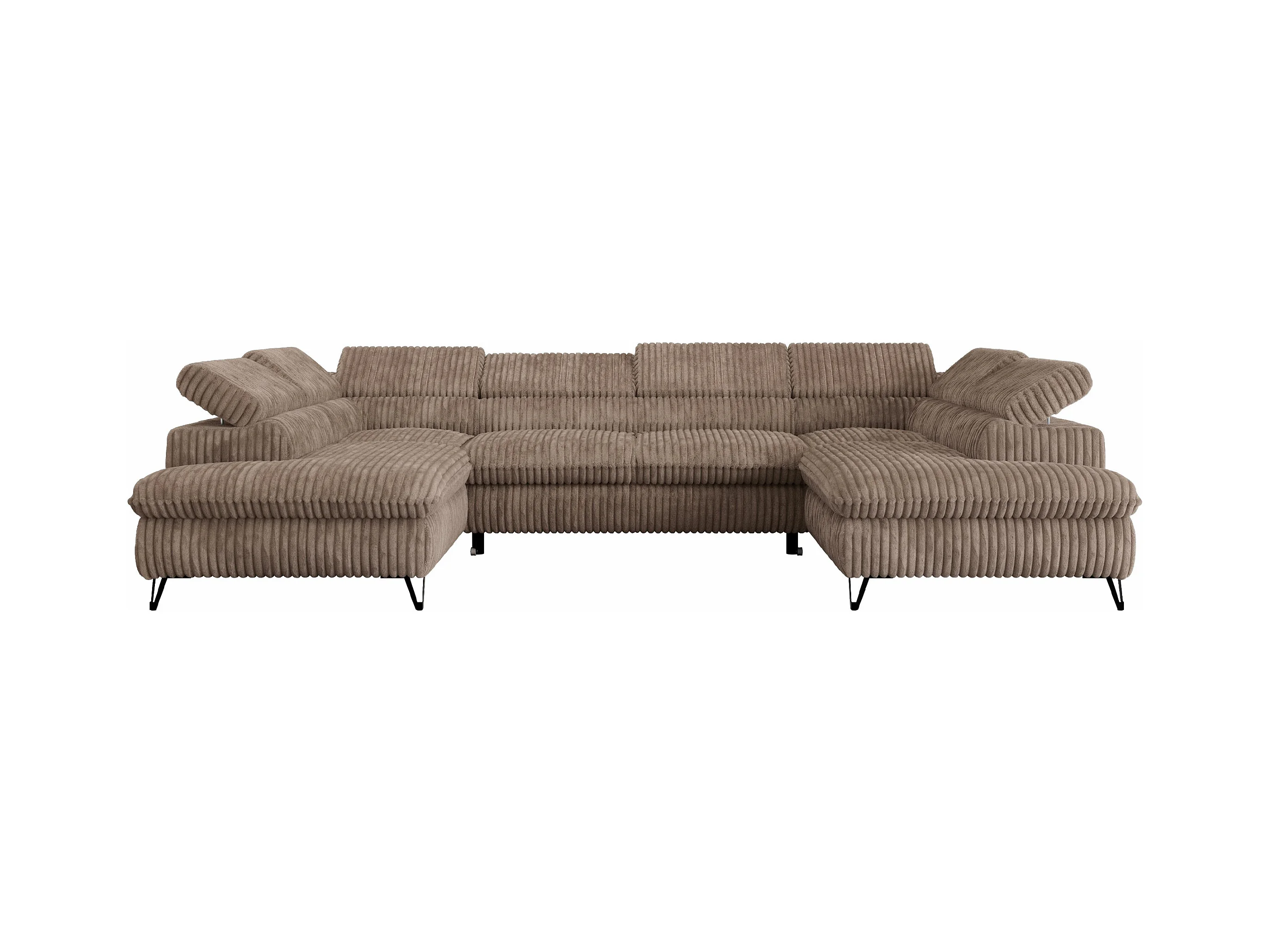 Ecksofa PETER U - schlaffunktion und Bettkästen, verstellbare Kopfstützen - Braun Cord