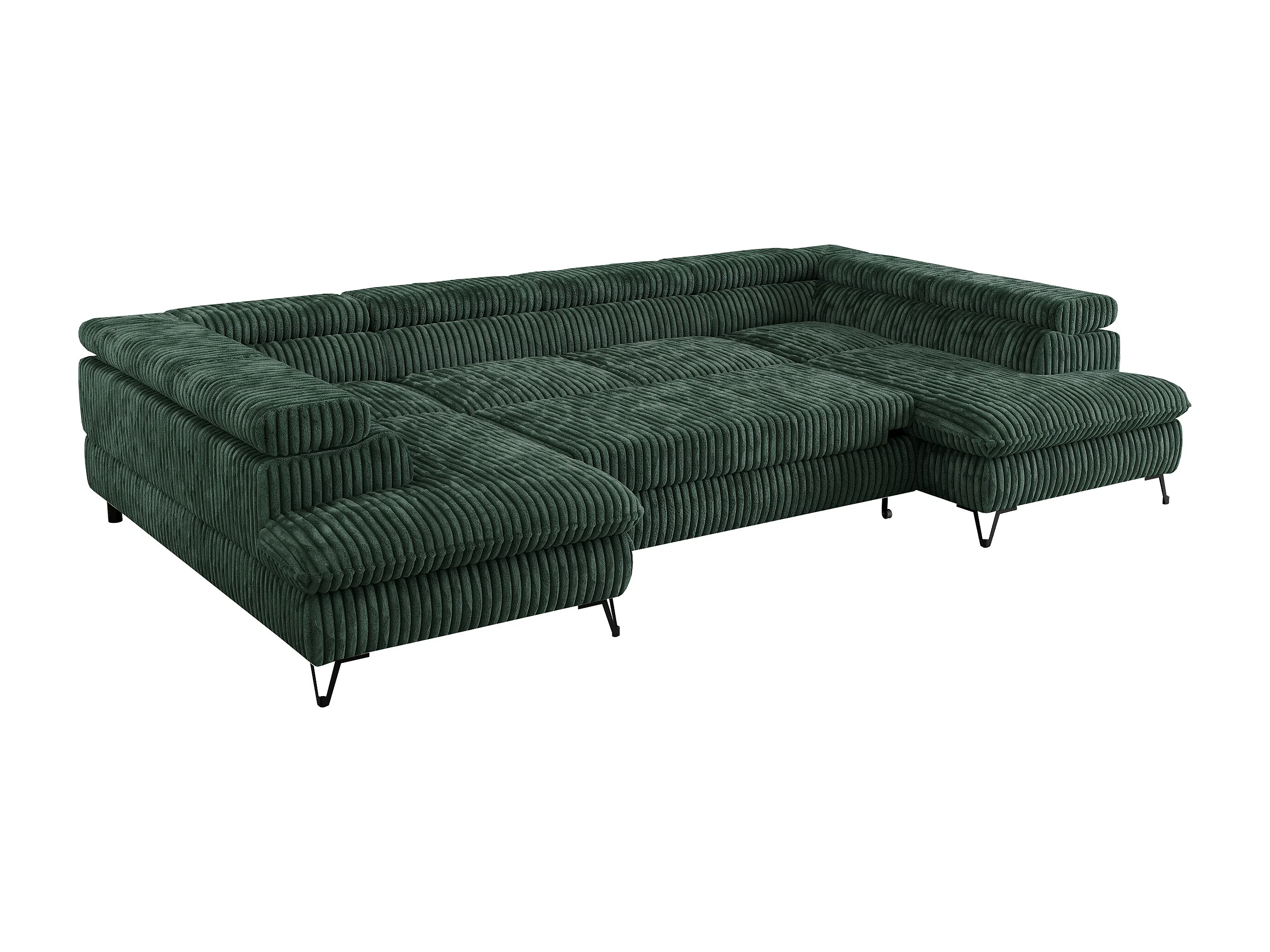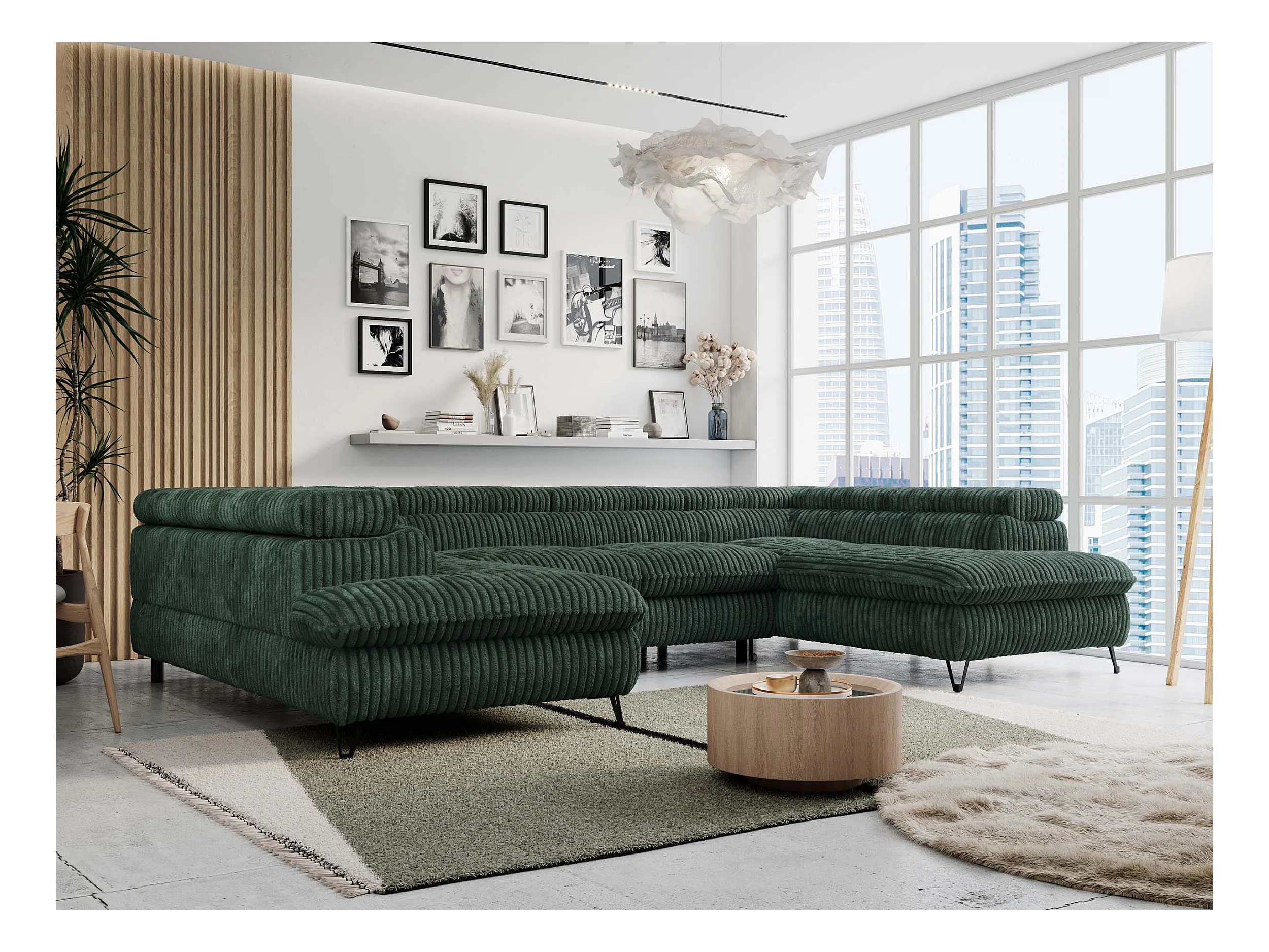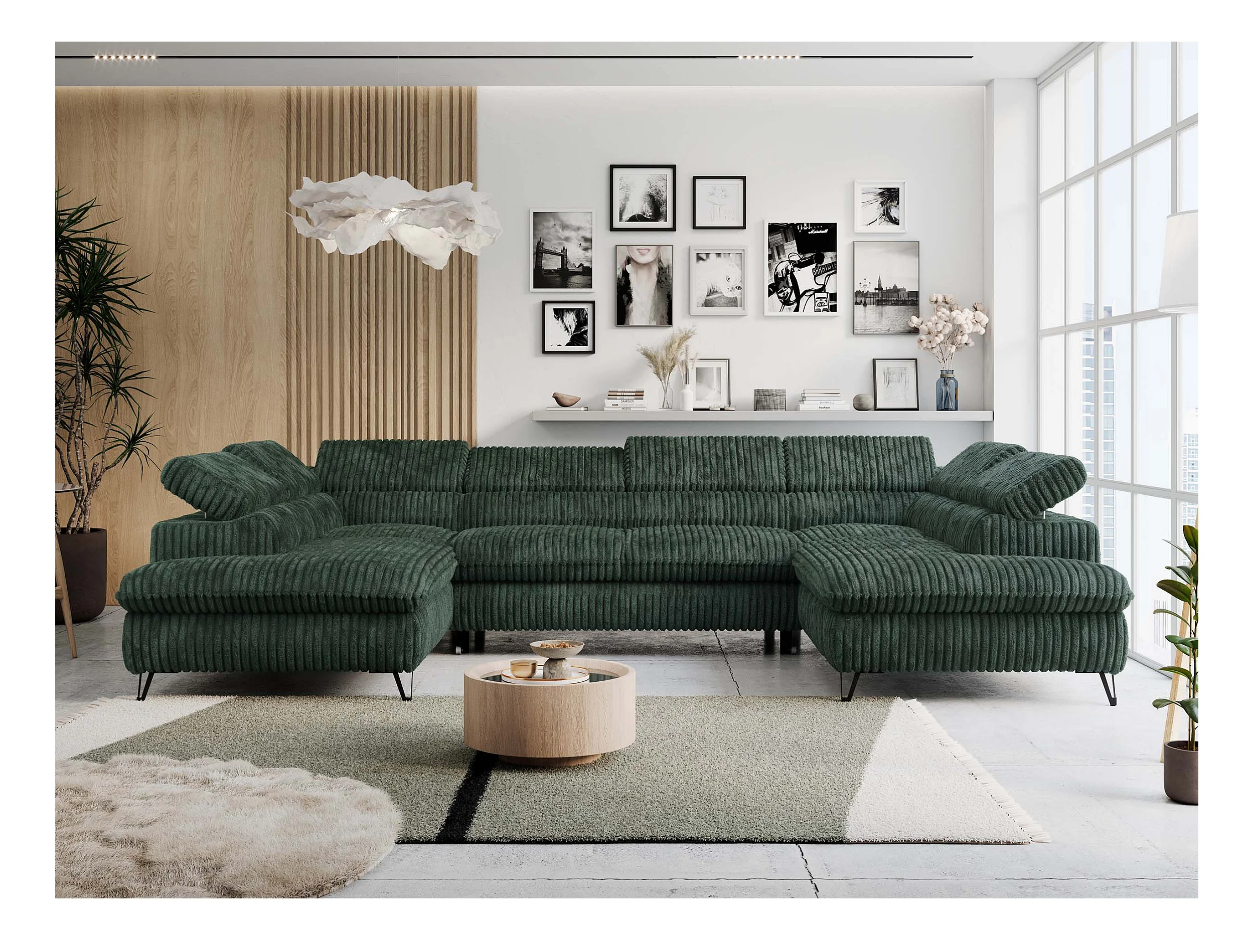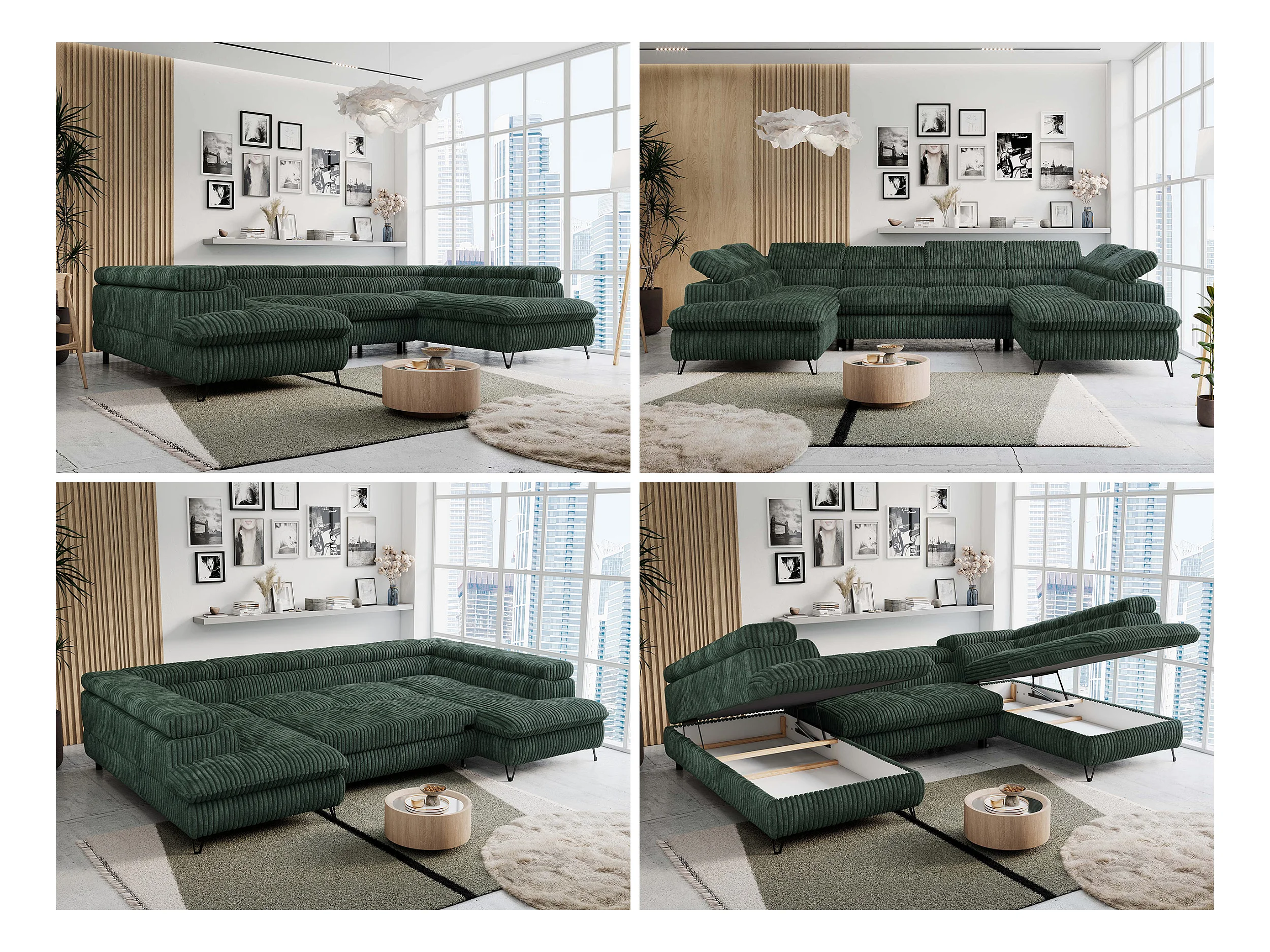 Ecksofa PETER U - schlaffunktion und Bettkästen, verstellbare Kopfstützen - Grün Cord