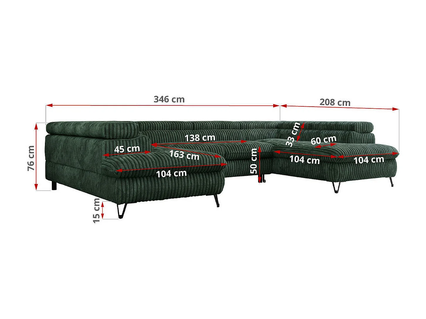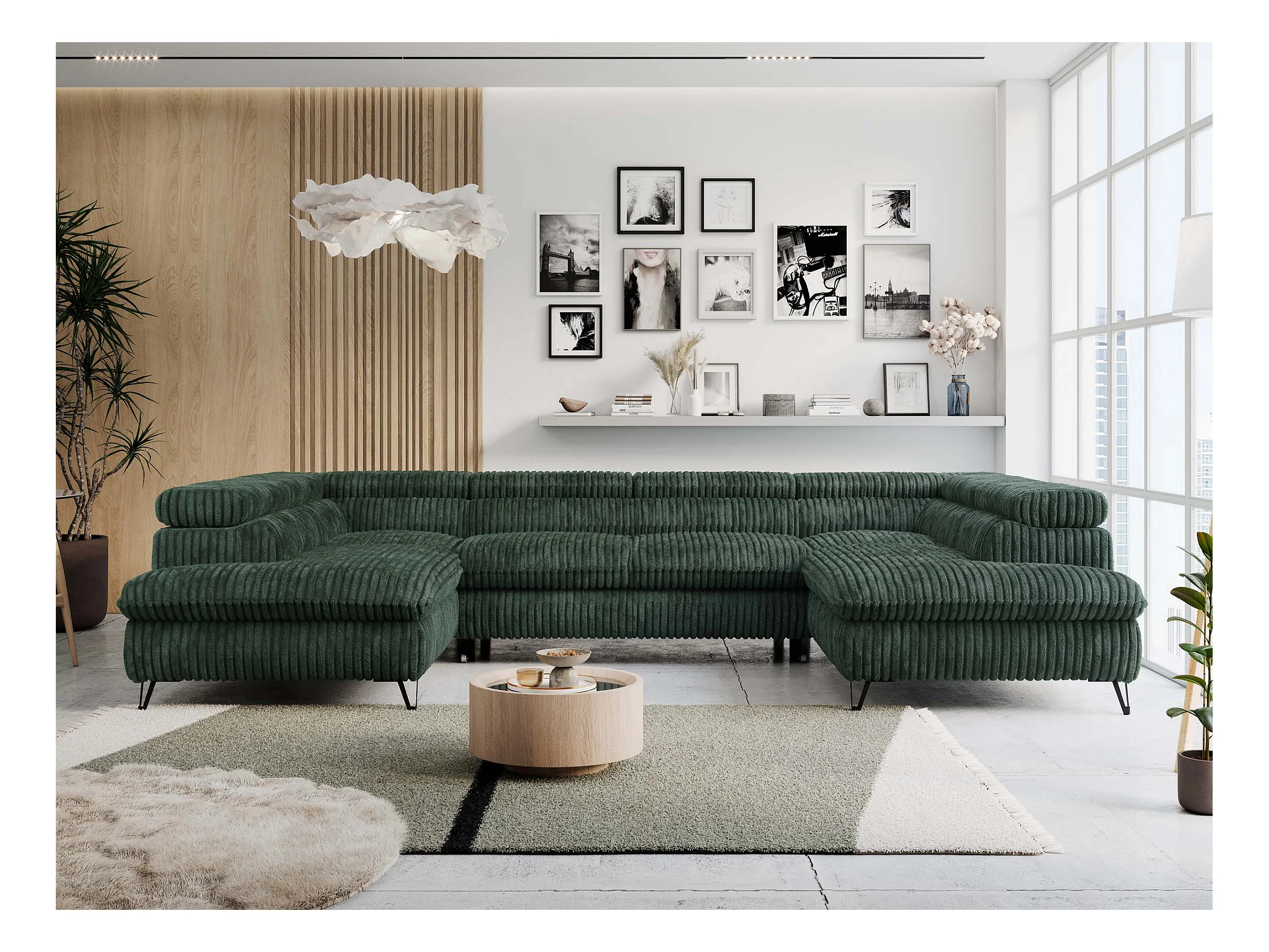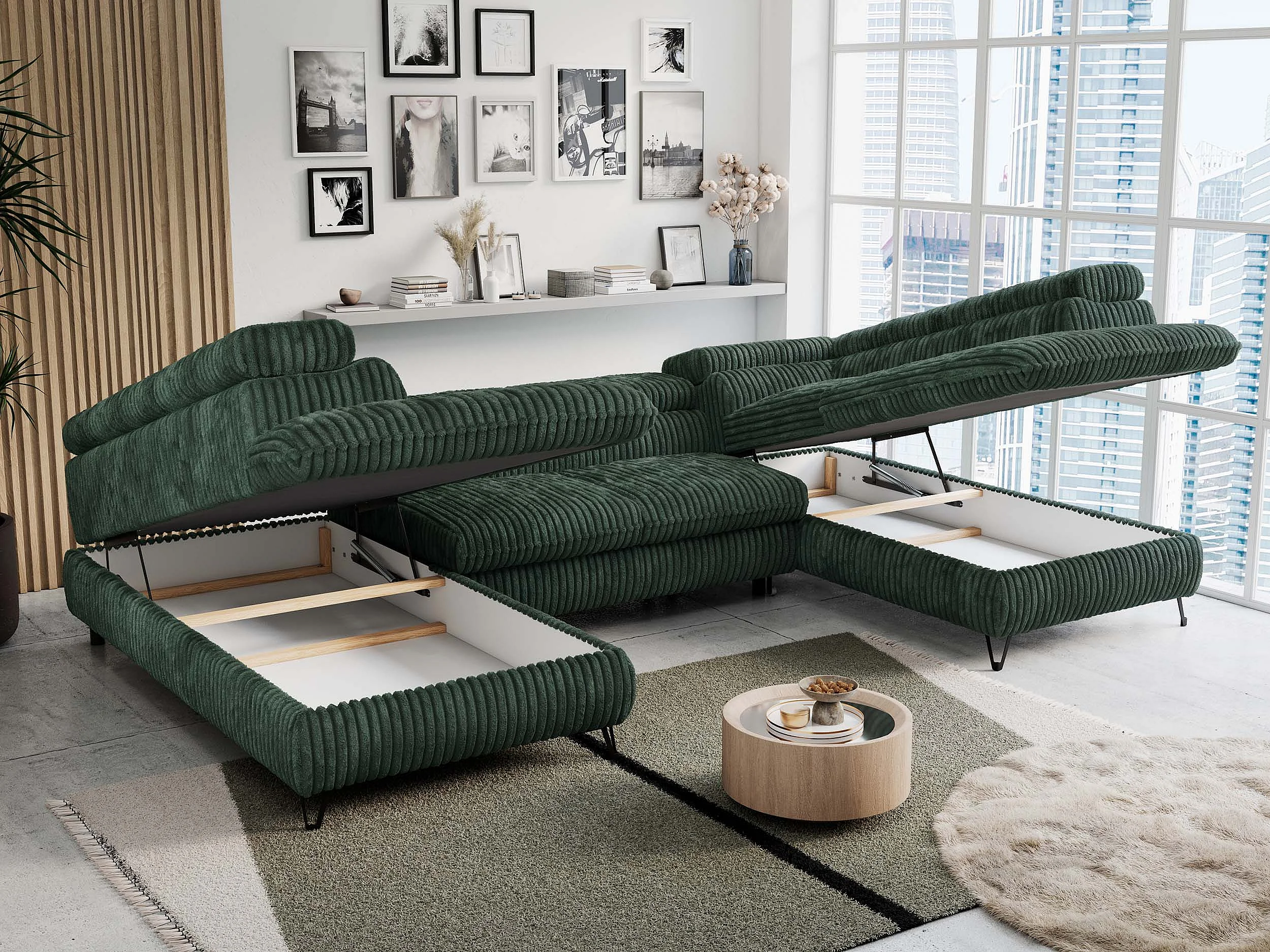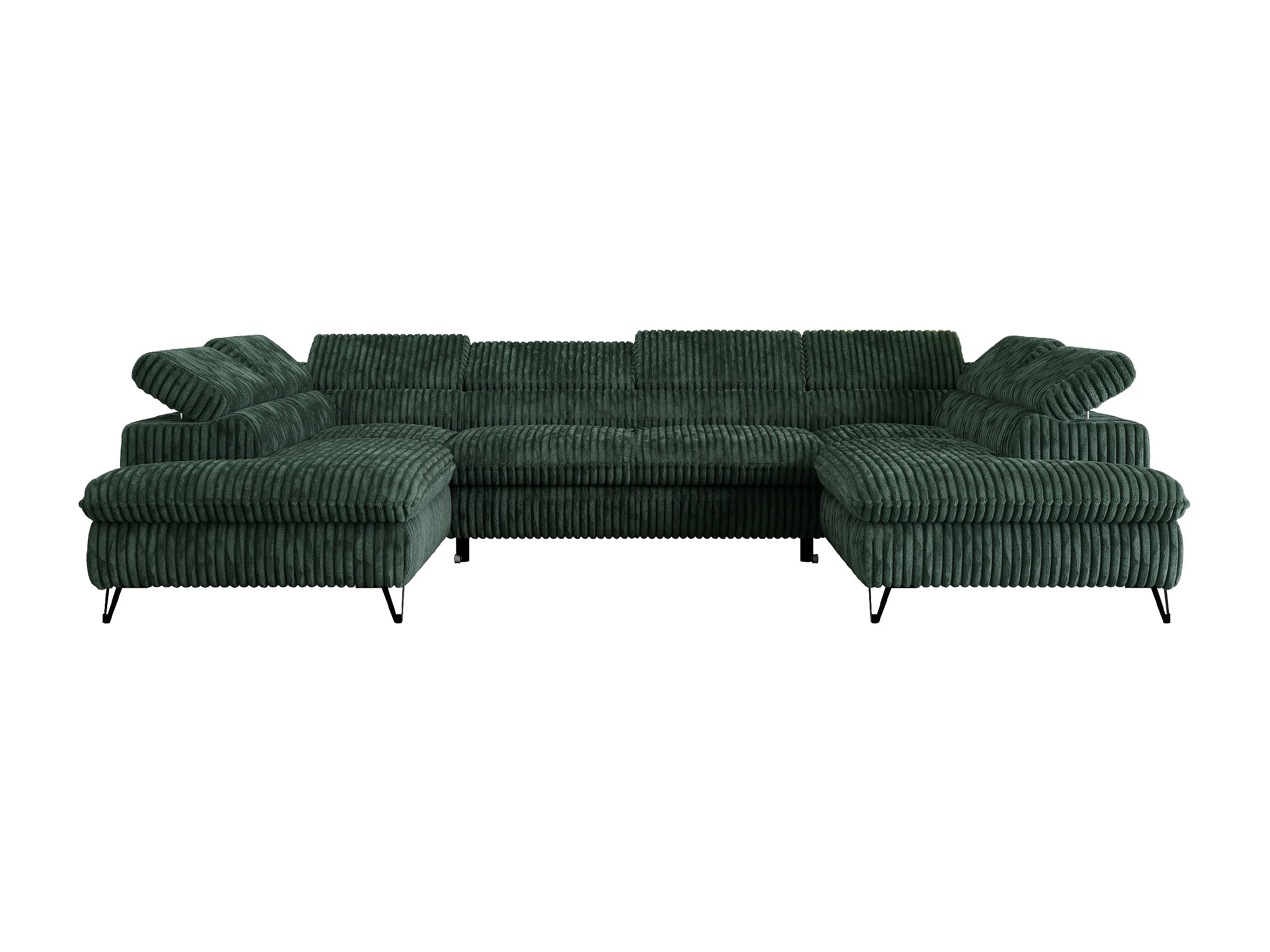 Ecksofa PETER U - schlaffunktion und Bettkästen, verstellbare Kopfstützen - Grün Cord
