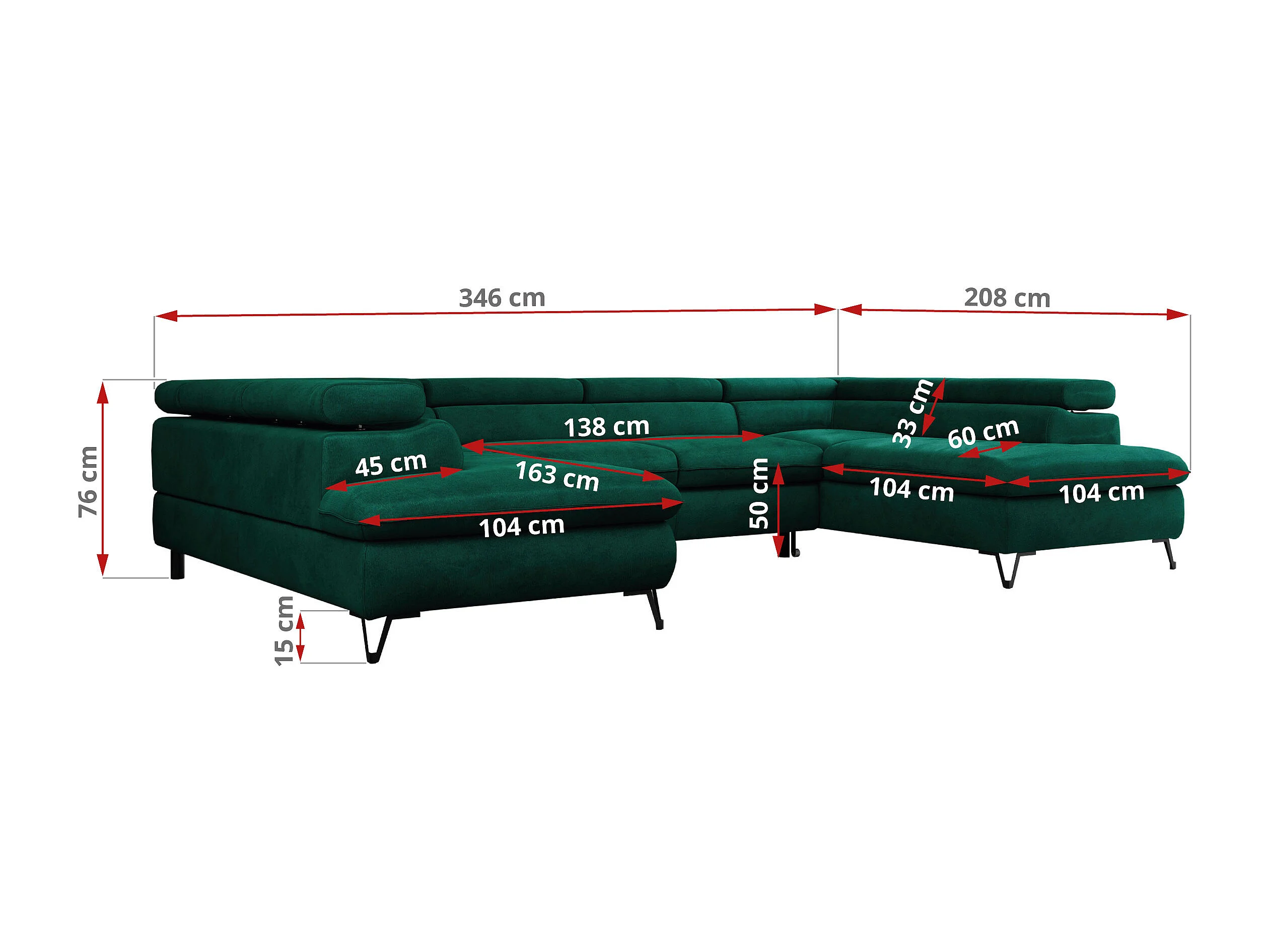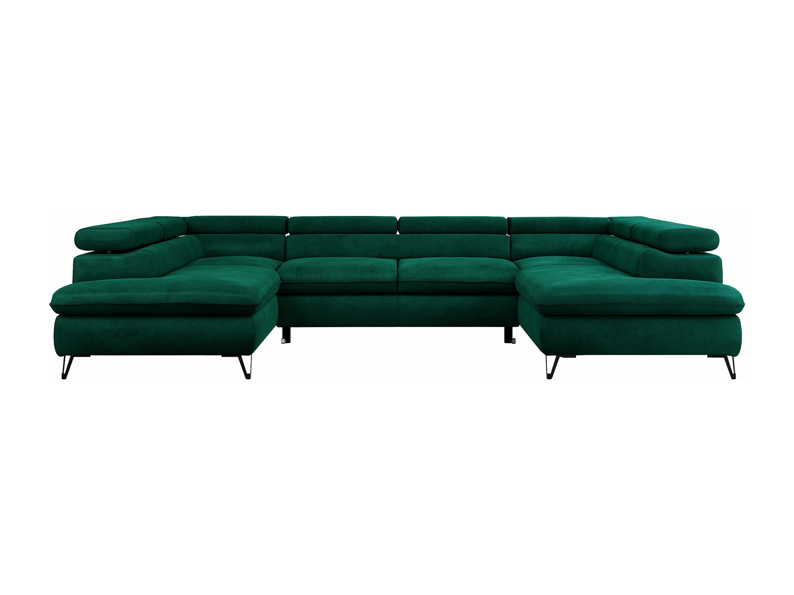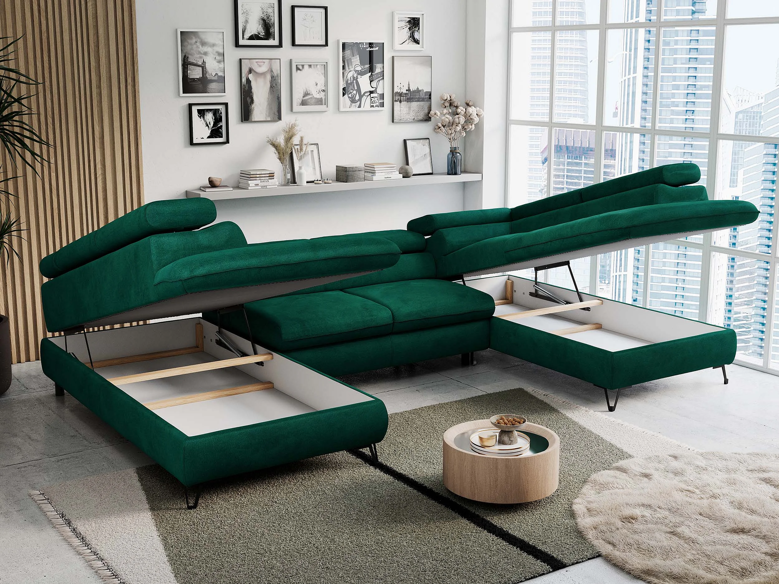 Ecksofa PETER U - schlaffunktion und Bettkästen, verstellbare Kopfstützen - Grün Velvet