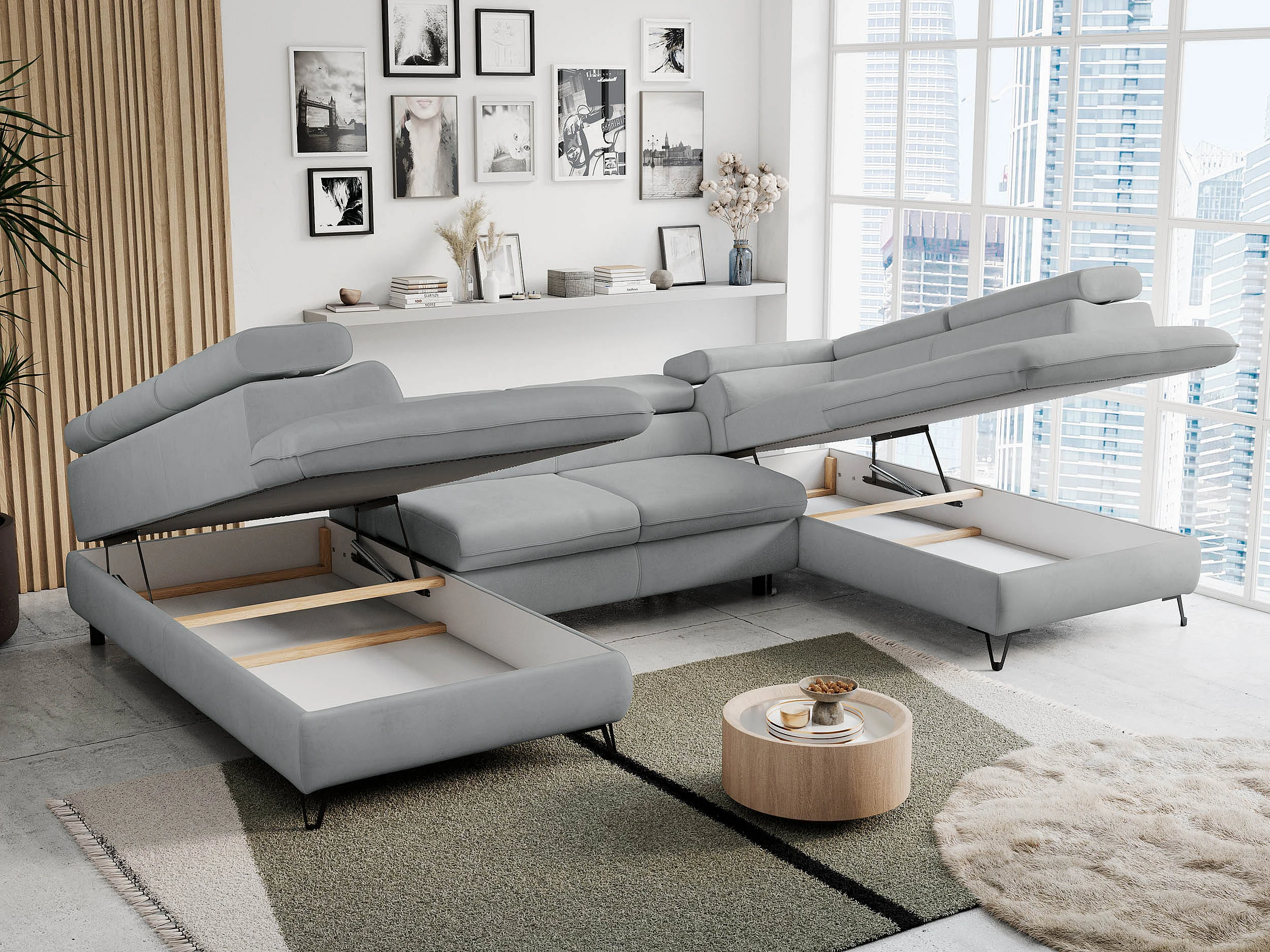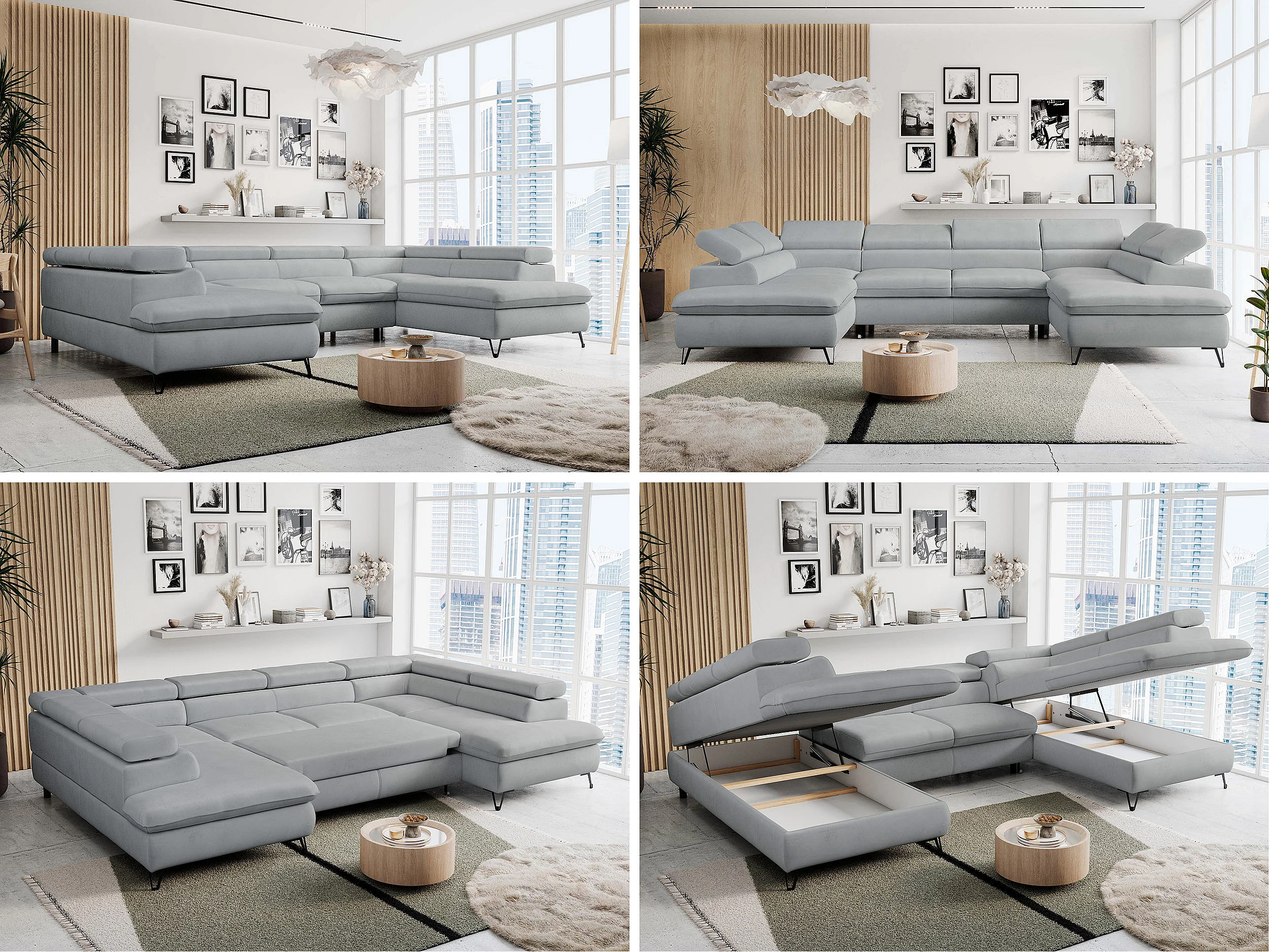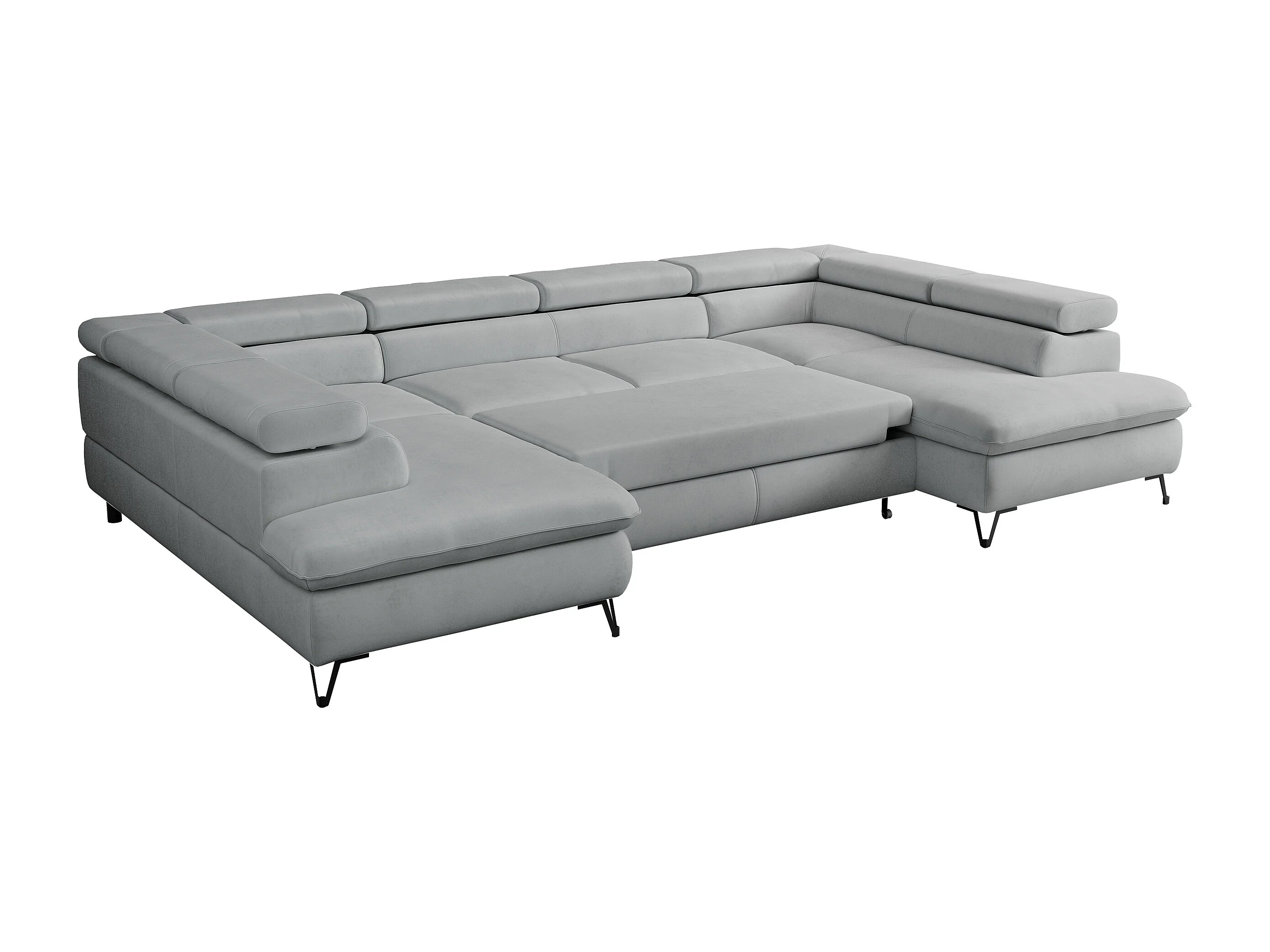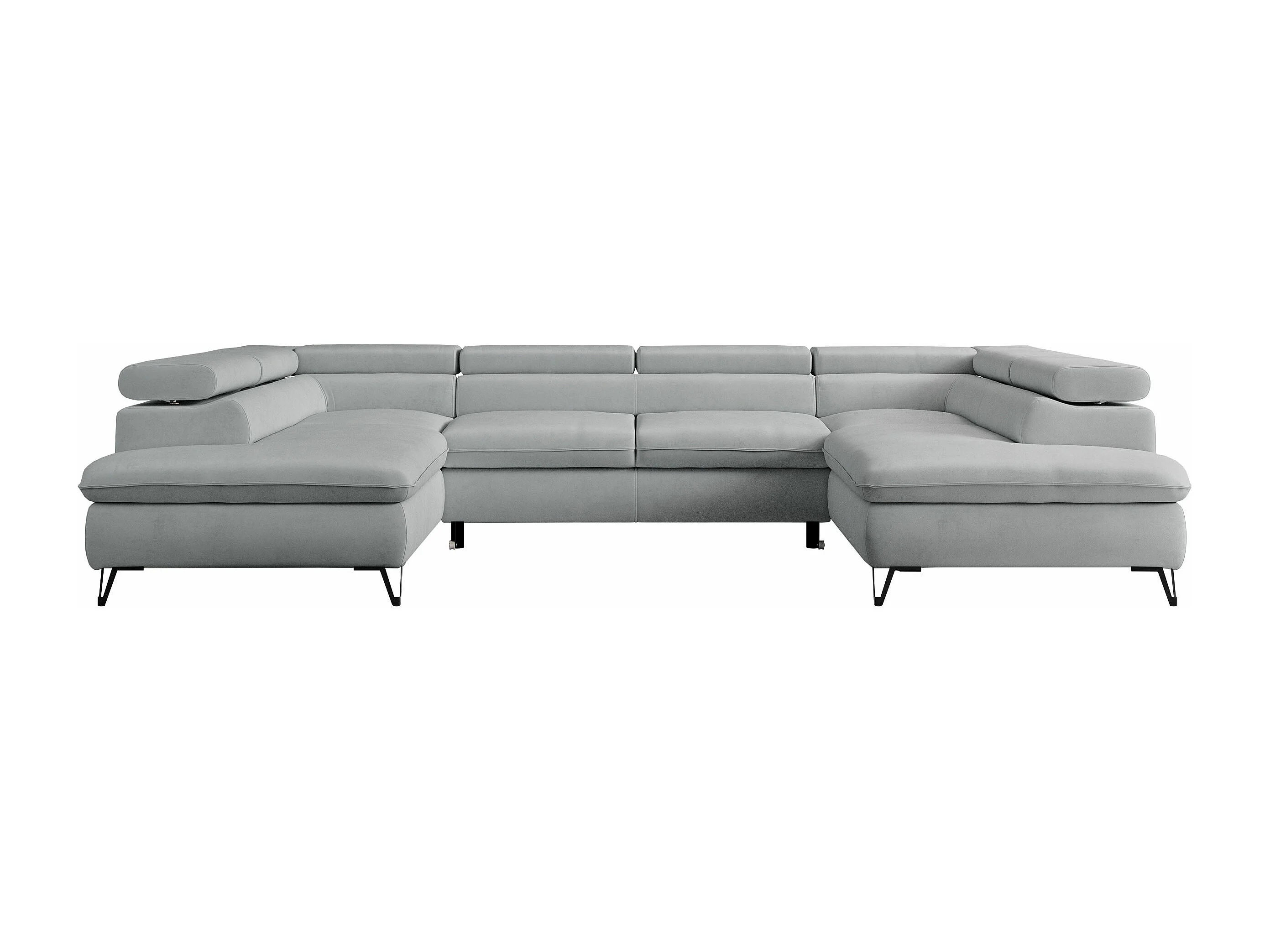 Ecksofa PETER U - schlaffunktion und Bettkästen, verstellbare Kopfstützen - Hellgrau Velvet