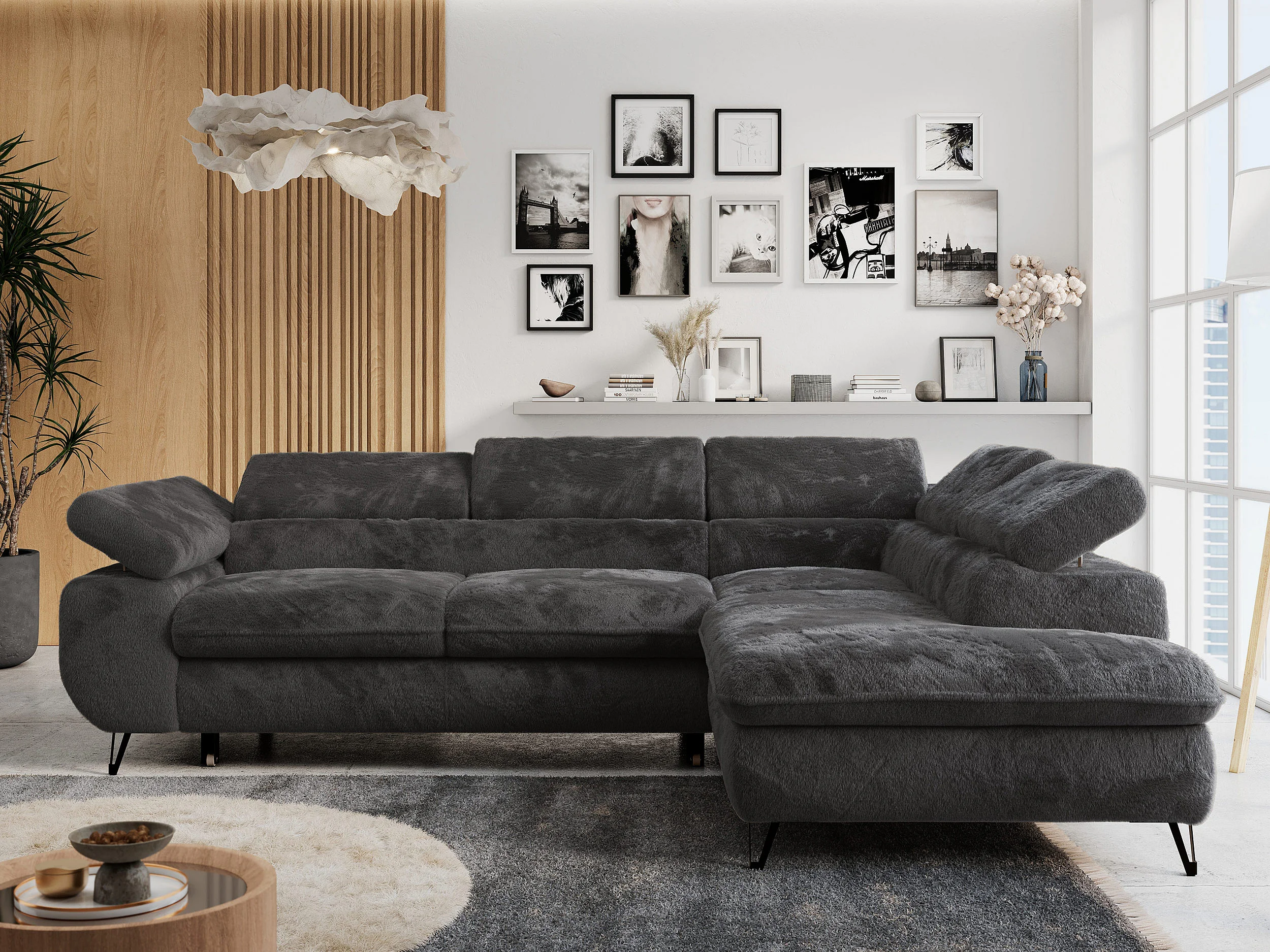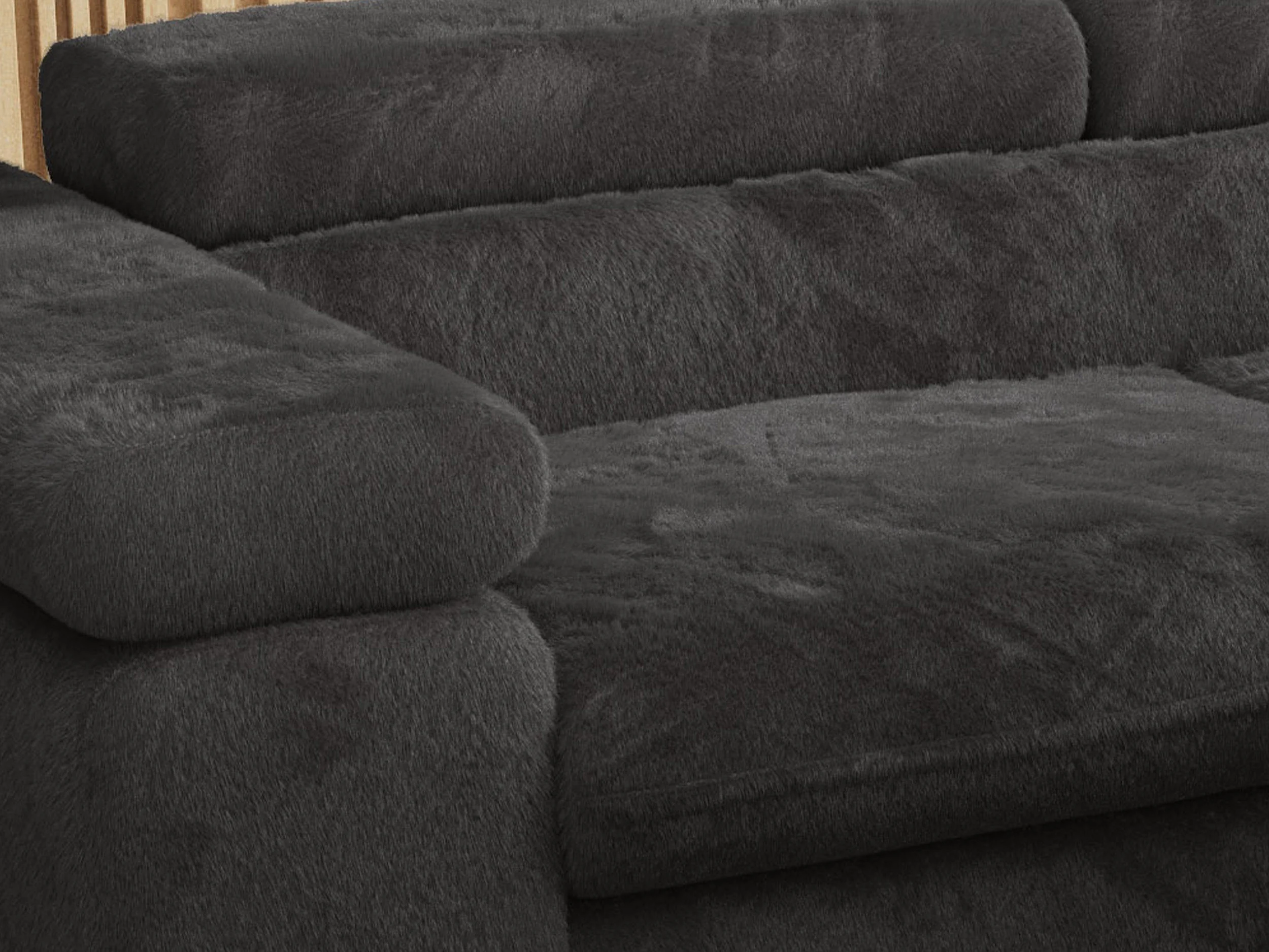 Ecksofa PETER verstellbare Kopfstütze, schlaffunktion - Anthrazit Plüsch - Ecke Rechts