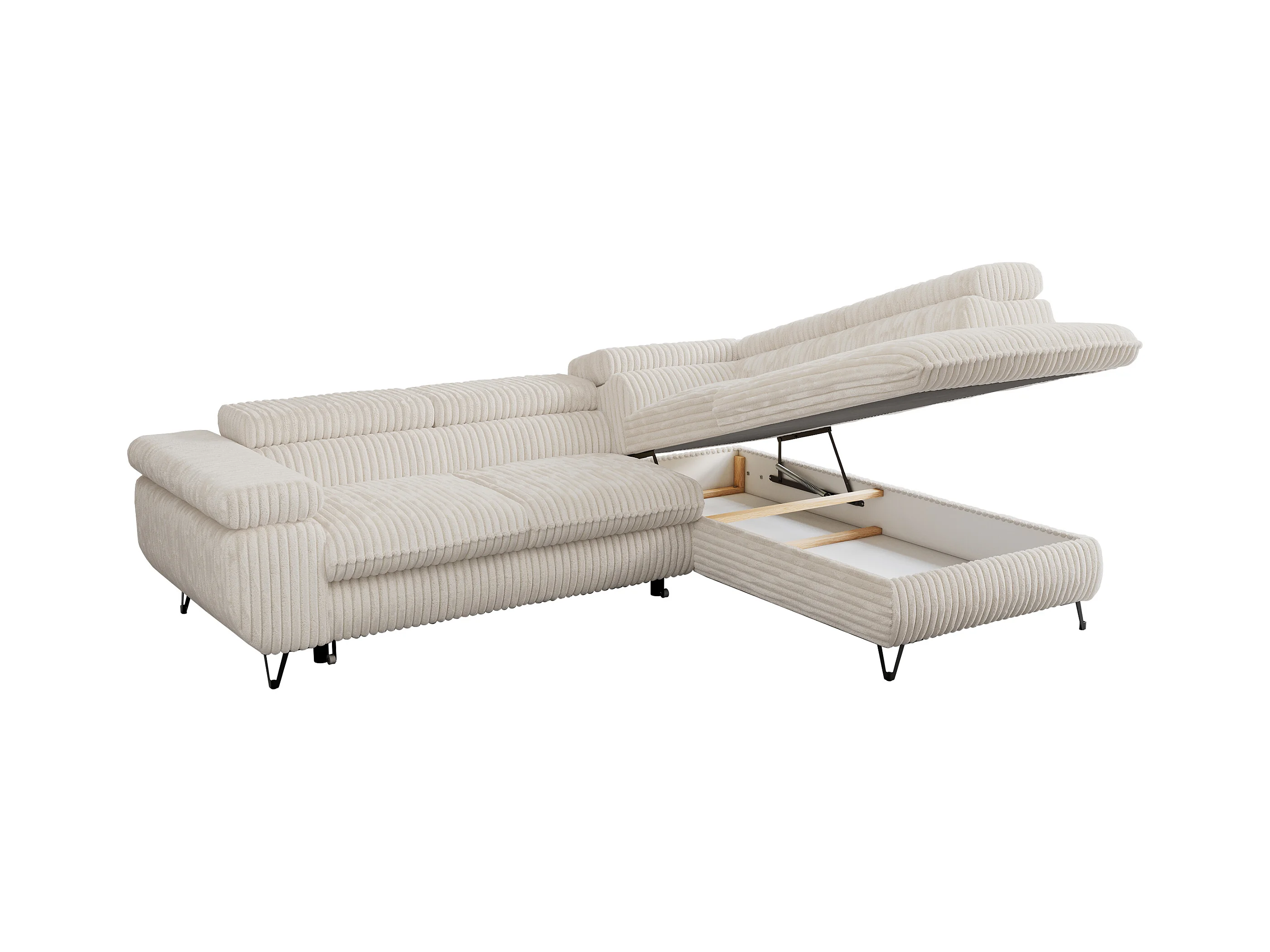Ecksofa PETER verstellbare Kopfstütze, schlaffunktion - Beige Cord - Ecke Rechts