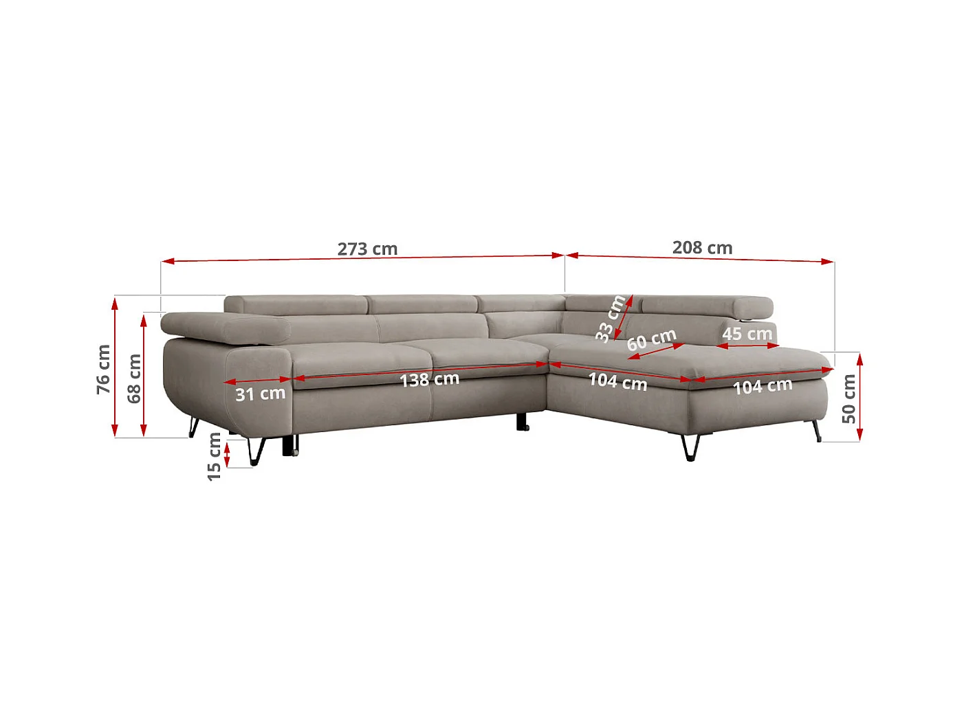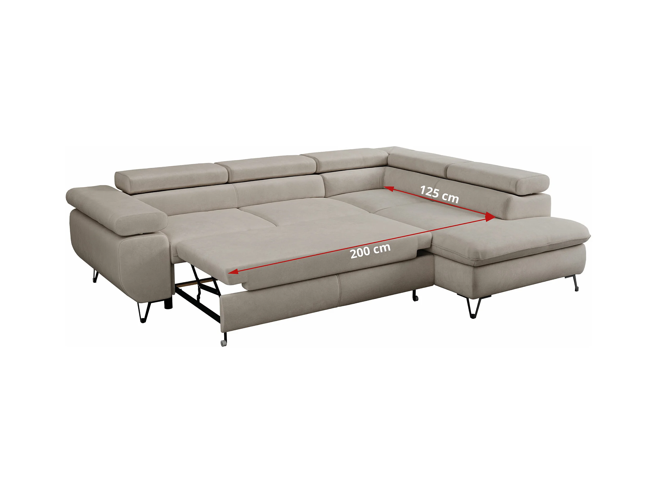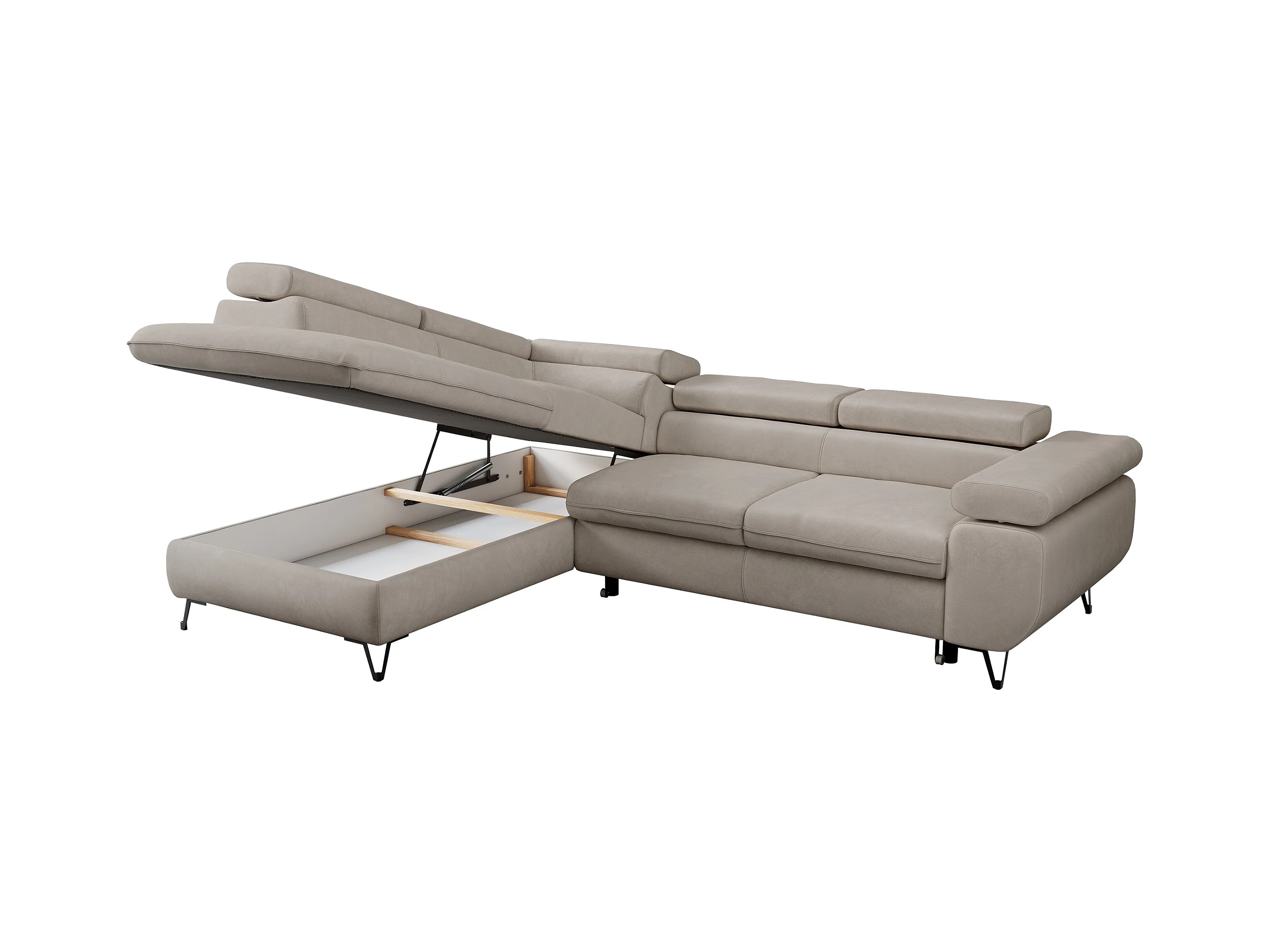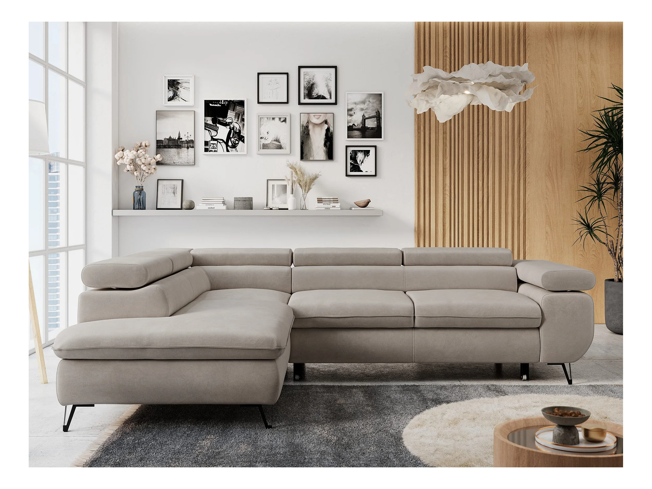 Ecksofa PETER verstellbare Kopfstütze, schlaffunktion - Beige Velvet - Ecke Links