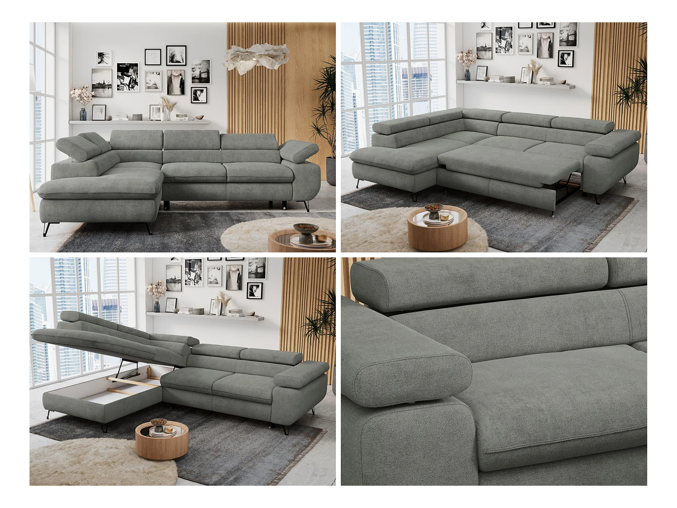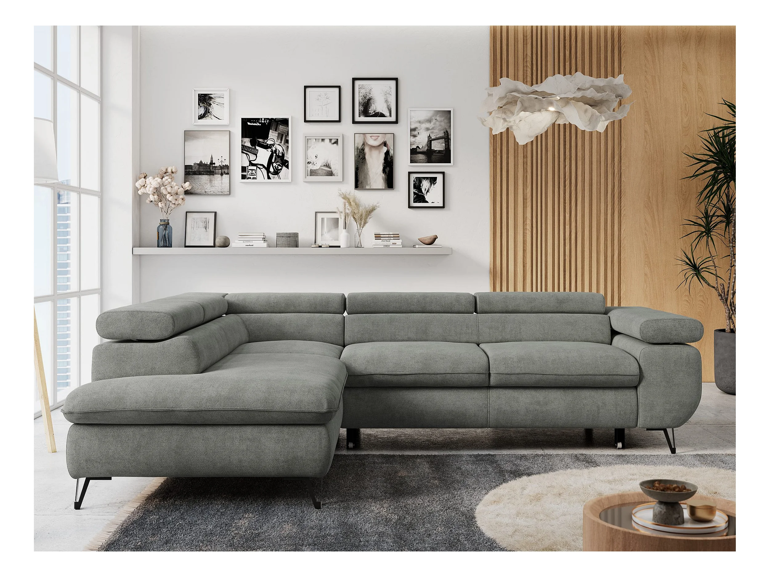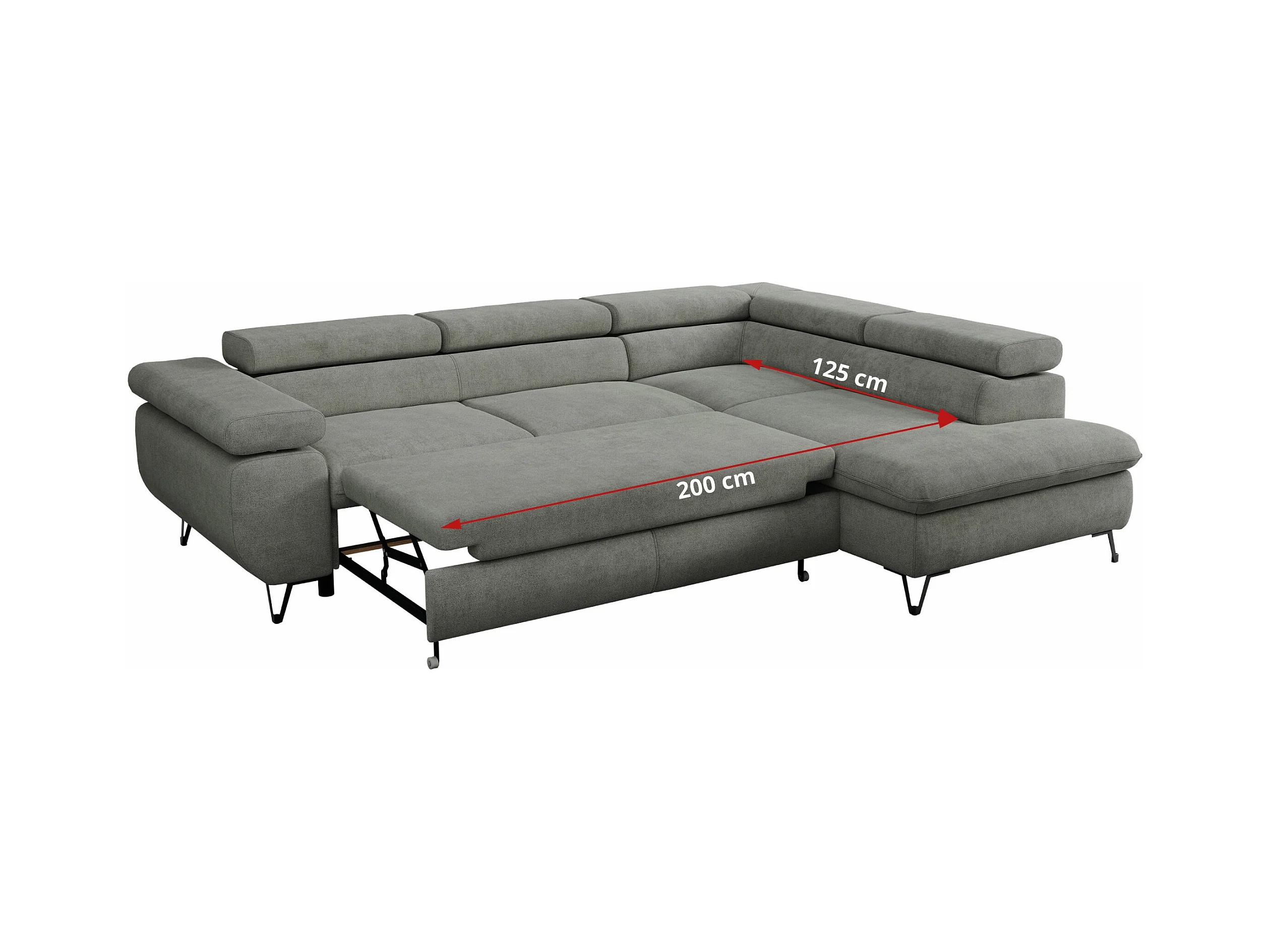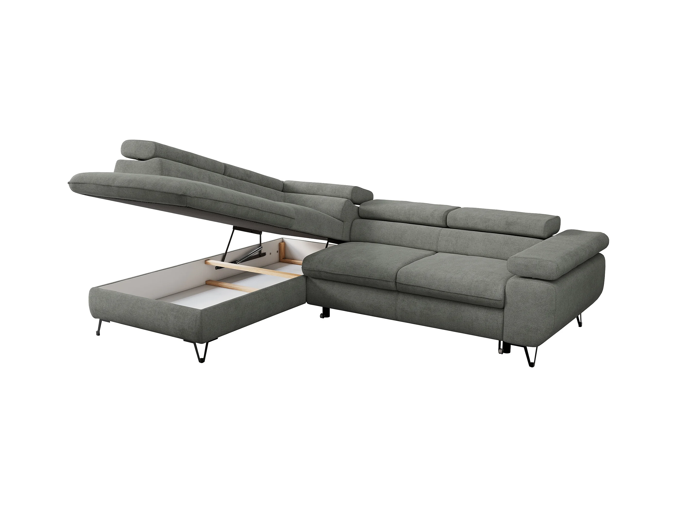 Ecksofa PETER verstellbare Kopfstütze, schlaffunktion - Grau Stukture - Ecke Links