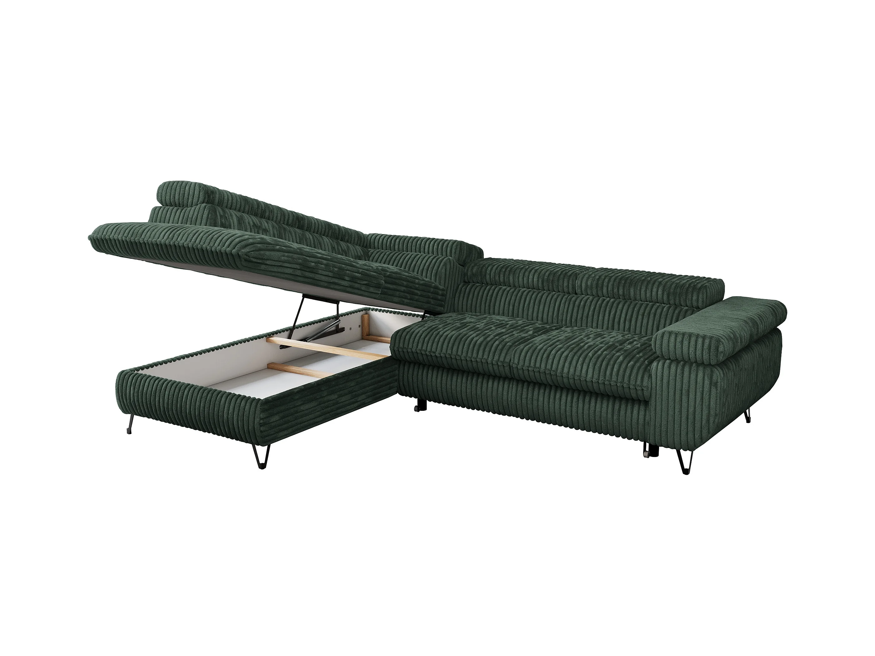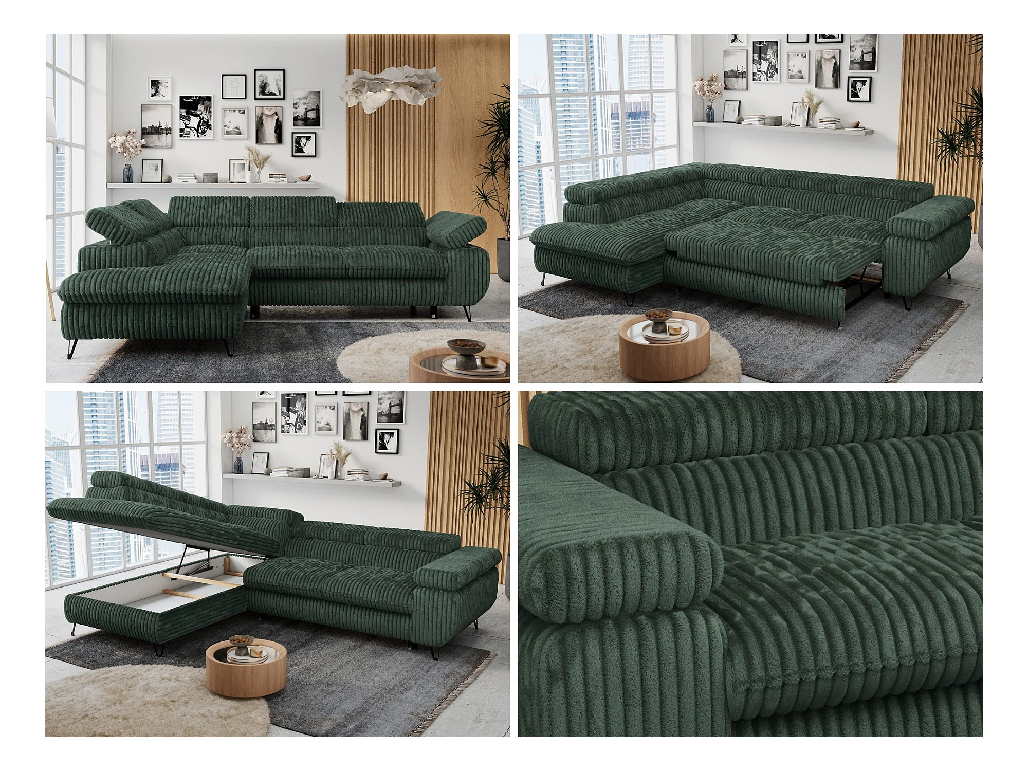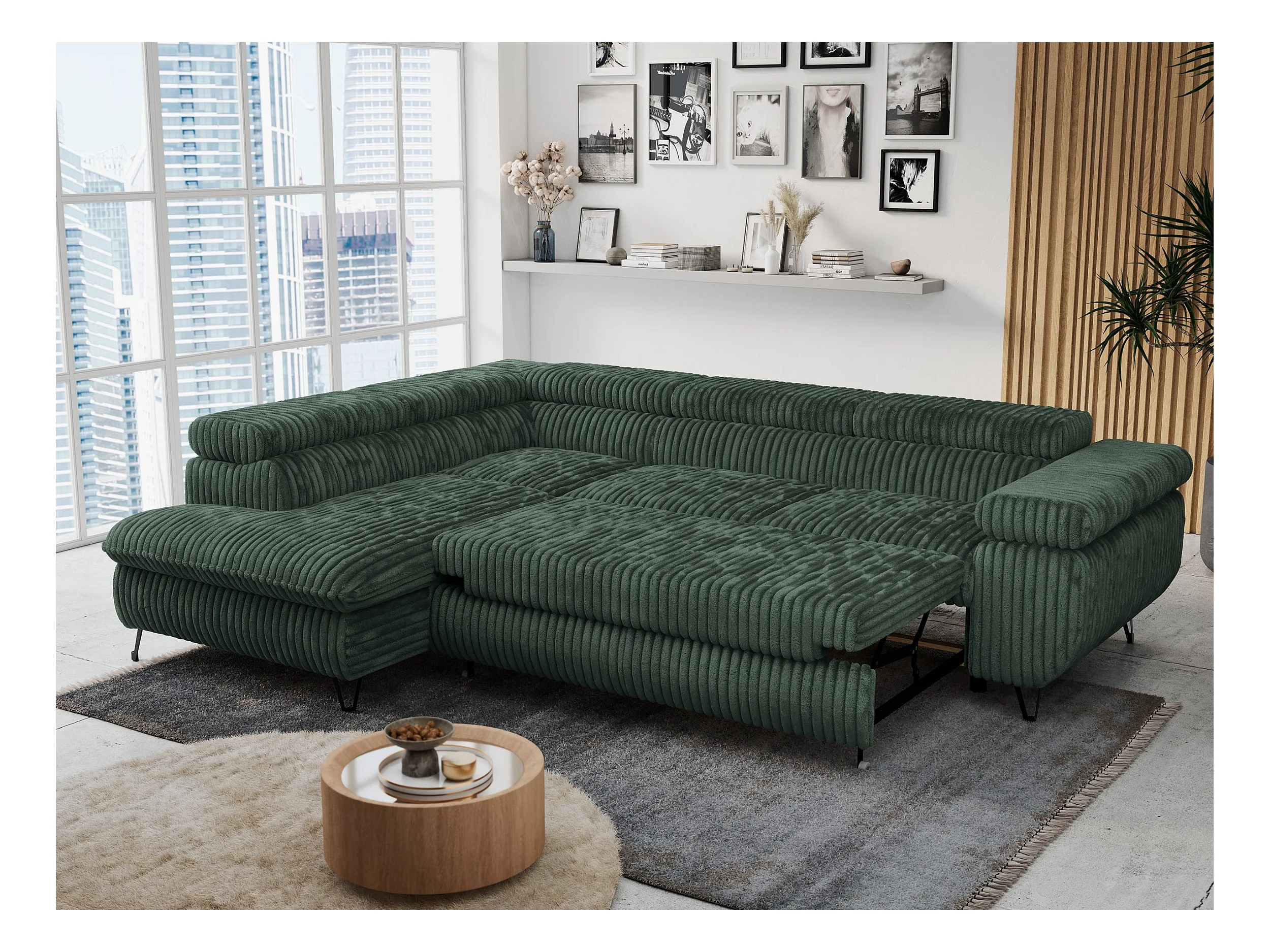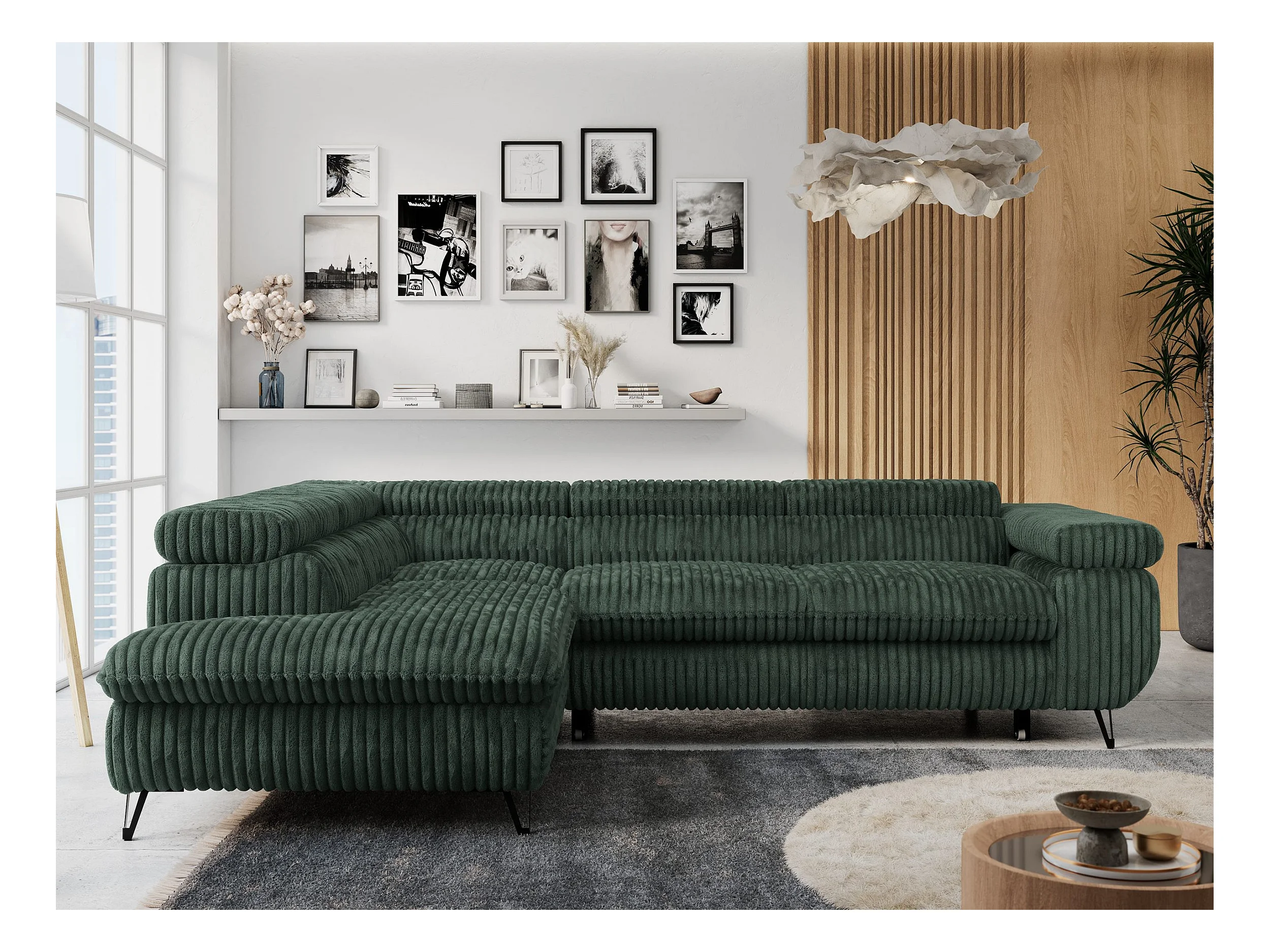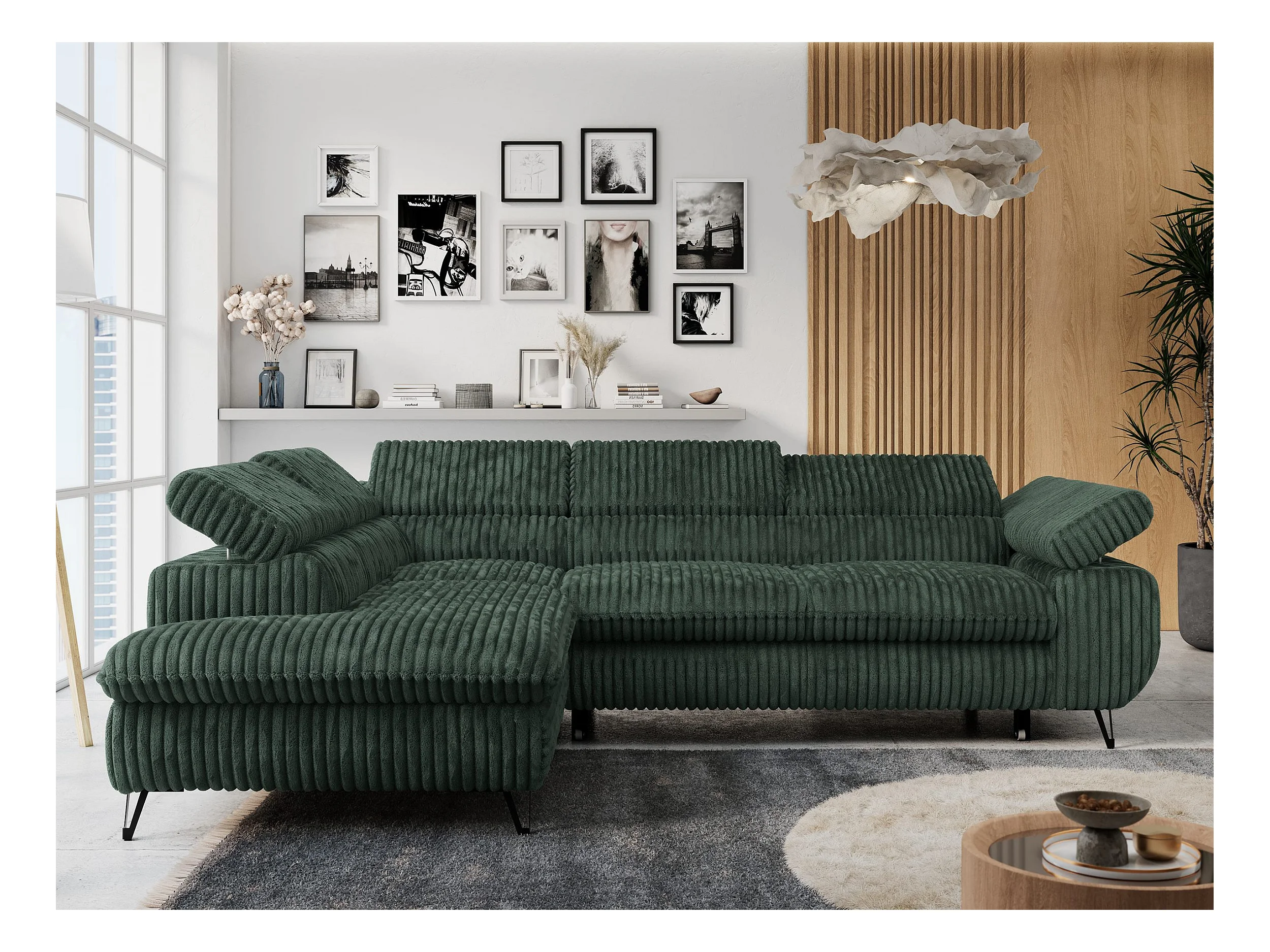 Ecksofa PETER verstellbare Kopfstütze, schlaffunktion - Grün Cord - Ecke Links