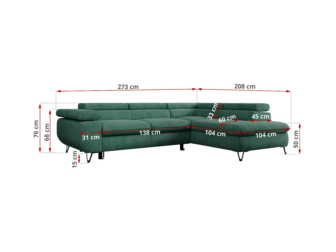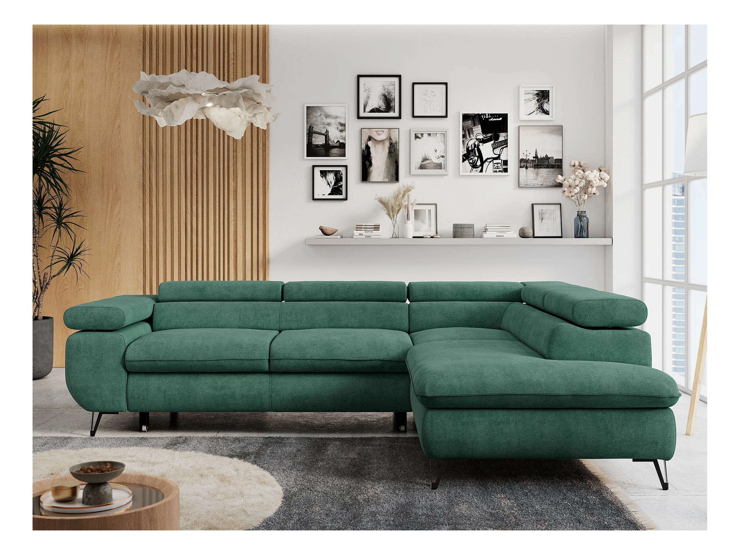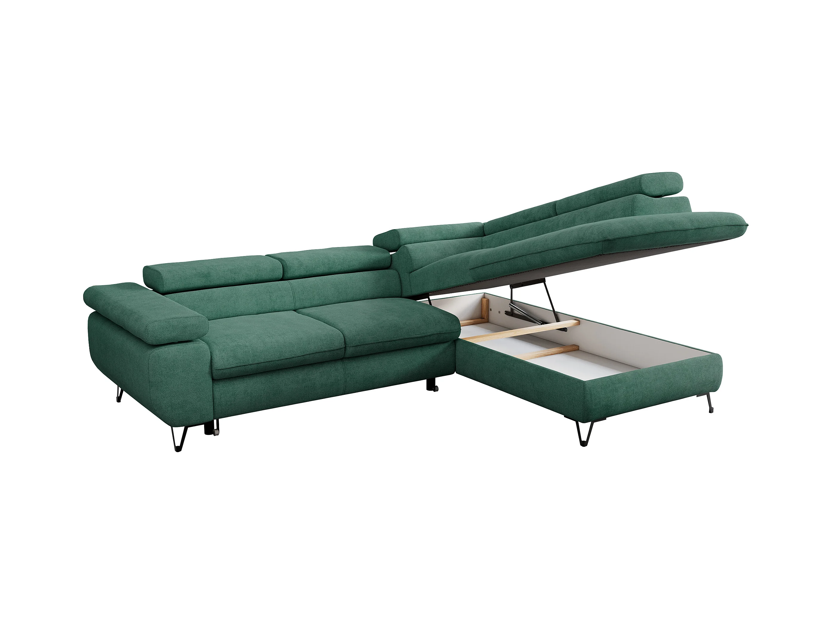 Ecksofa PETER verstellbare Kopfstütze, schlaffunktion - Grün Stukture - Ecke Rechts