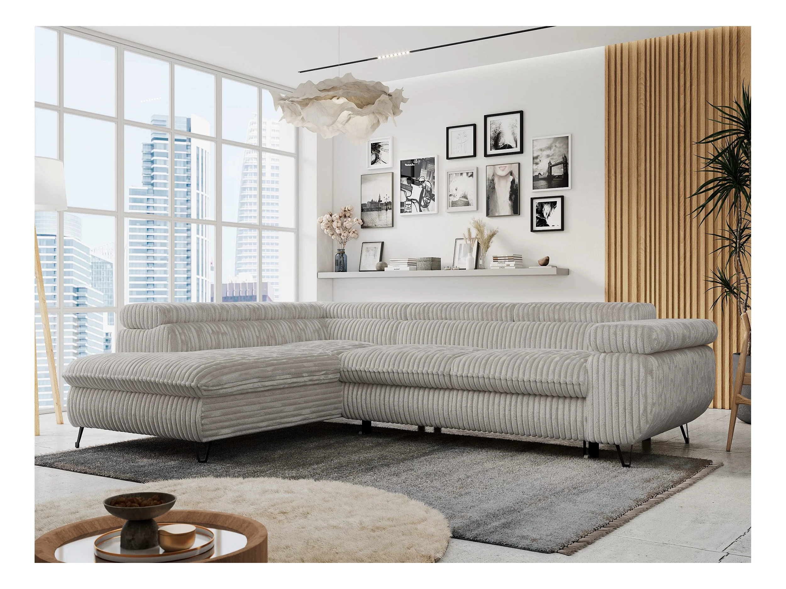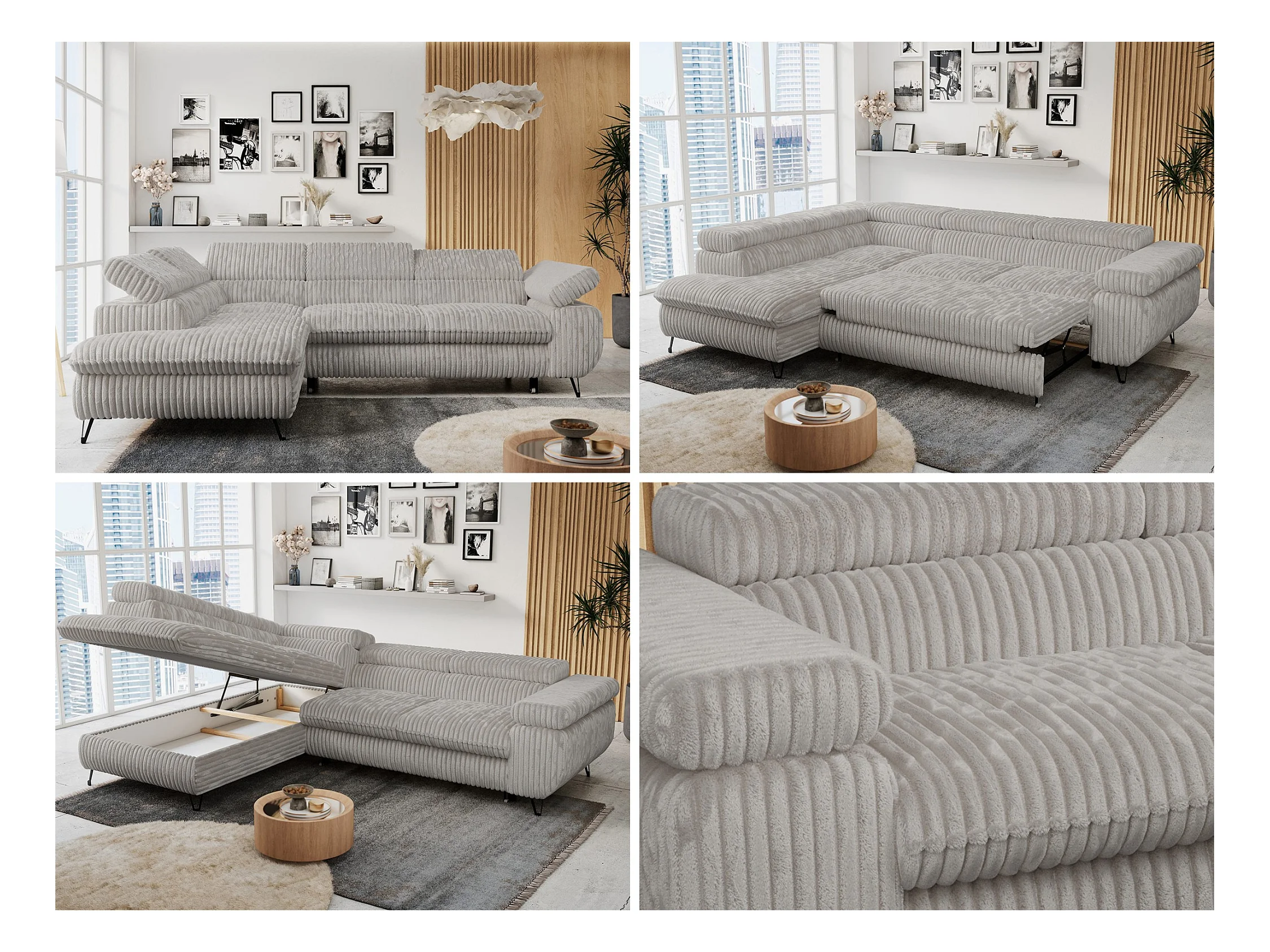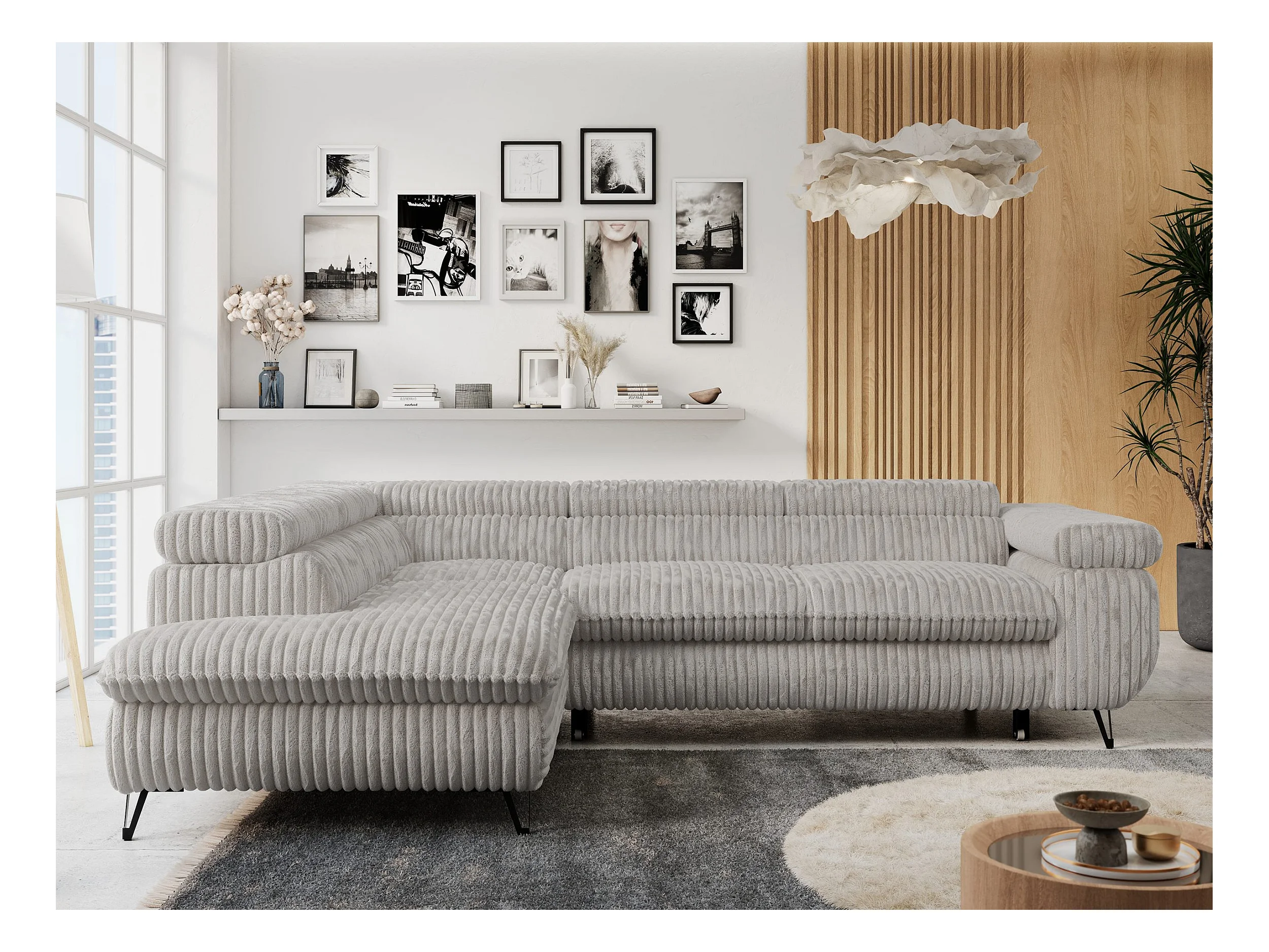 Ecksofa PETER verstellbare Kopfstütze, schlaffunktion - Hellgrau Cord - Ecke Links