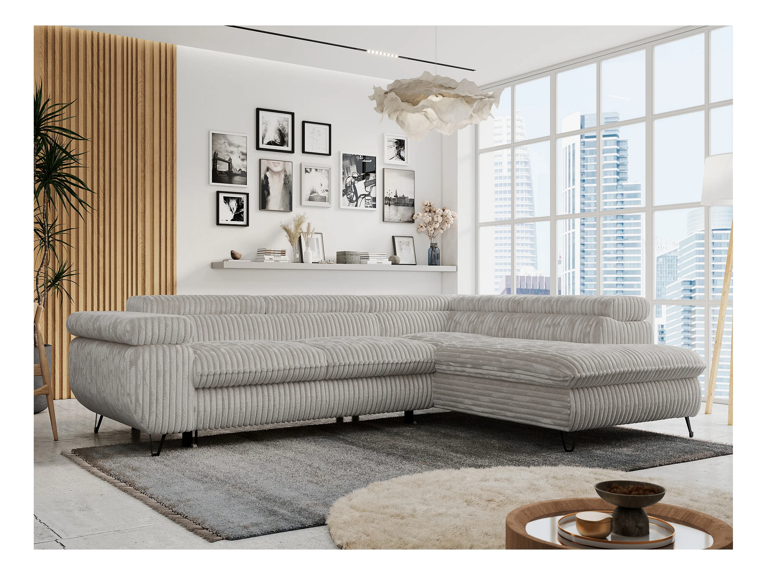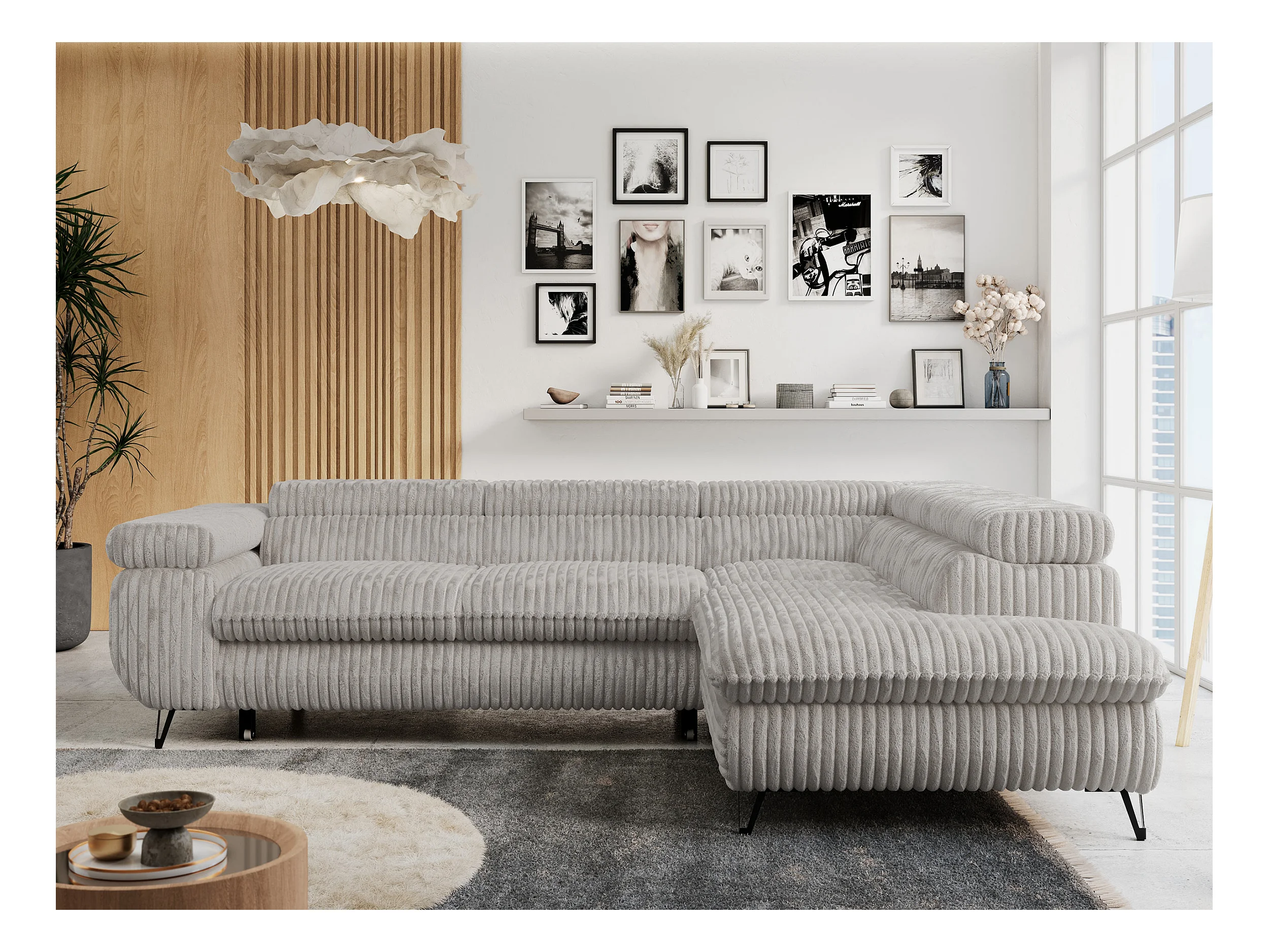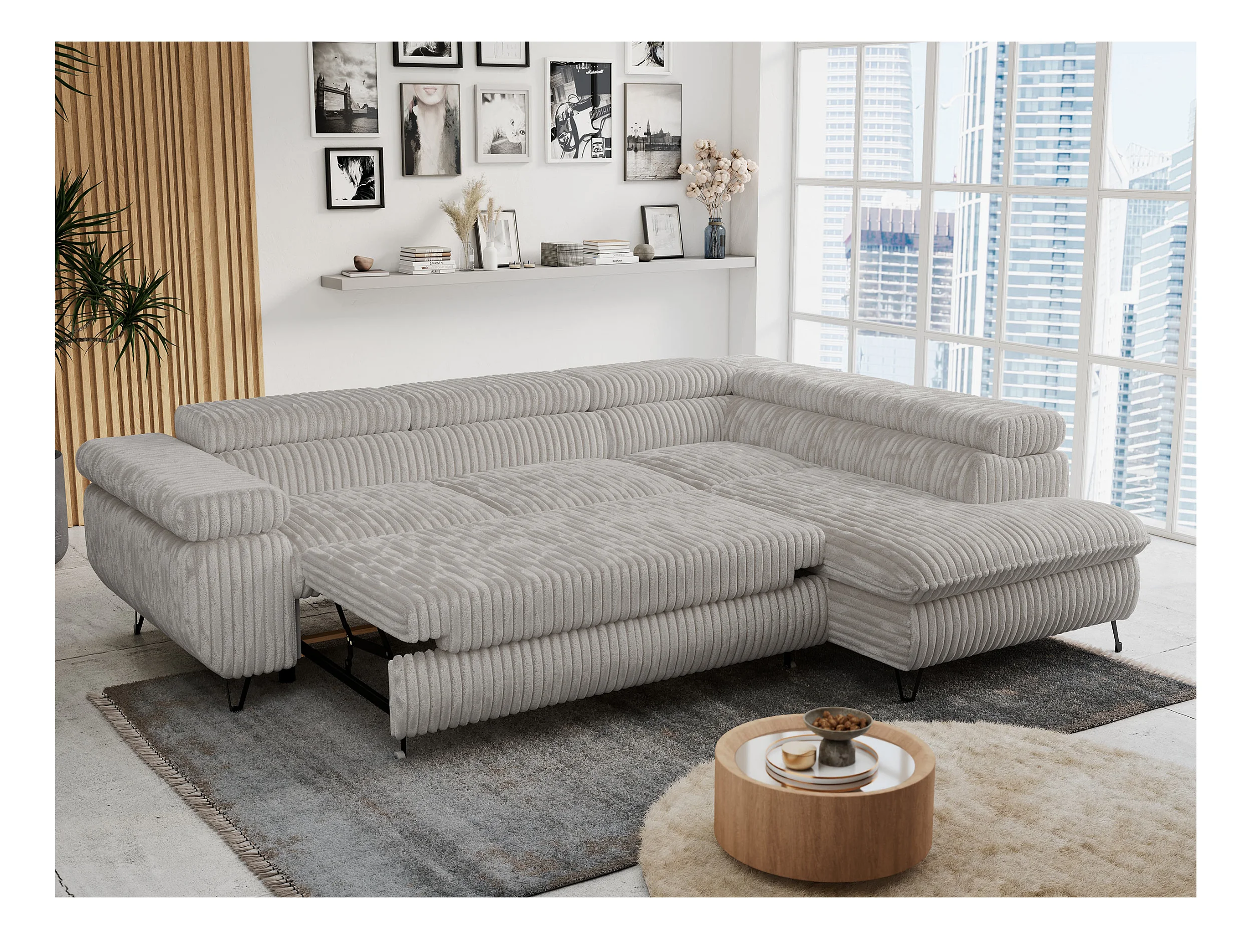 Ecksofa PETER verstellbare Kopfstütze, schlaffunktion - Hellgrau Cord - Ecke Rechts