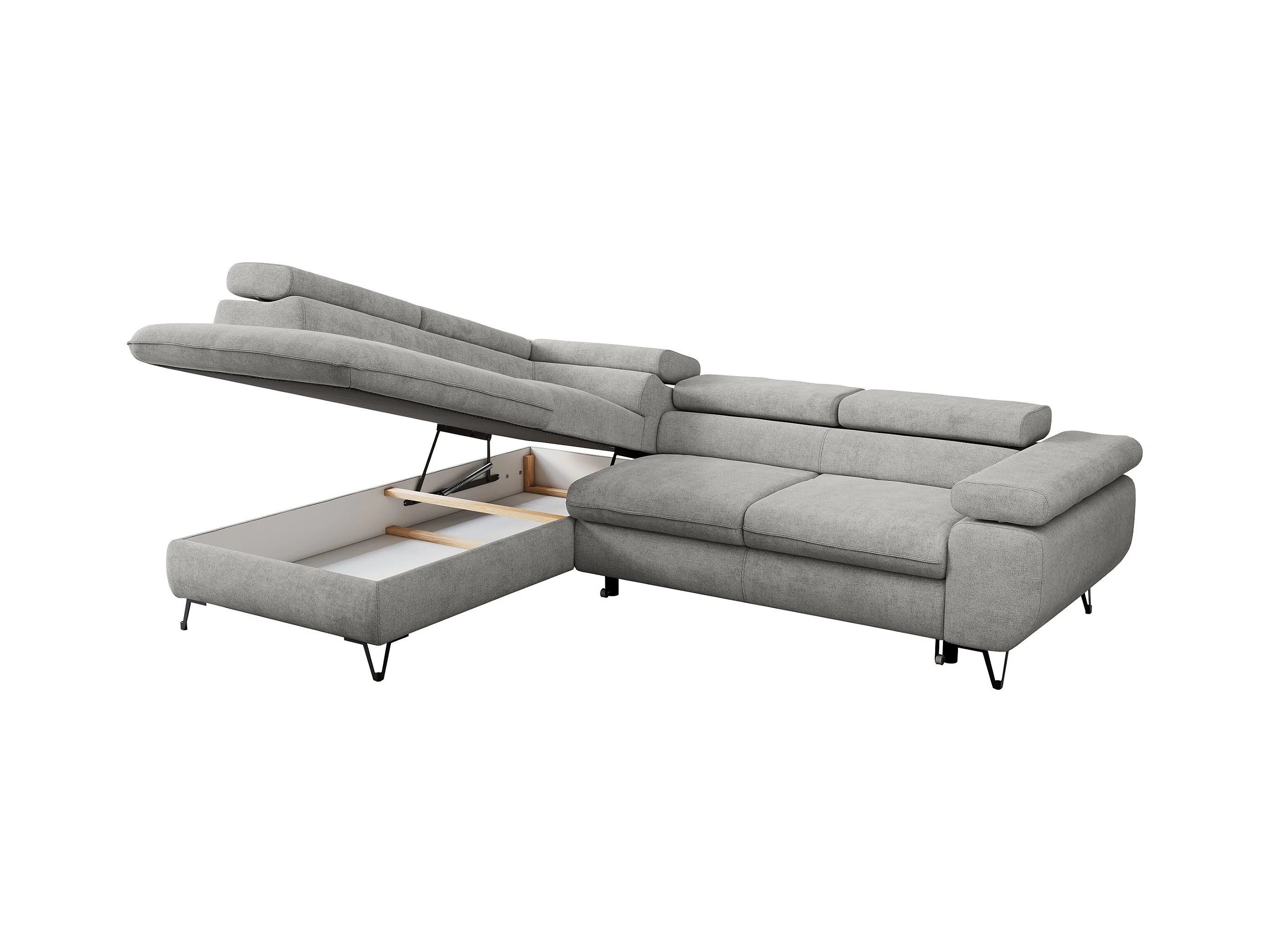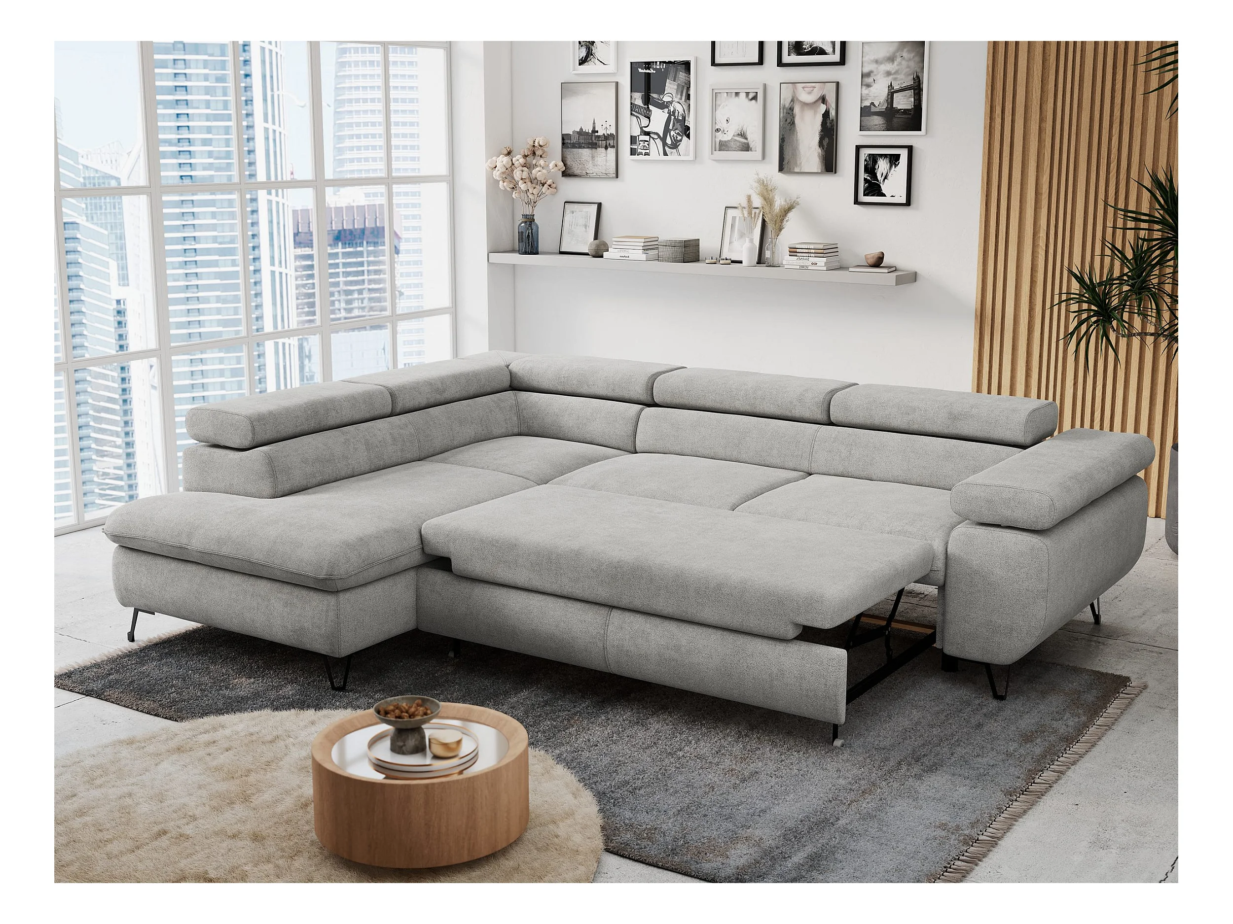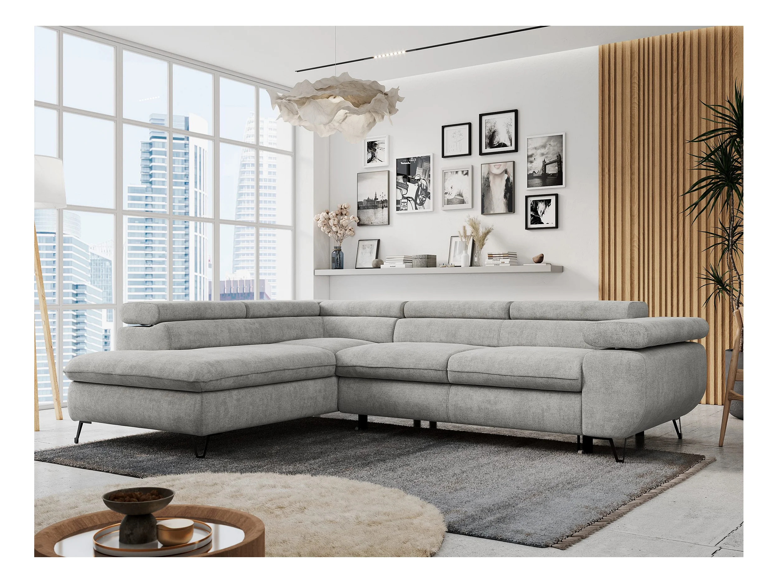 Ecksofa PETER verstellbare Kopfstütze, schlaffunktion - Hellgrau Stukture - Ecke Links
