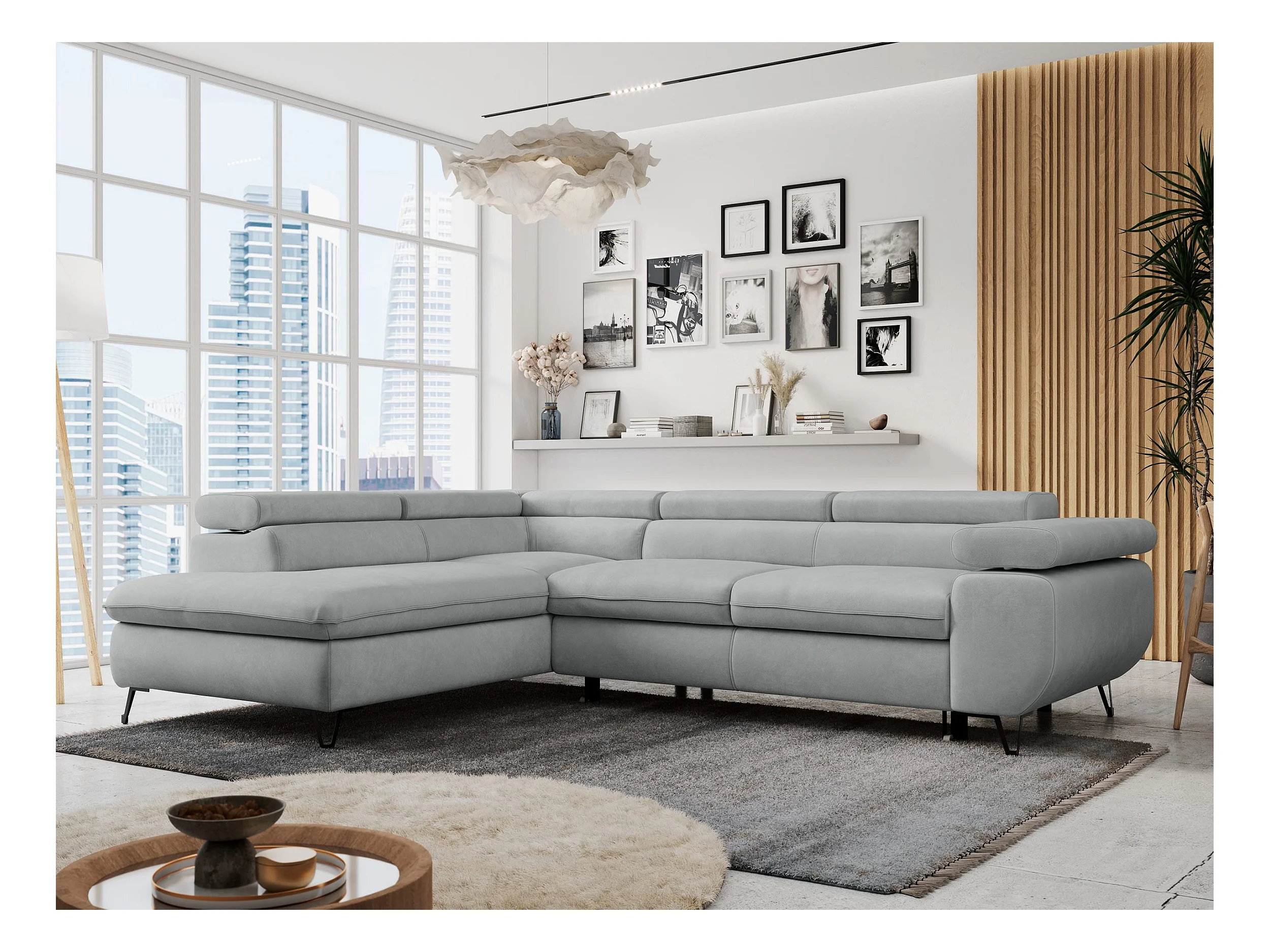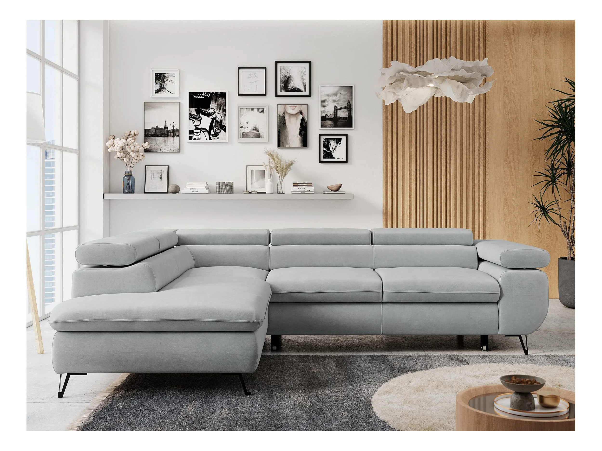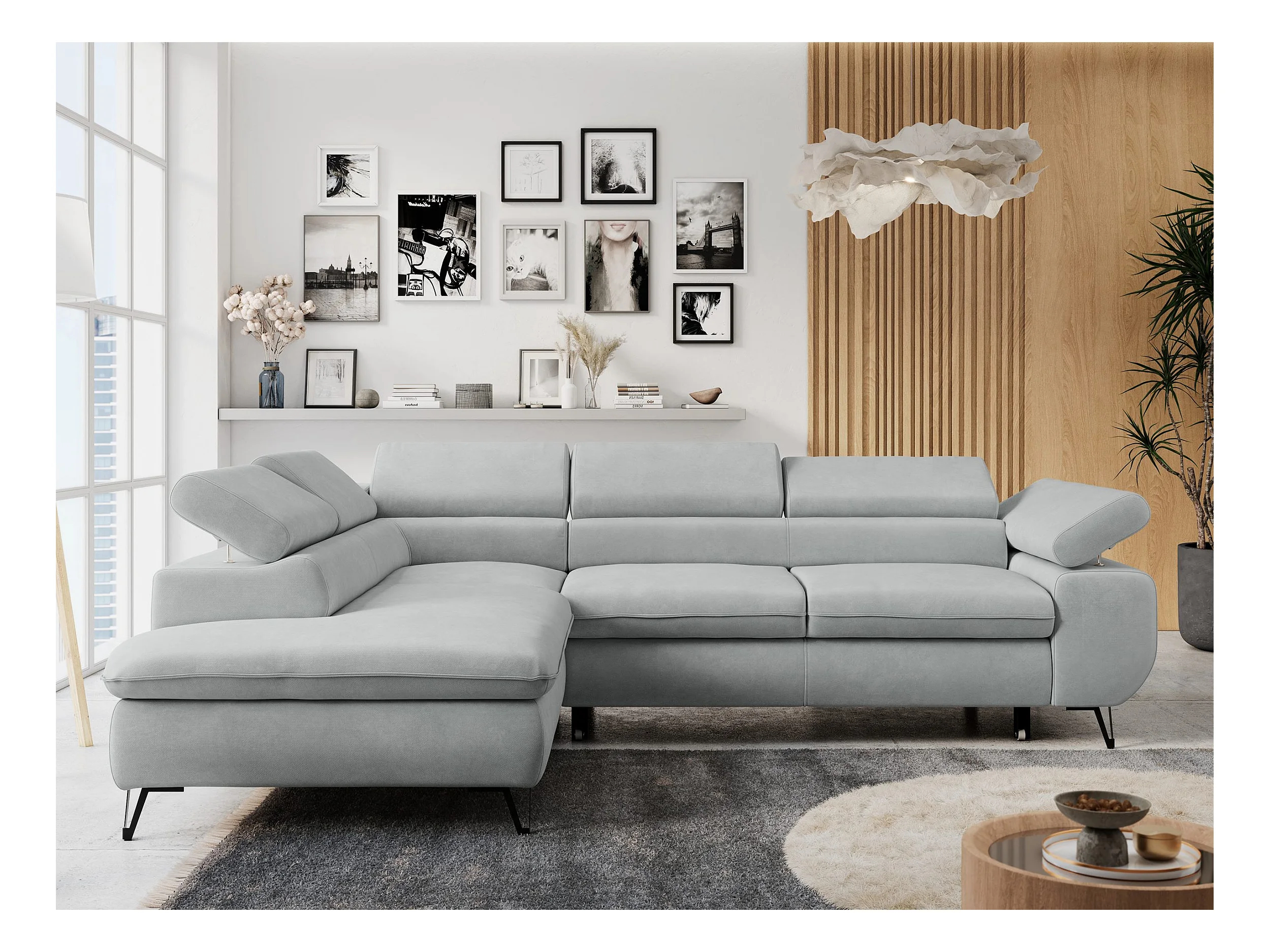 Ecksofa PETER verstellbare Kopfstütze, schlaffunktion - Hellgrau Velvet - Ecke Links