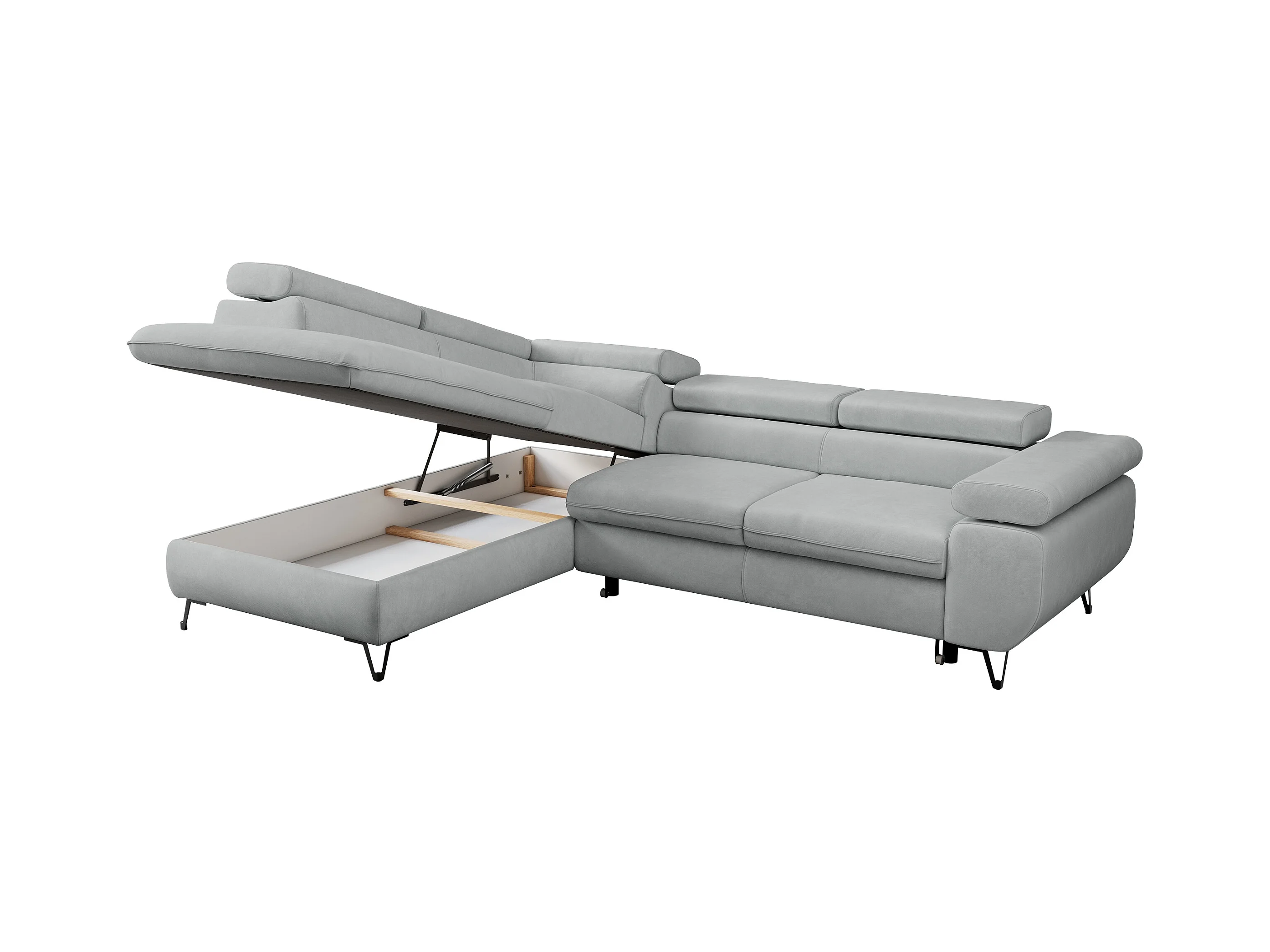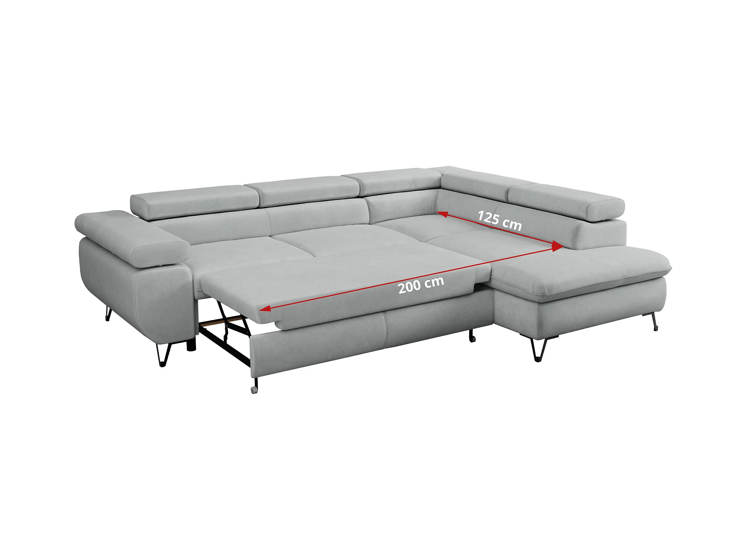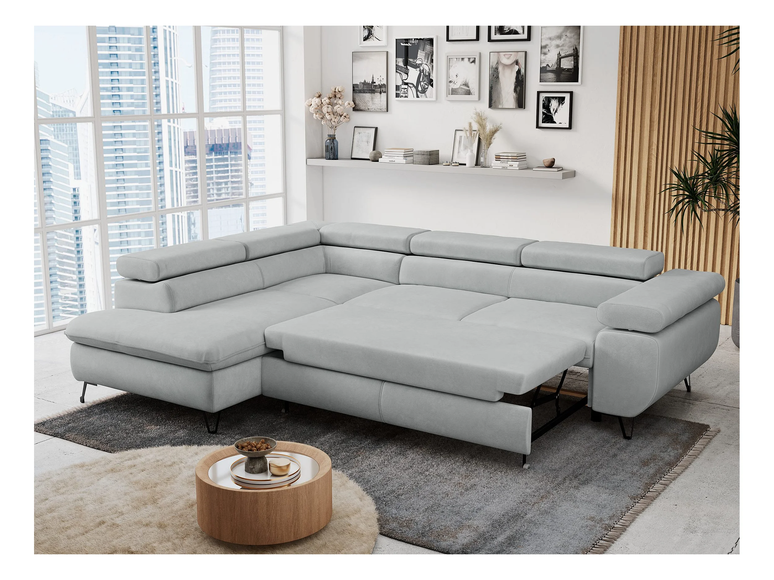 Ecksofa PETER verstellbare Kopfstütze, schlaffunktion - Hellgrau Velvet - Ecke Links