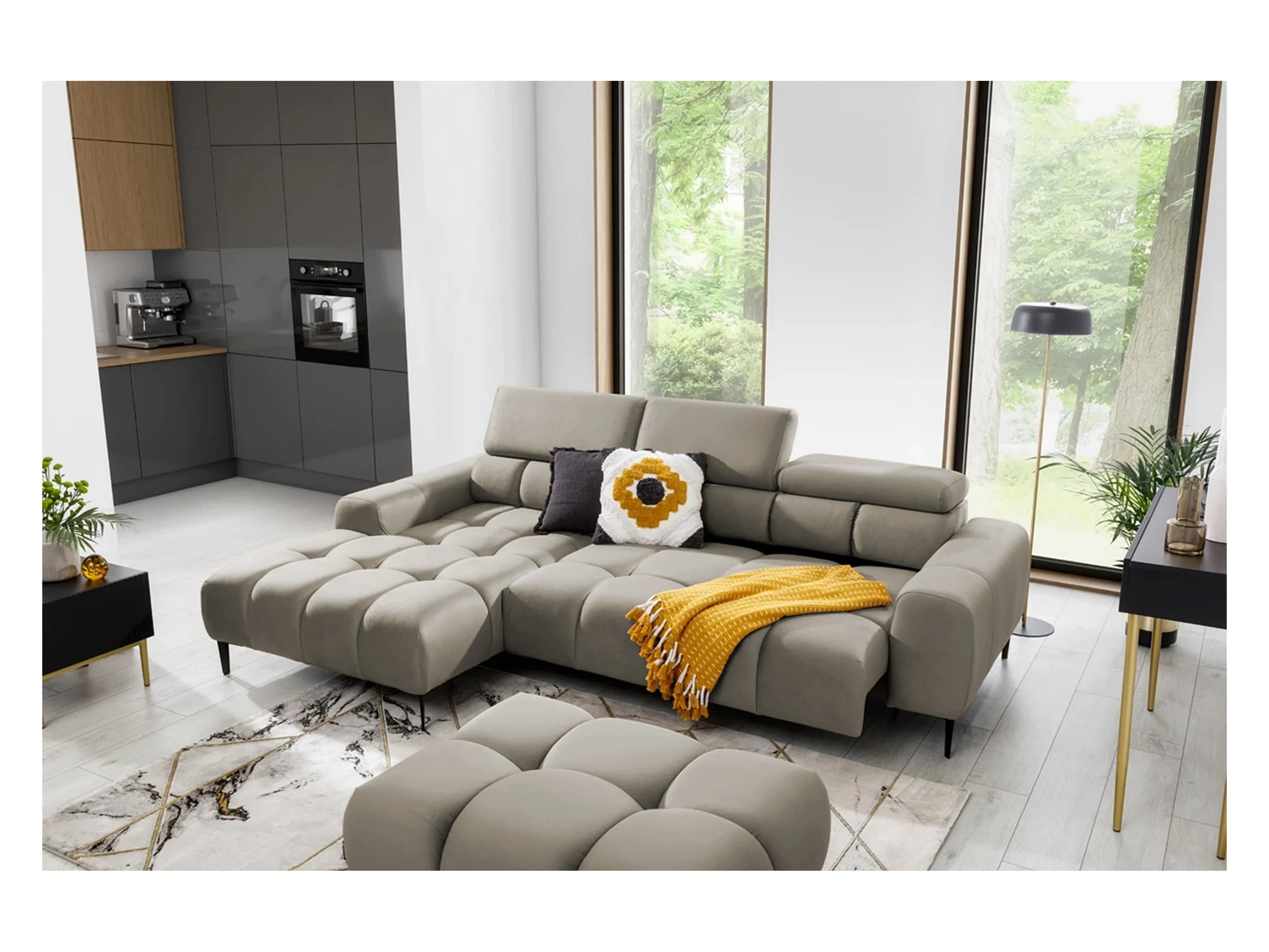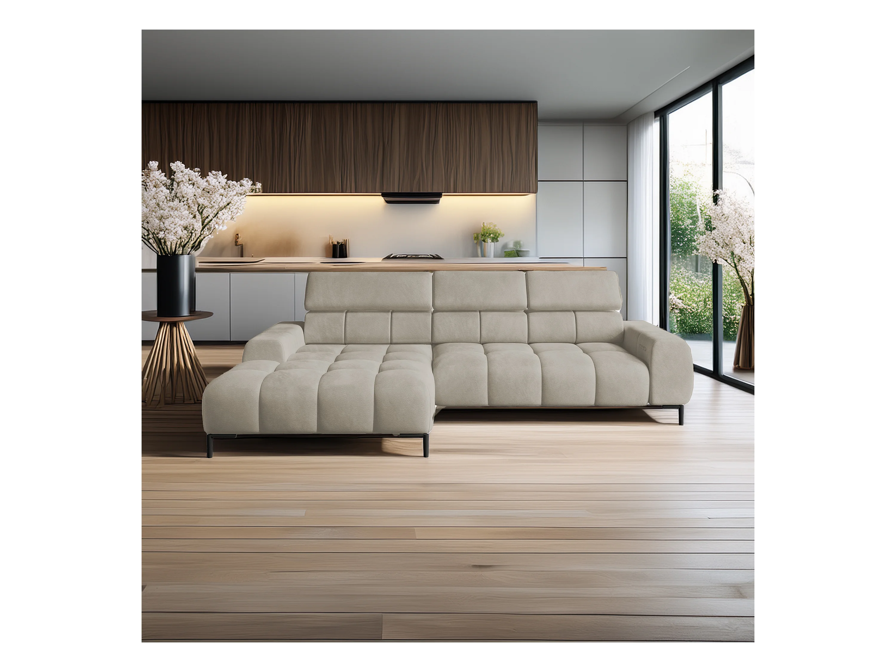 Ecksofa PLAZA-MINI Stoff SOLAR Longchair Links, Flauschige Rückenlehne, Industrial Style, L-Form, 270x99x177cm, L-CREME