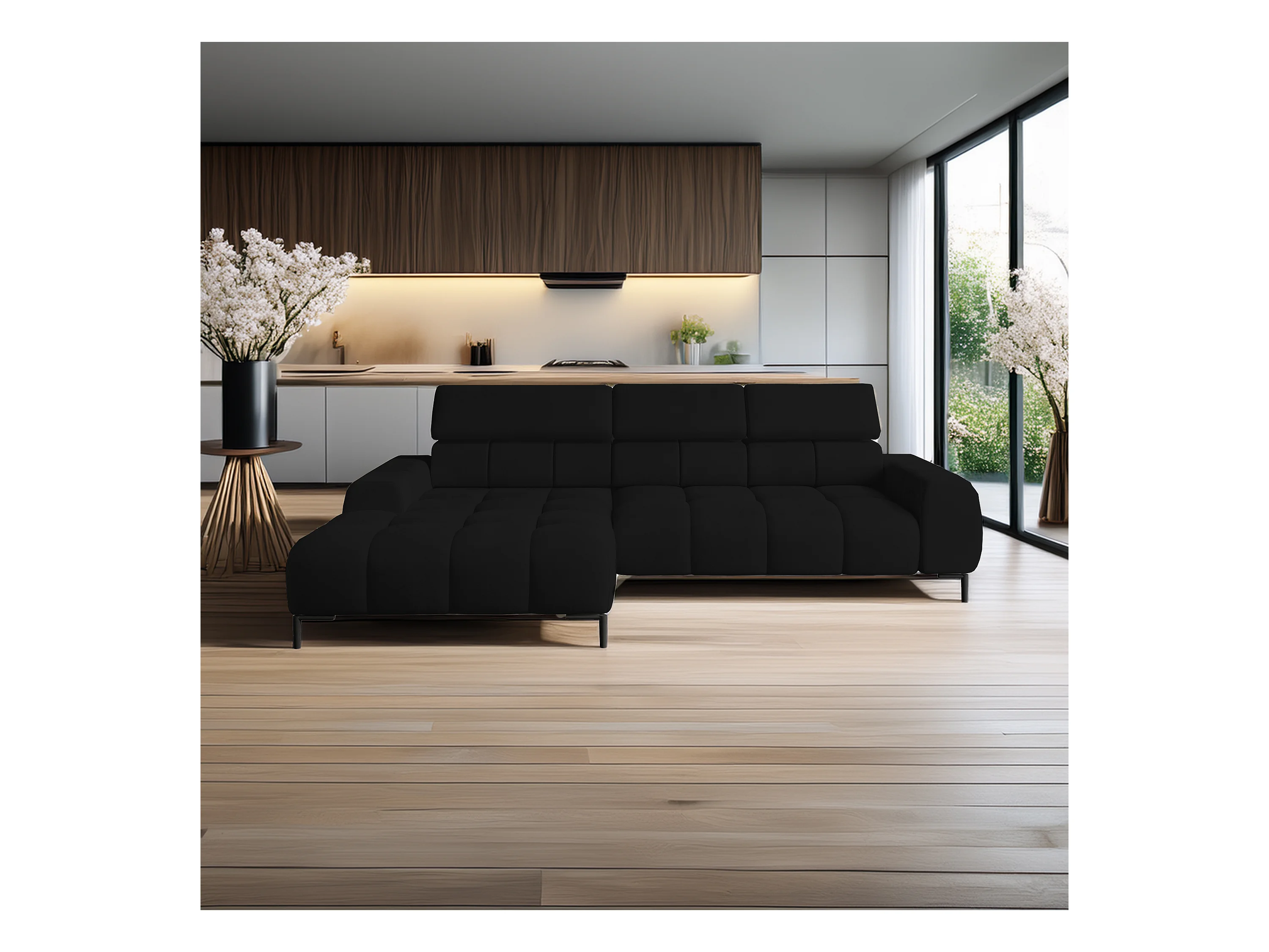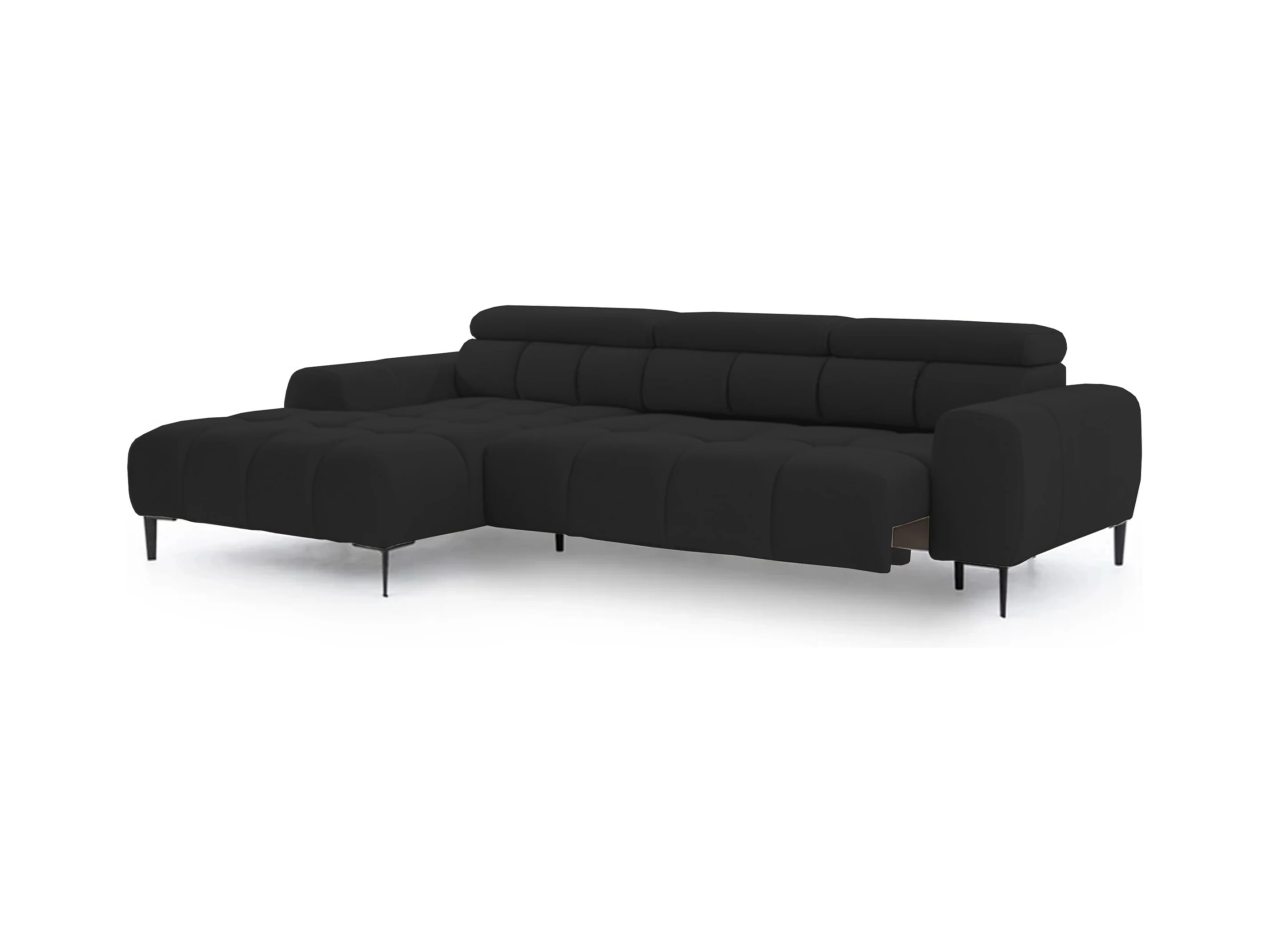 Ecksofa PLAZA-MINI Stoff SOLAR Longchair Links, Flauschige Rückenlehne, Industrial Style, L-Form, 270x99x177cm, L-SCHWARZ