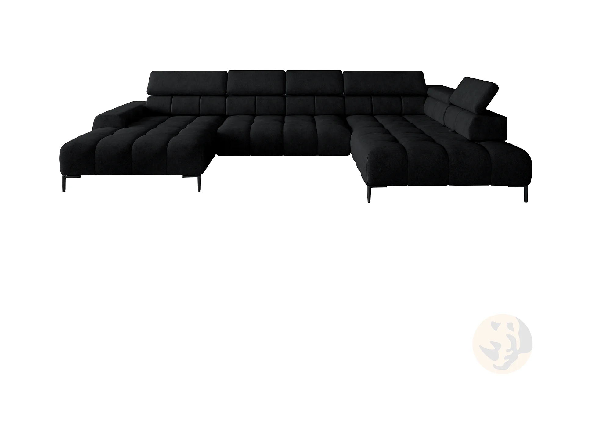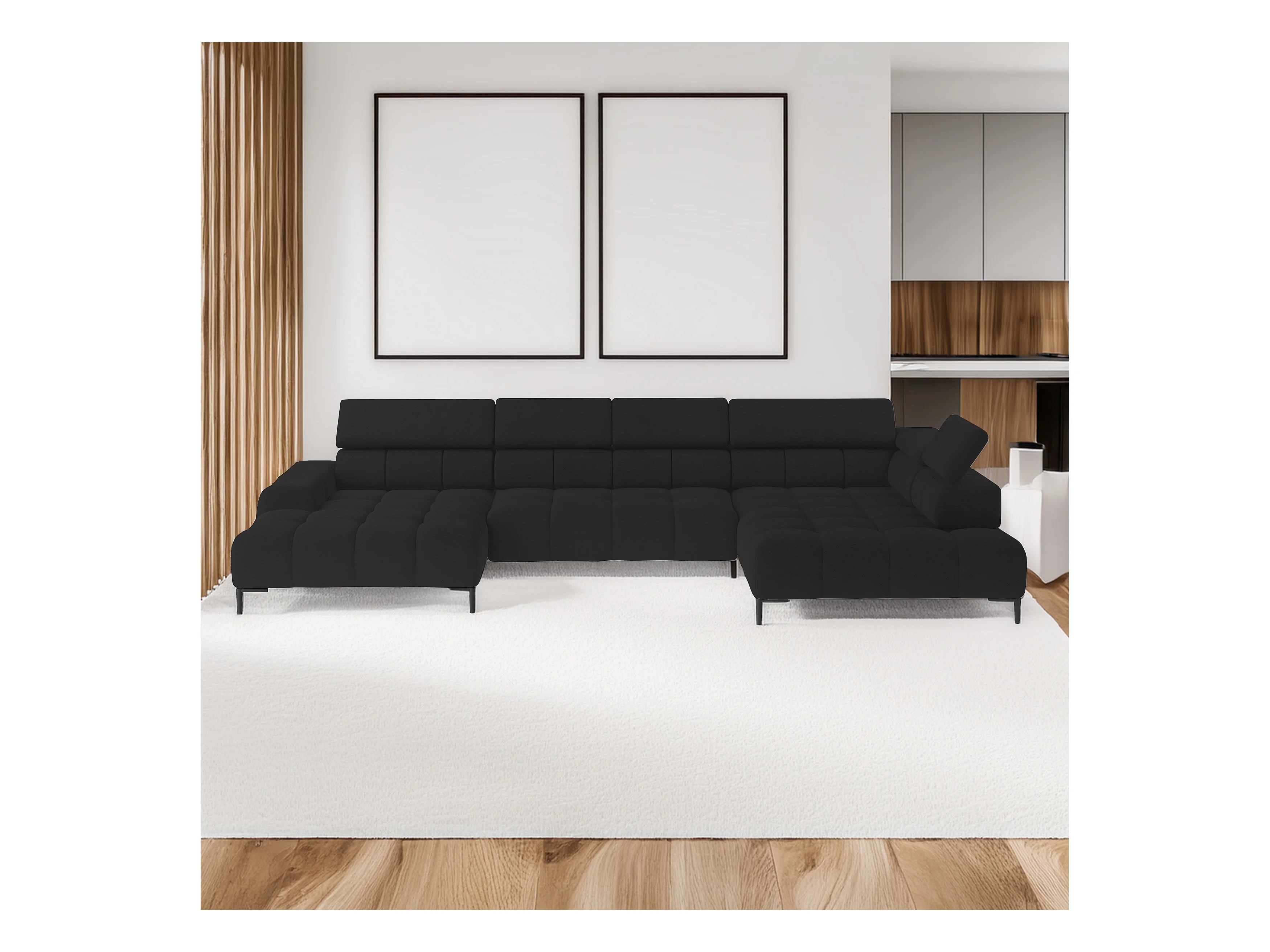Ecksofa PLAZA-U Stoff SOLAR Eckcouch inkl. bequemer flauschiger Rückenlehne, lang rechts 216cm, kurz links 177cm Industrial Style U-Form Schwarz
