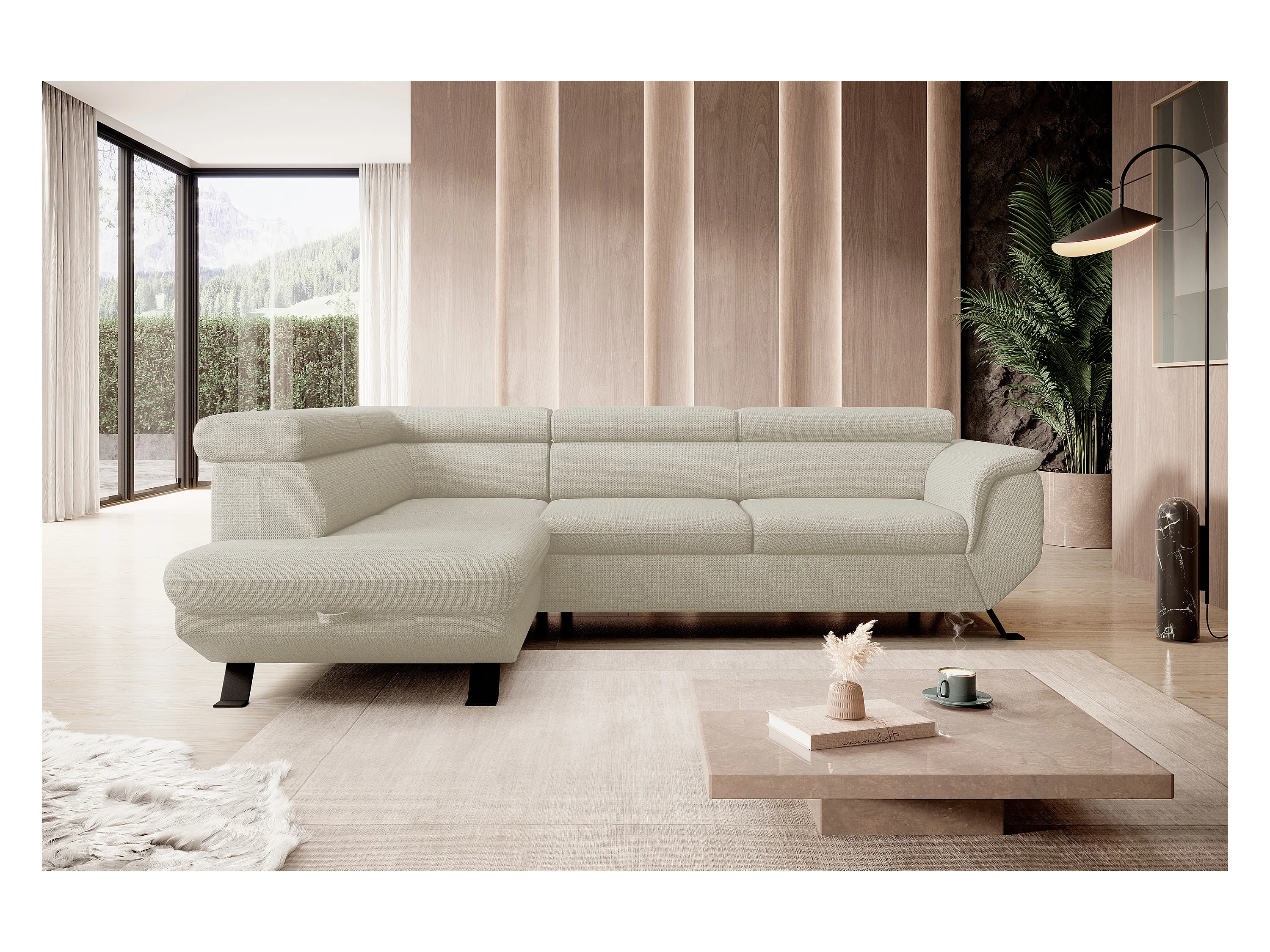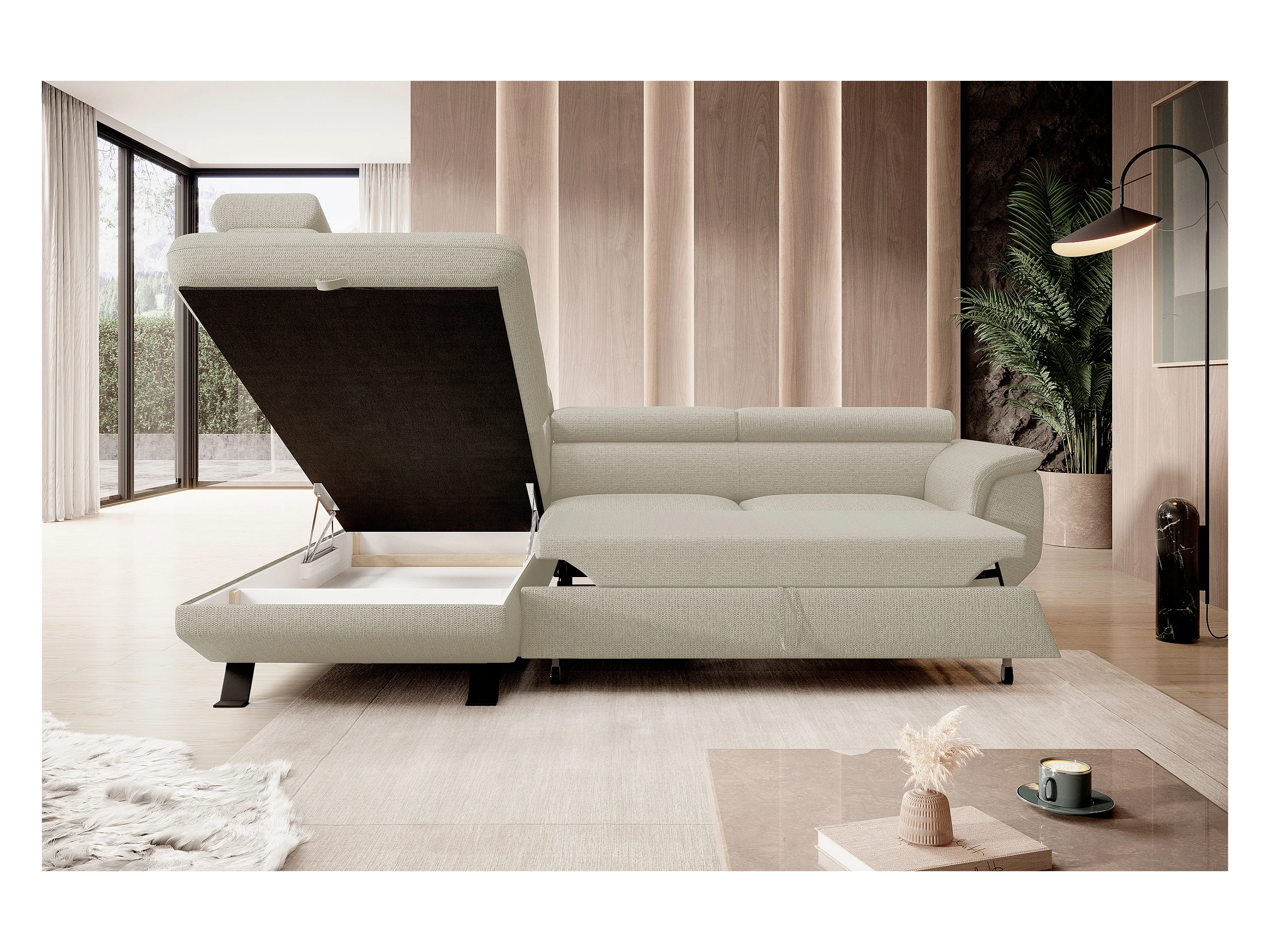 ECKSOFA RAVEN L mit Schlaffunktion und Bettkasten, Freistehend, Polstersofa mit Verstellbaren Kopfstützen, 257x198x96 cm, Linke Seite, Beige
