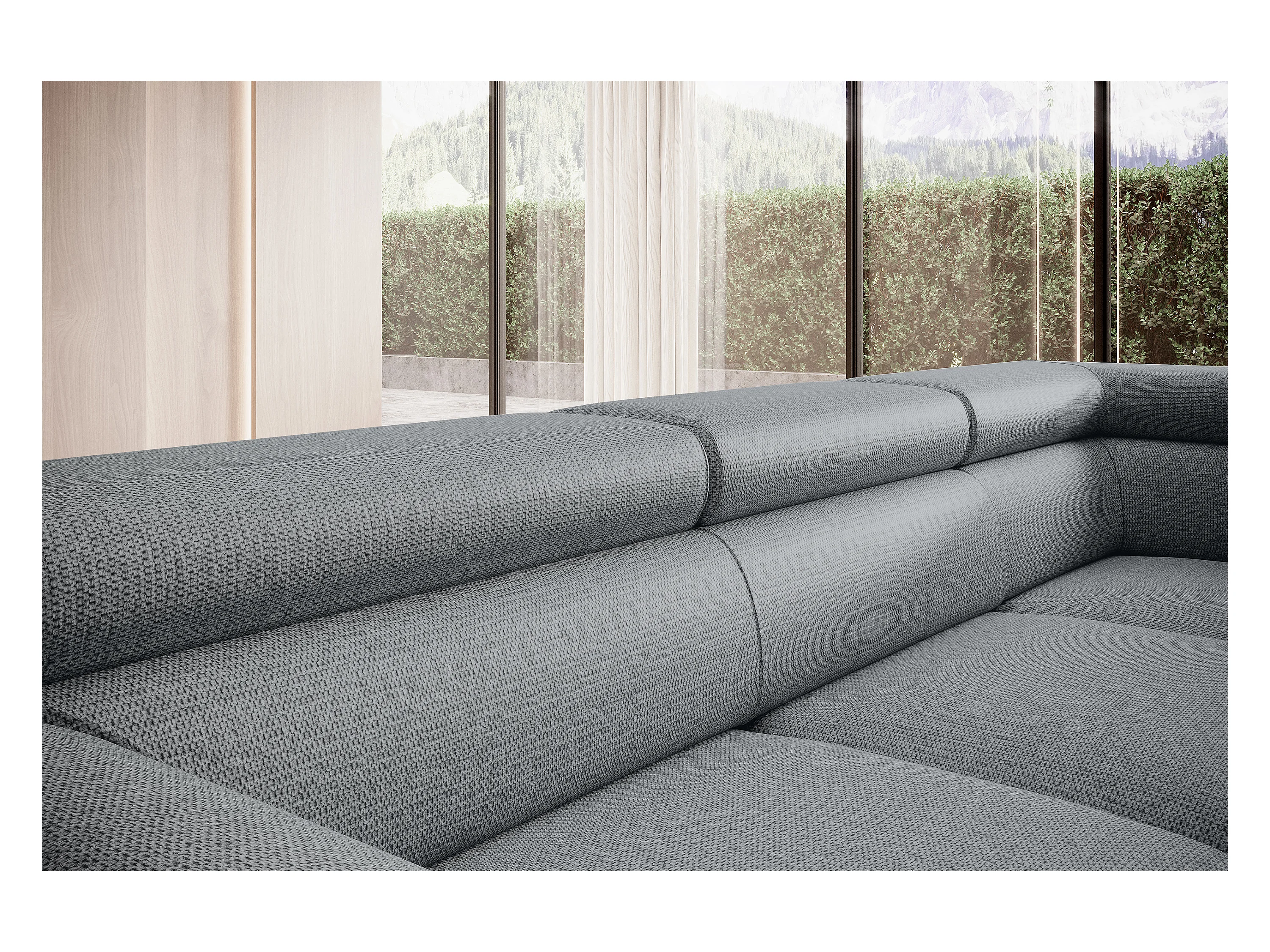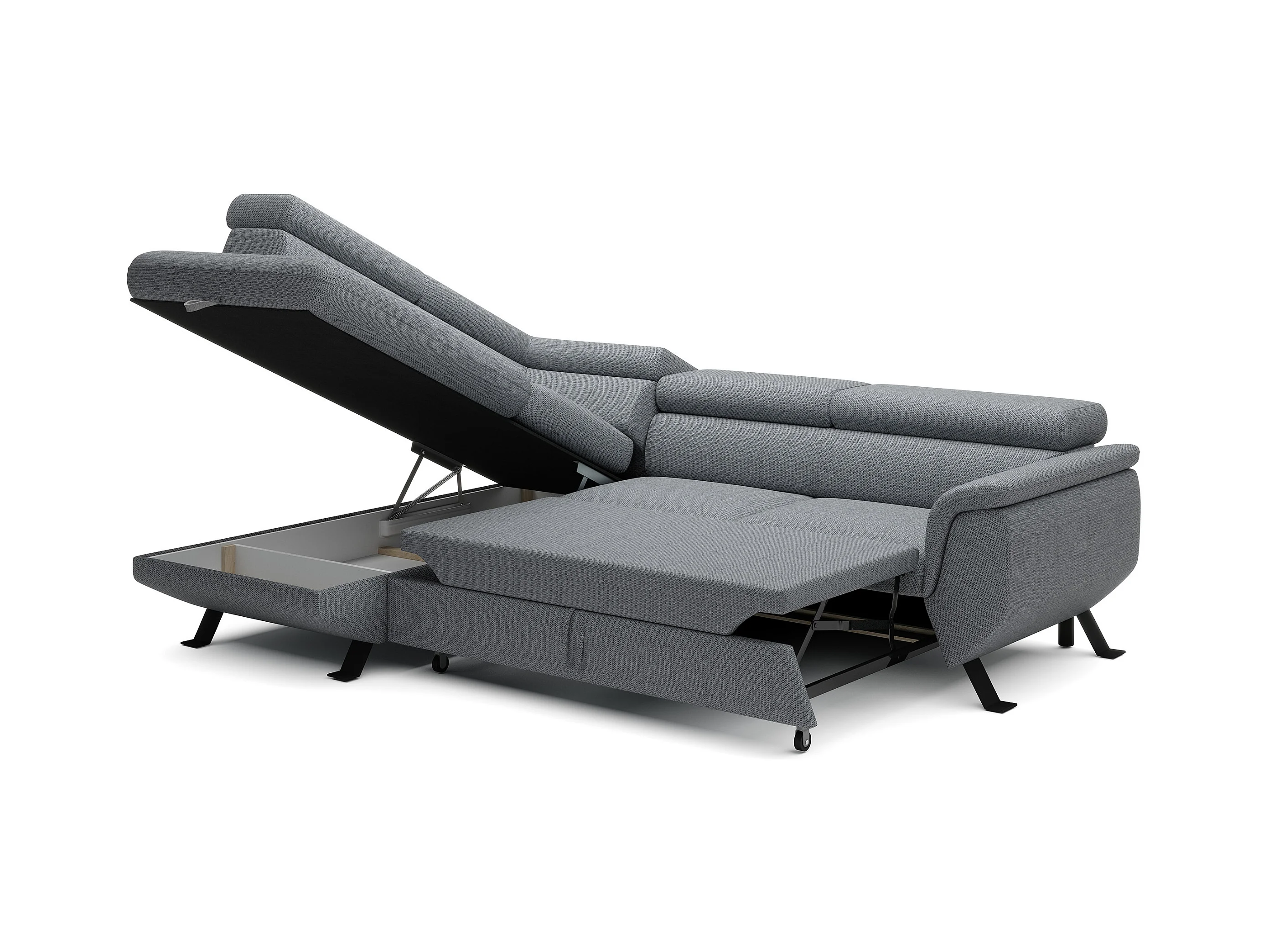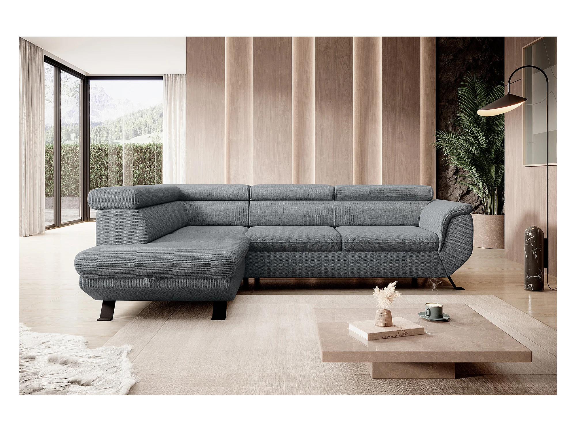 ECKSOFA RAVEN L mit Schlaffunktion und Bettkasten, Freistehend, Polstersofa mit Verstellbaren Kopfstützen, 257x198x96 cm, Linke Seite, Grau