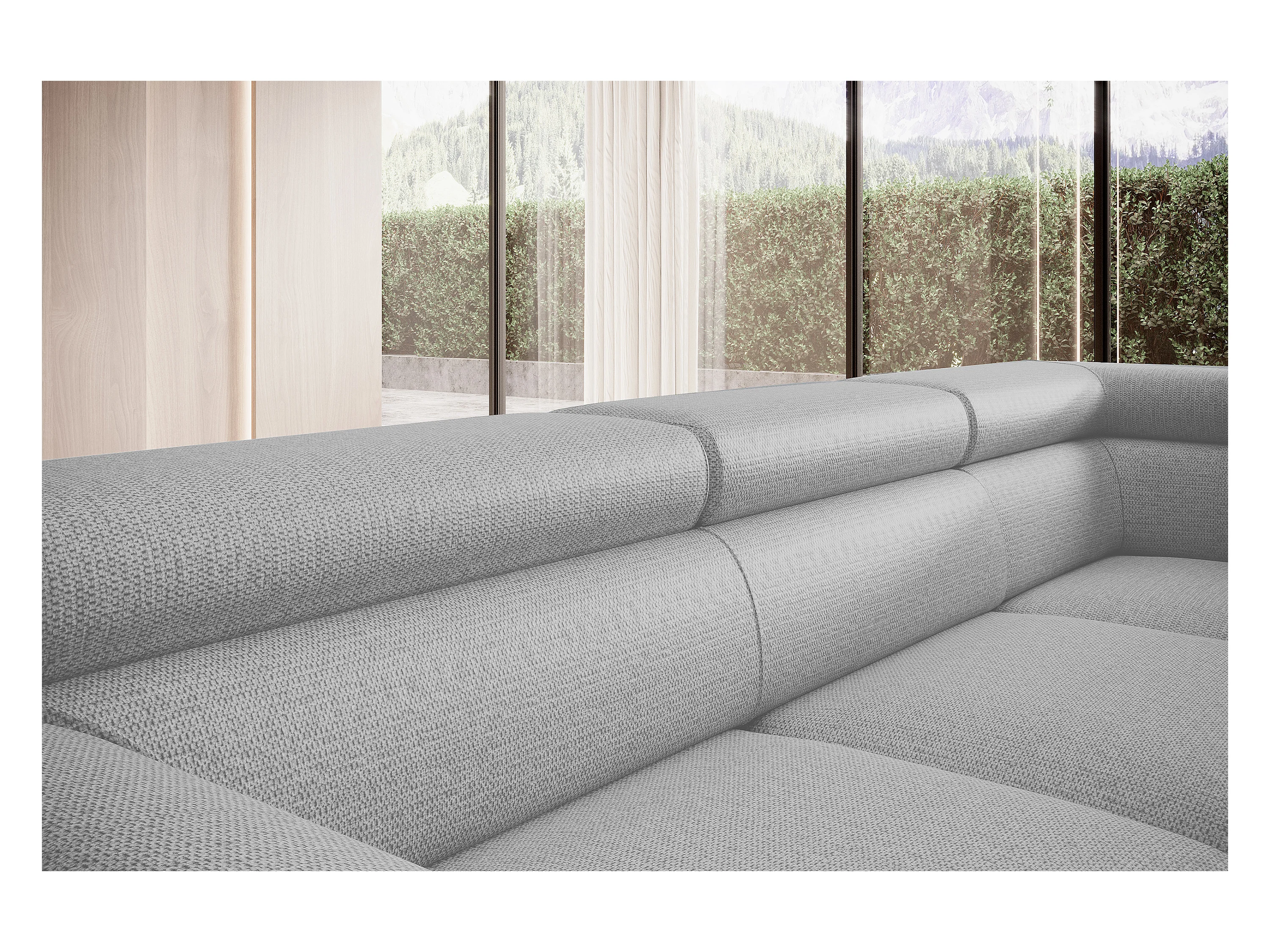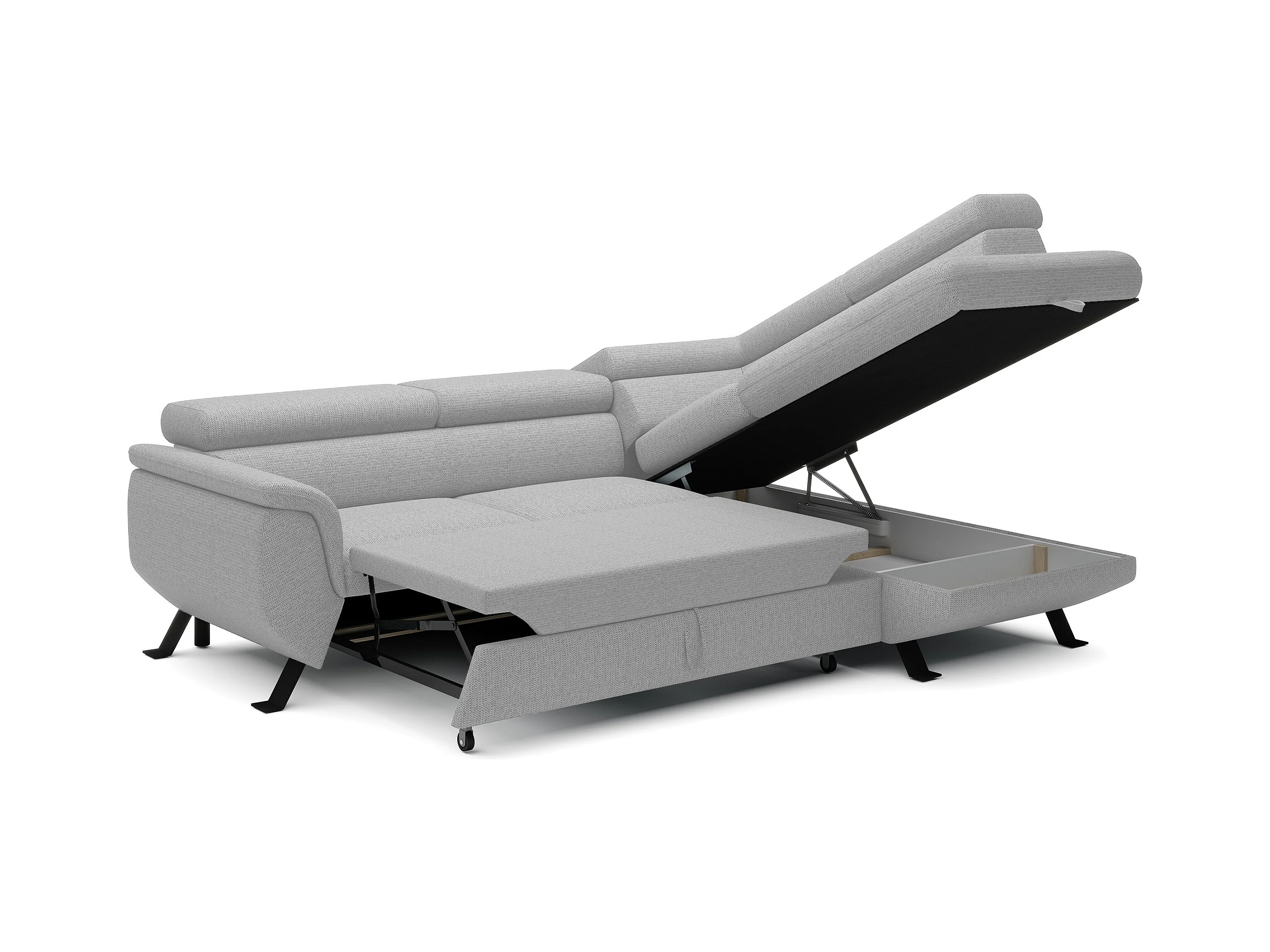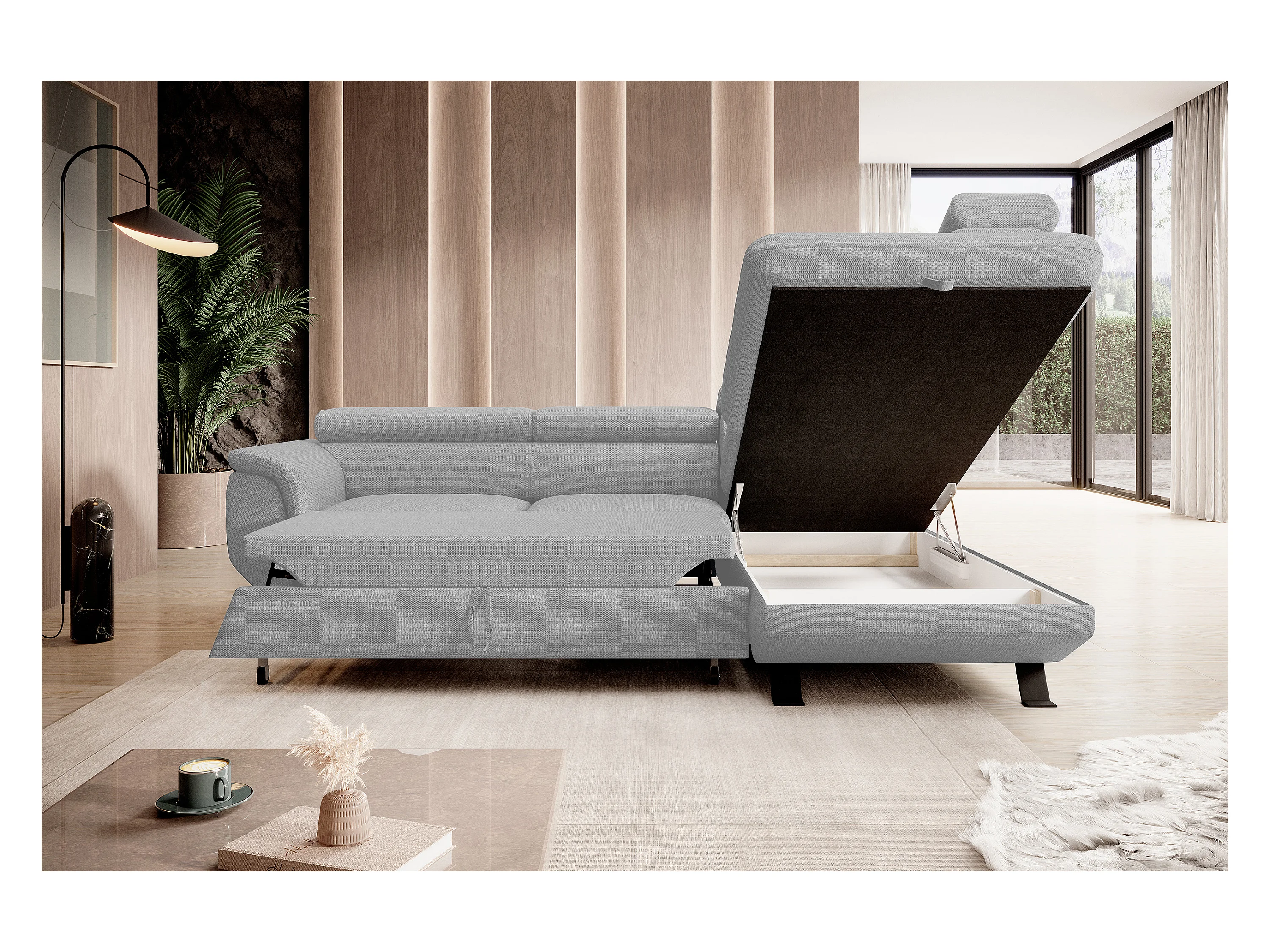 ECKSOFA RAVEN L mit Schlaffunktion und Bettkasten, Freistehend, Polstersofa mit Verstellbaren Kopfstützen, 257x198x96 cm, Rechte Seite, Esche