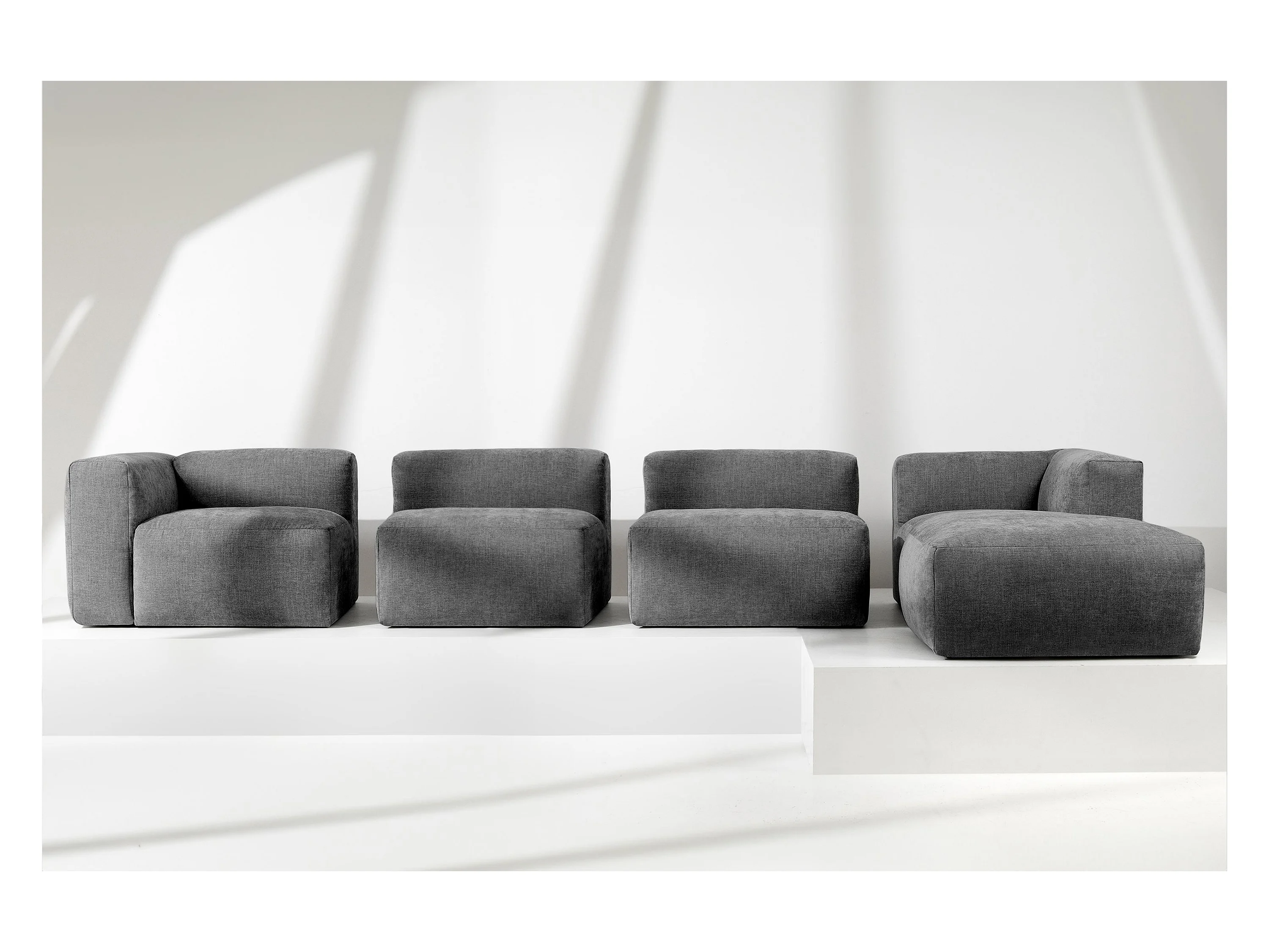 Ecksofa Rechts 6-Sitzer mit extrem weicher und bequemer Sitz - grau - BUFFO