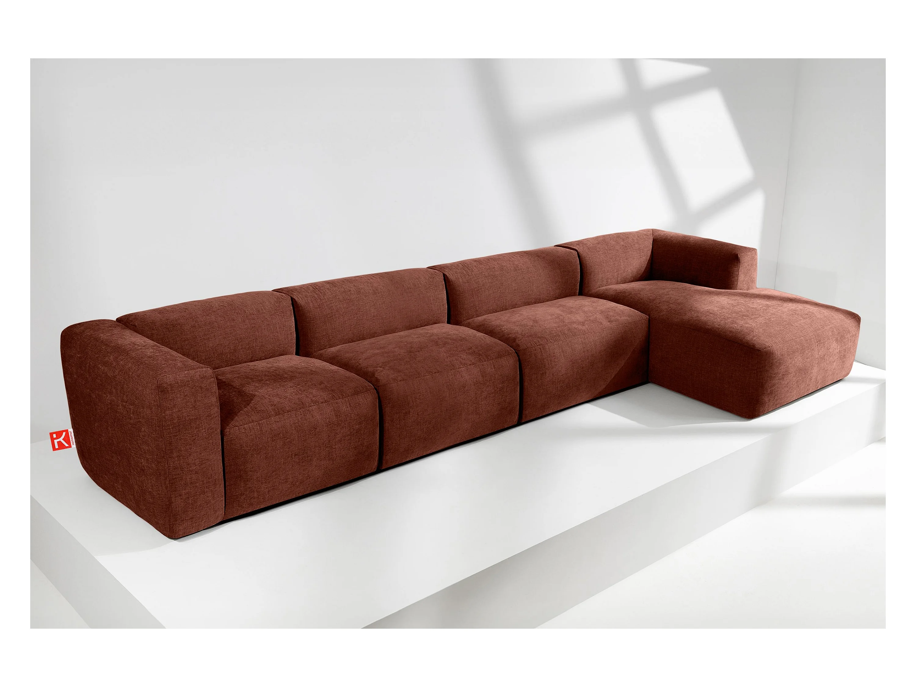 Ecksofa Rechts 6-Sitzer mit extrem weicher und bequemer Sitz - orange - BUFFO