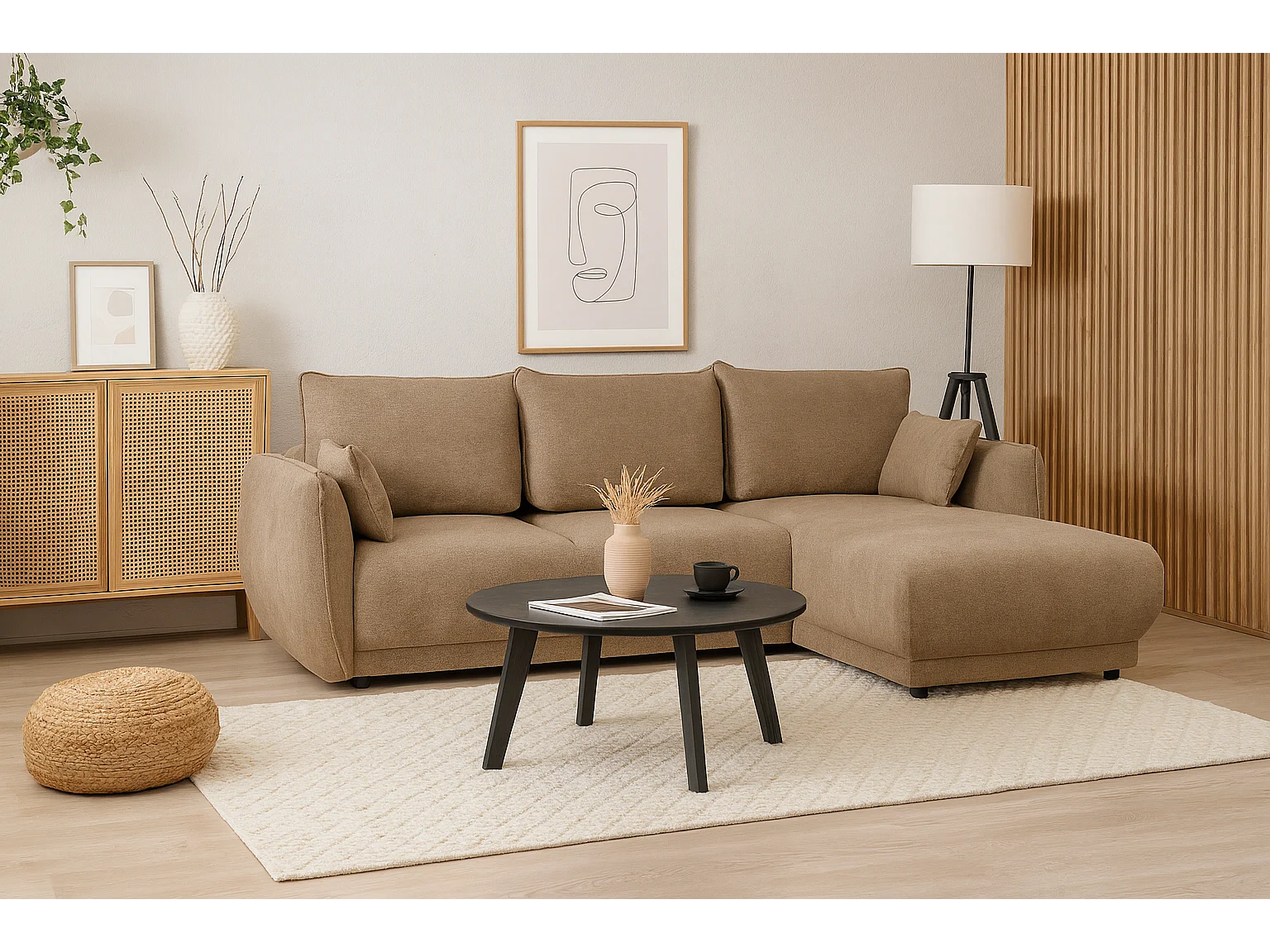 Ecksofa rechts Loren mit Schlaffunktion 250x150x90 cm – Stoff Raven 30 beige