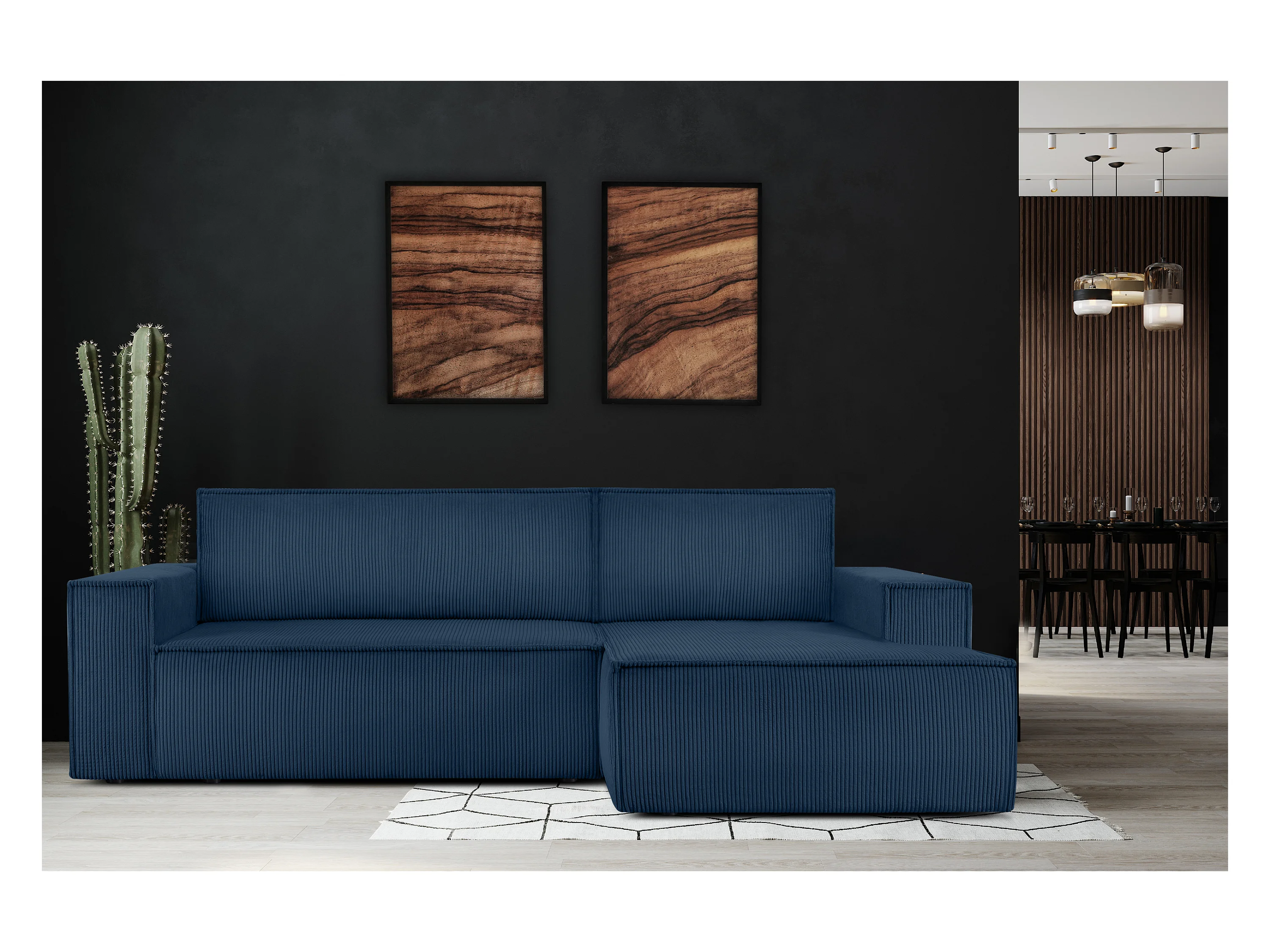 Ecksofa rechts - mit Schlaffunktion - in Pet Friendly Cord-Stoff - marineblau - NAPI