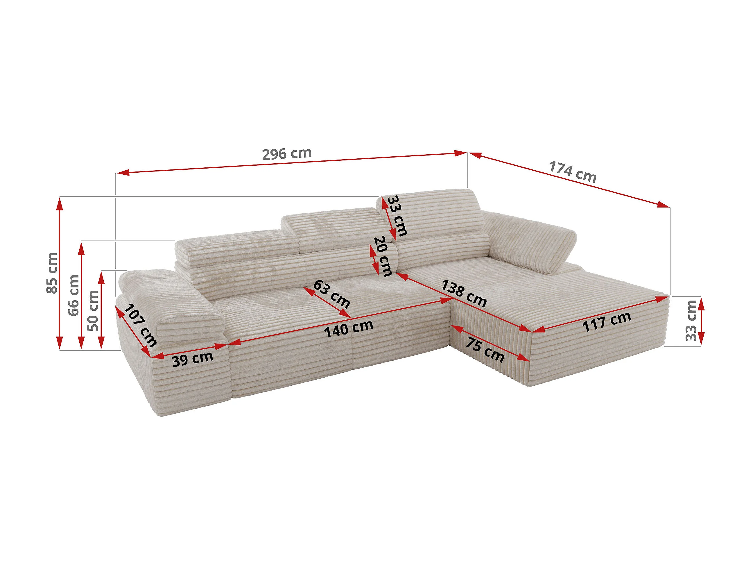 Ecksofa RILASSO - L-förmige Ecke mit Relax-funktion, elektrisch verstellbarer Sitz, Armlehnen - Beige Cord - Ecke Links