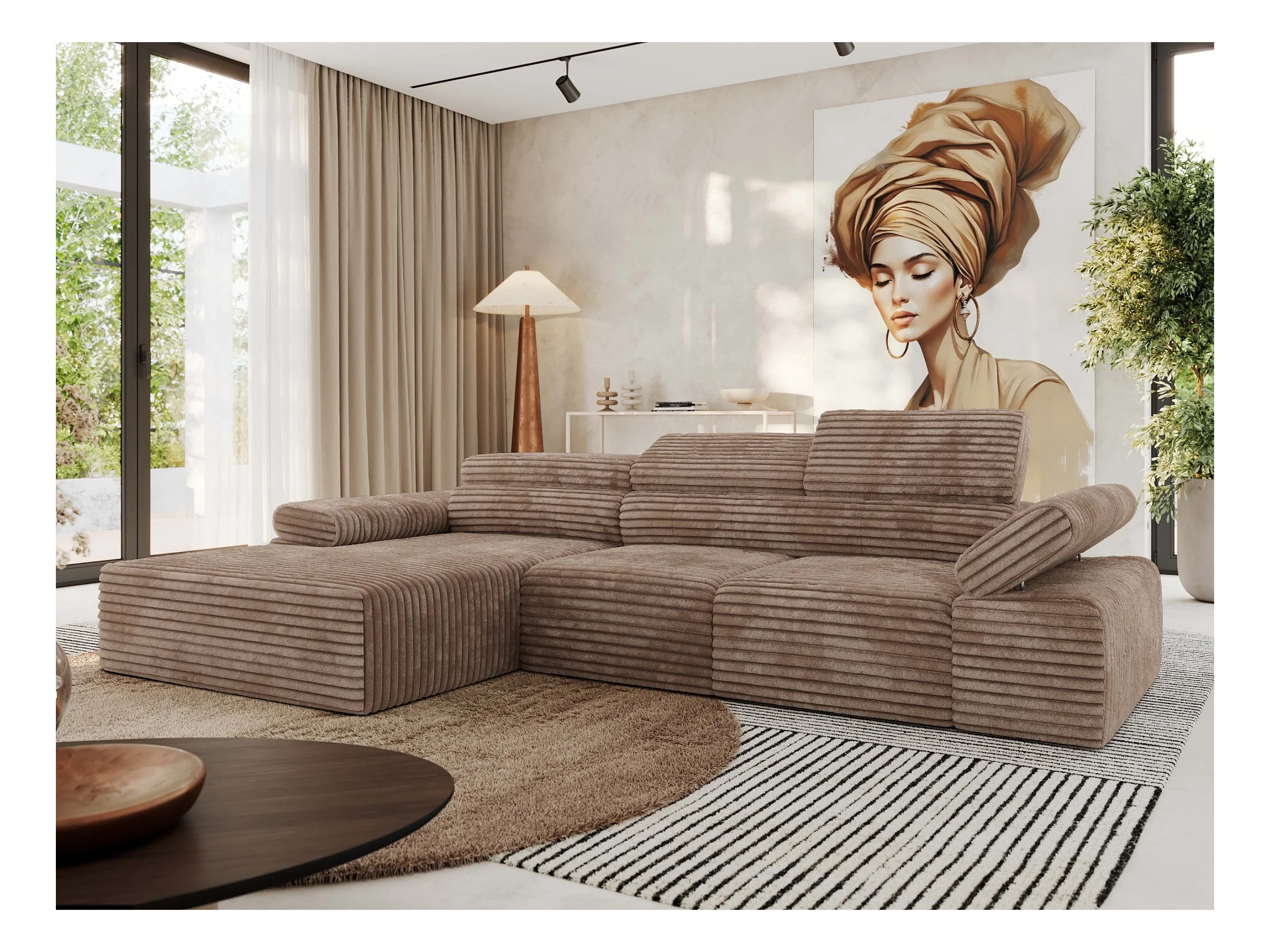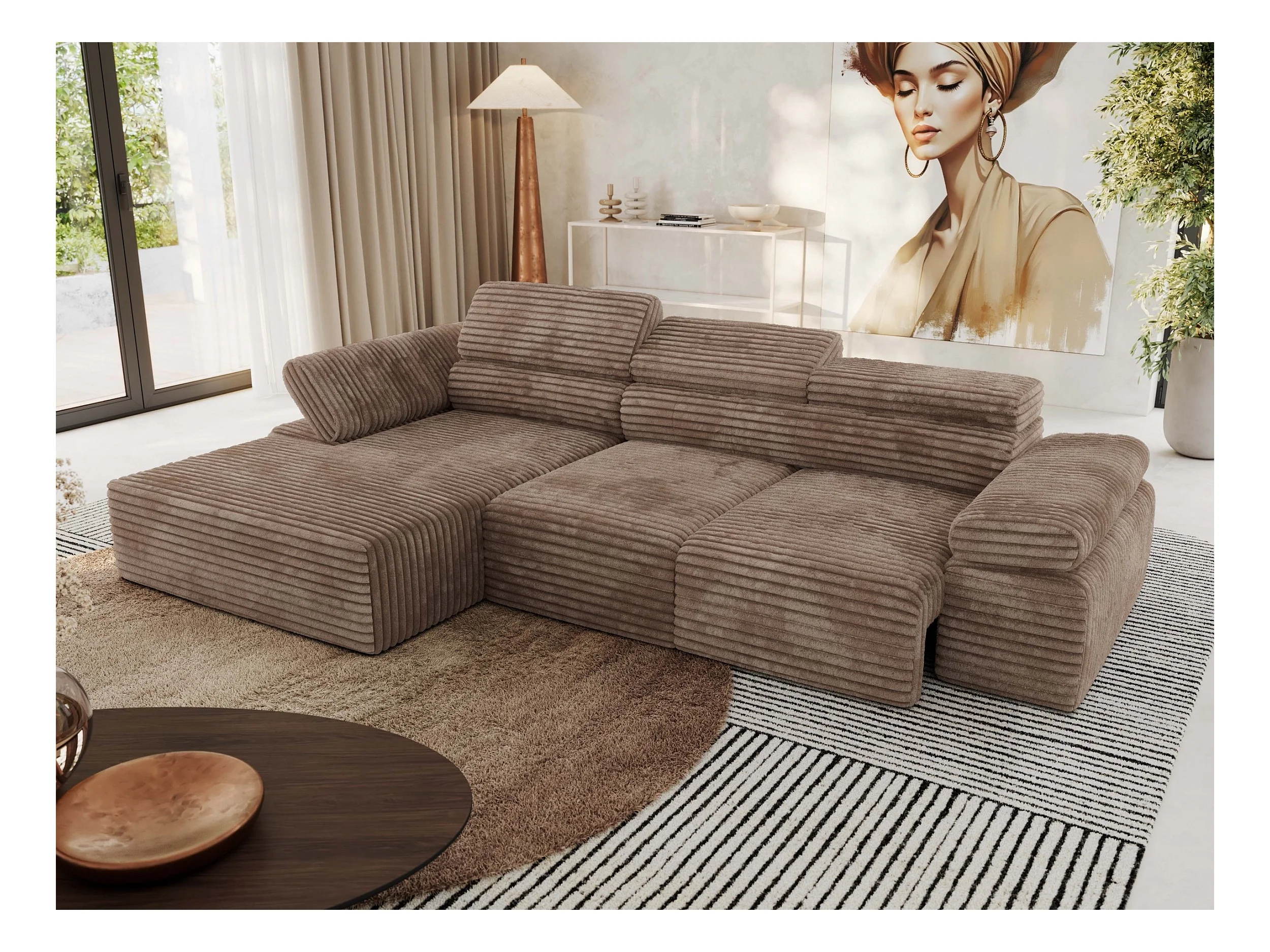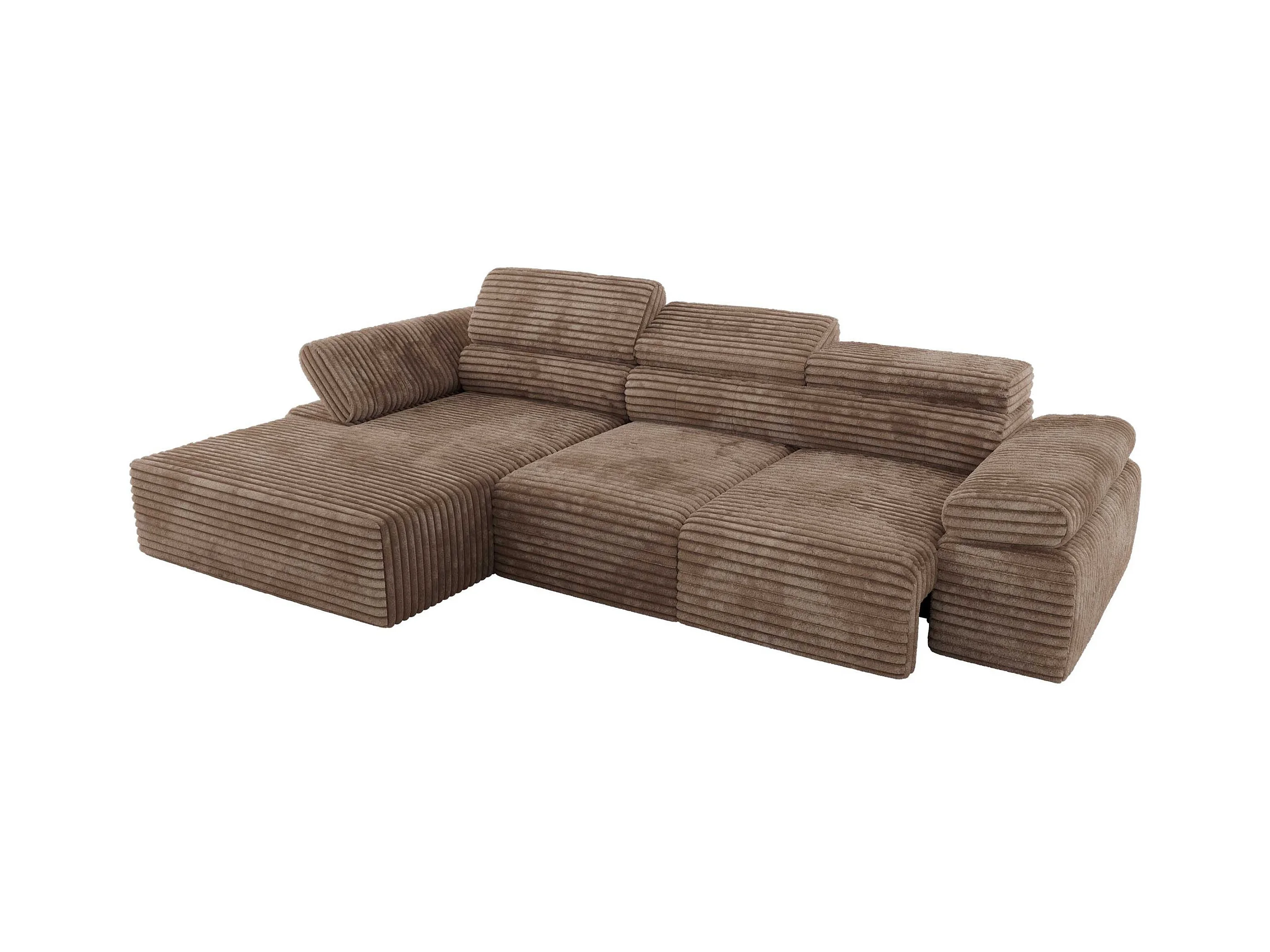 Ecksofa RILASSO - L-förmige Ecke mit Relax-funktion, elektrisch verstellbarer Sitz, Armlehnen - Braun Cord - Ecke Links