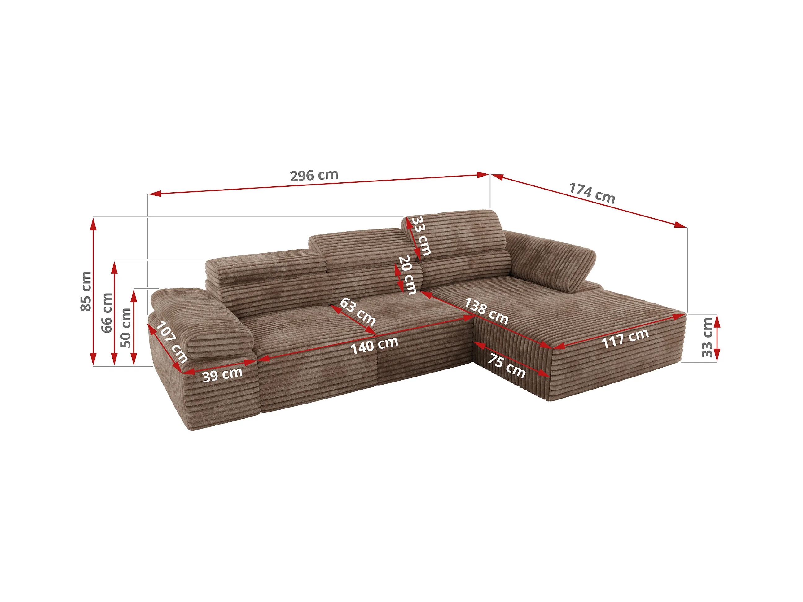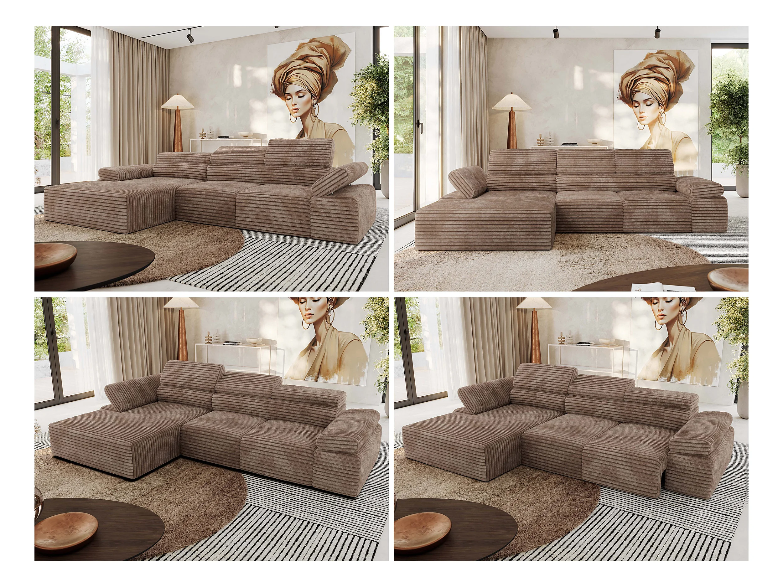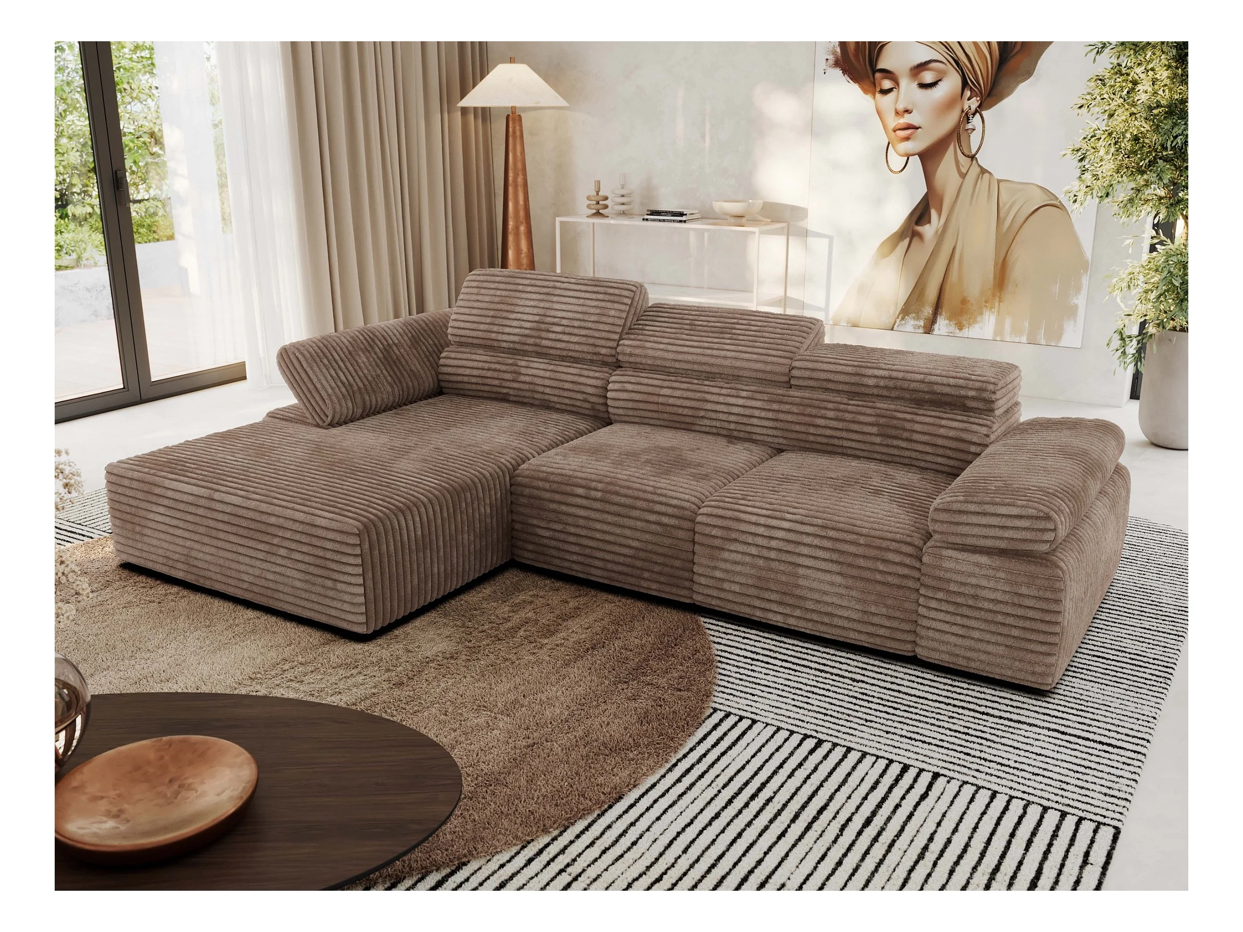 Ecksofa RILASSO - L-förmige Ecke mit Relax-funktion, elektrisch verstellbarer Sitz, Armlehnen - Braun Cord - Ecke Links