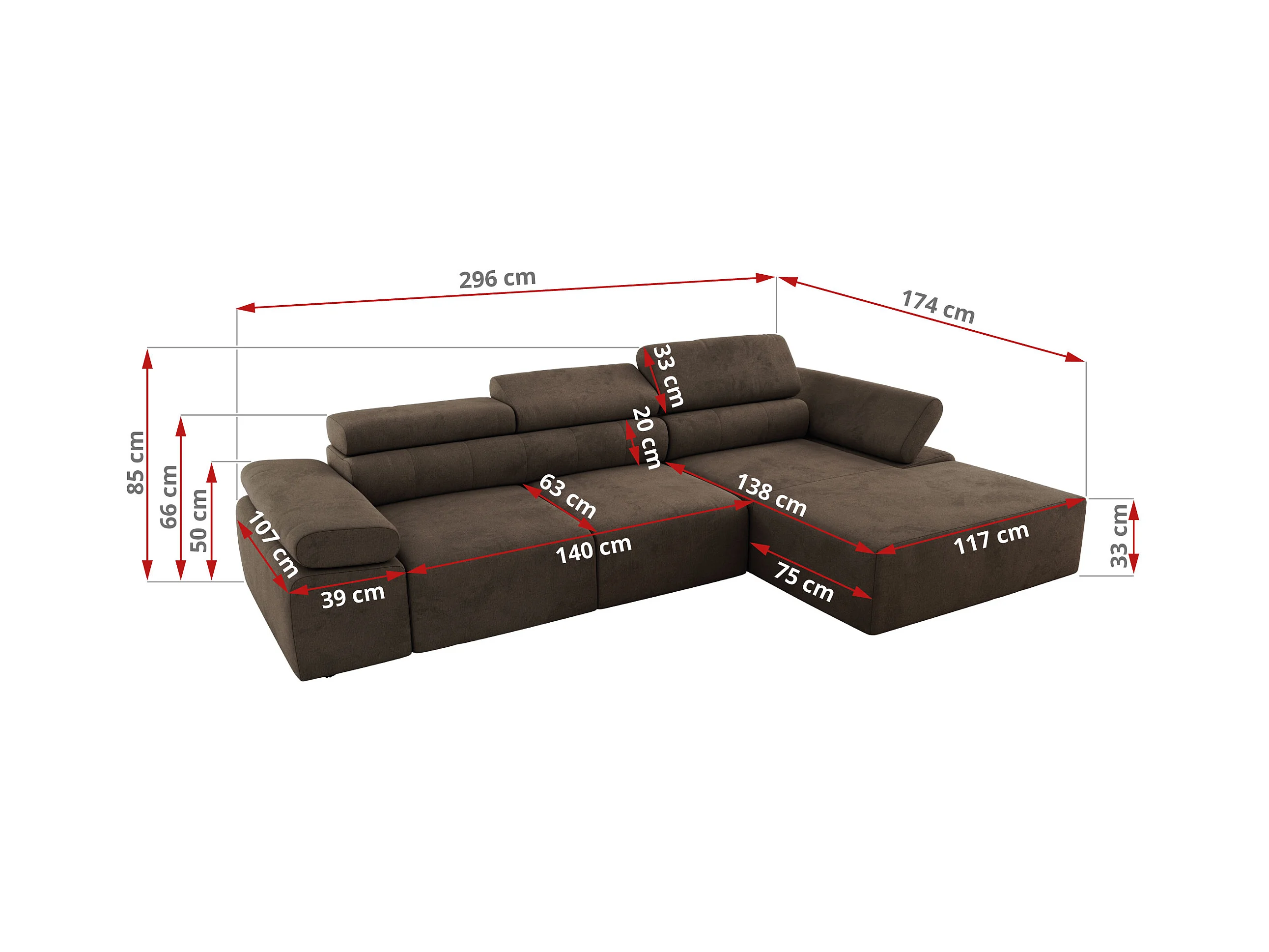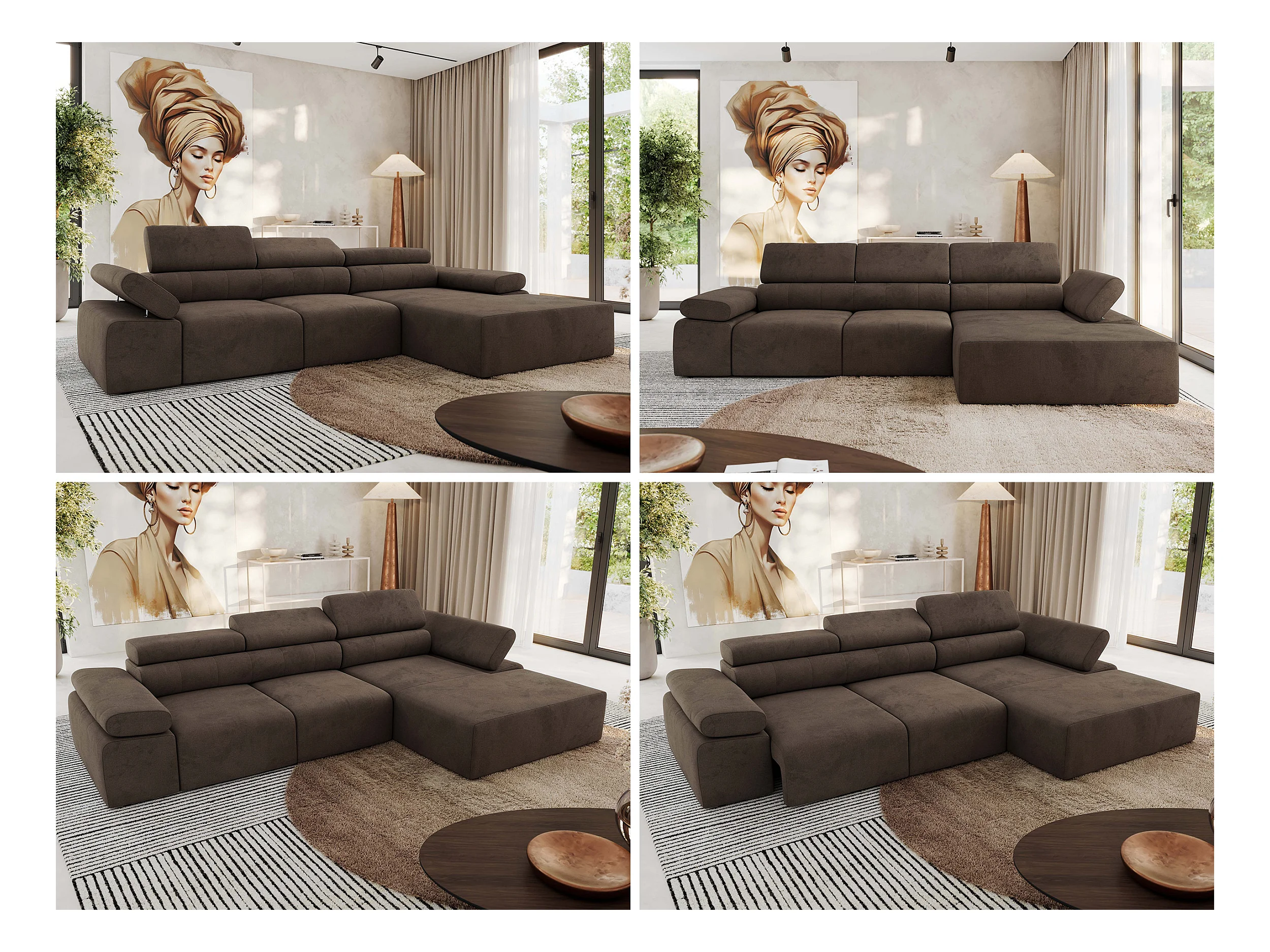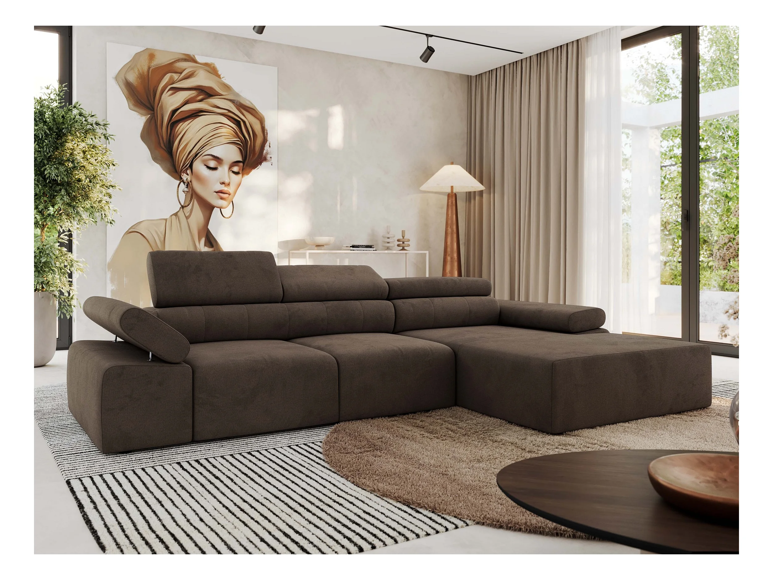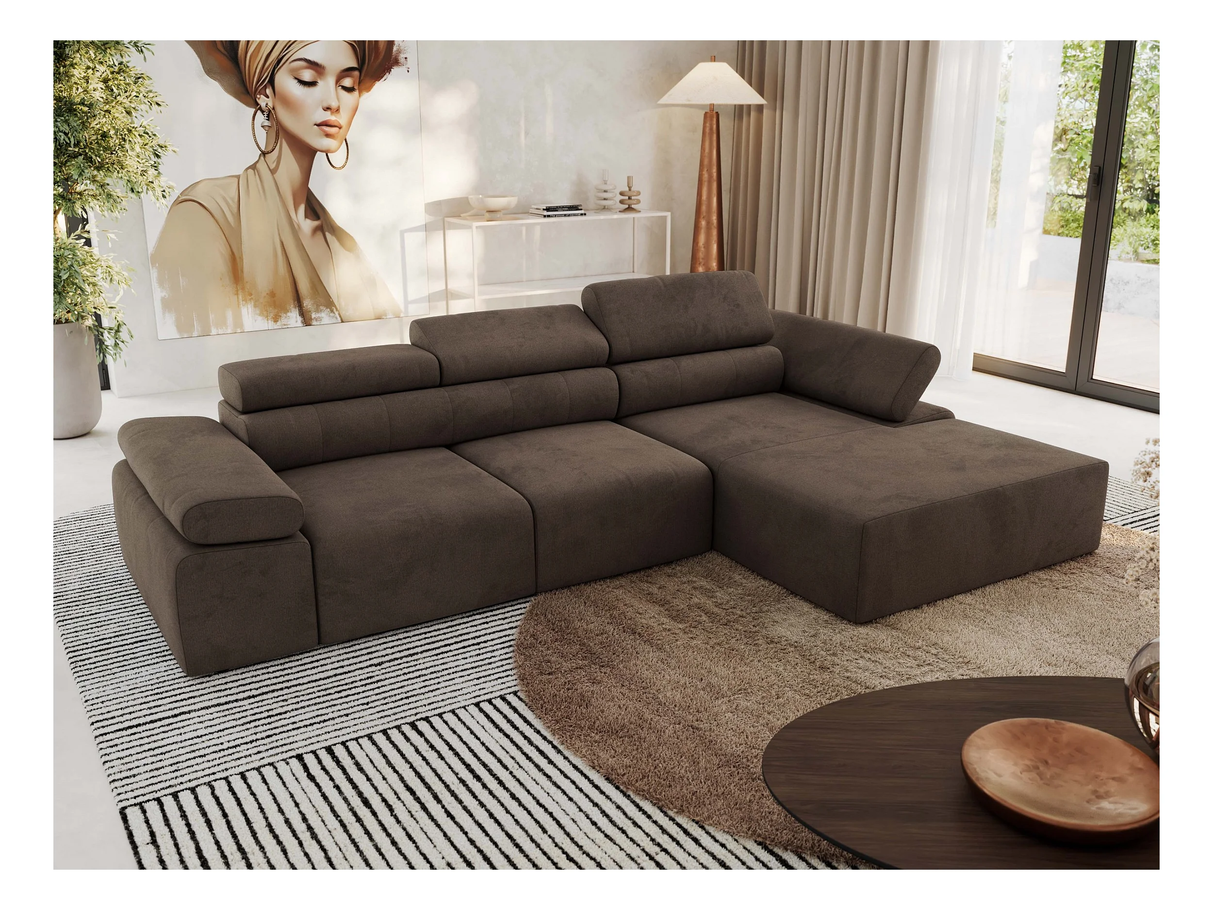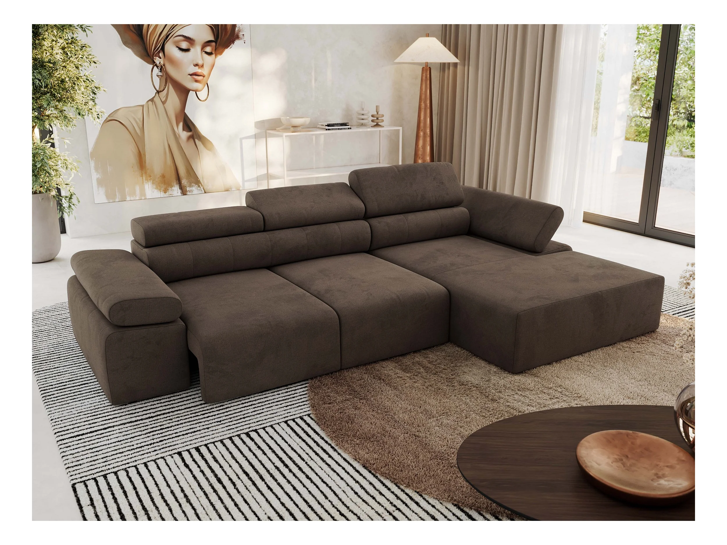 Ecksofa RILASSO - L-förmige Ecke mit Relax-funktion, elektrisch verstellbarer Sitz, Armlehnen - Braun Velvet - Ecke Rechts