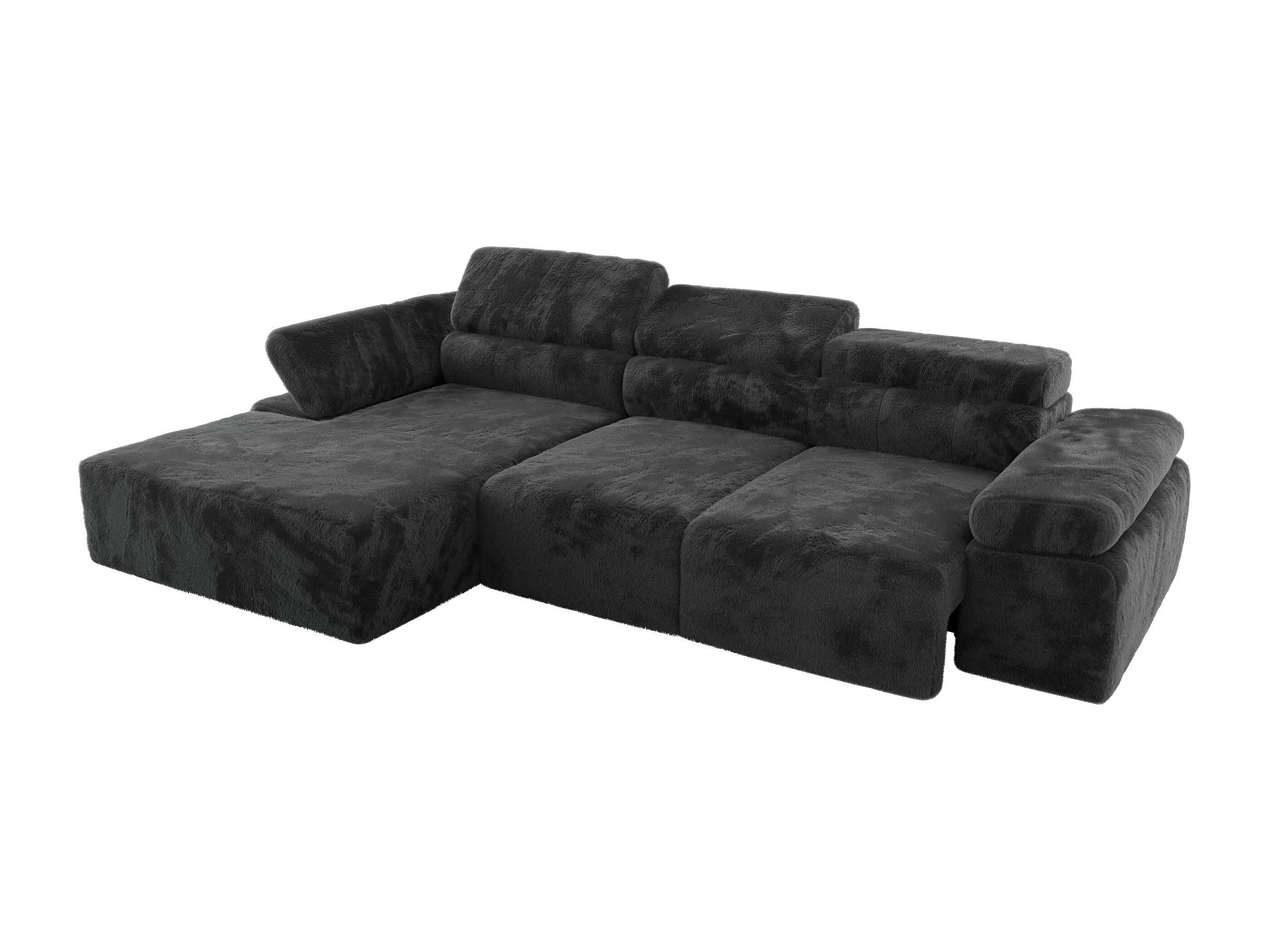 Ecksofa RILASSO - L-förmige Ecke mit Relax-funktion, elektrisch verstellbarer Sitz, Armlehnen - Dunkelgrau Plüsch - Ecke Links