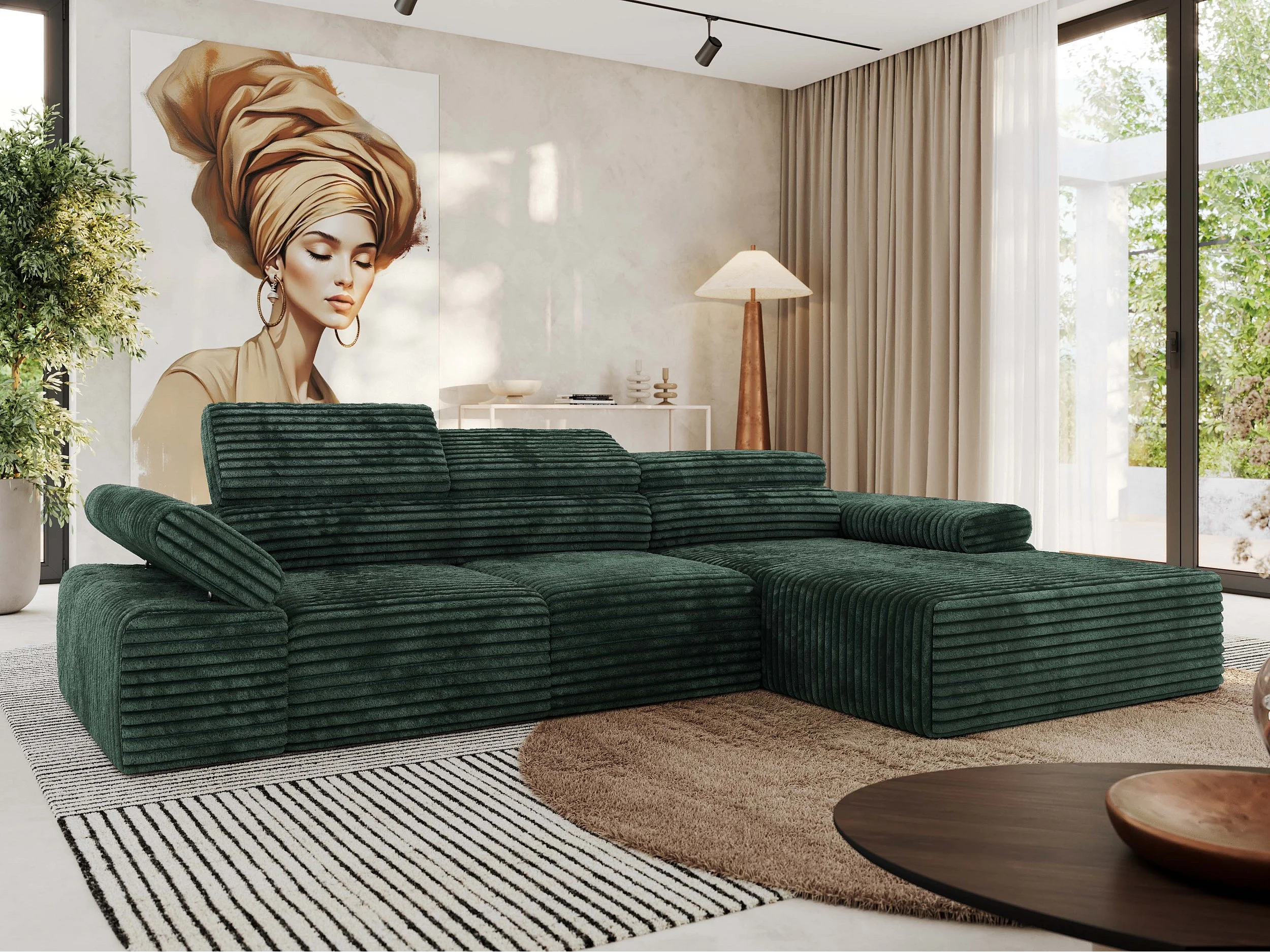 Ecksofa RILASSO - L-förmige Ecke mit Relax-funktion, elektrisch verstellbarer Sitz, Armlehnen - Grün Cord - Ecke Rechts