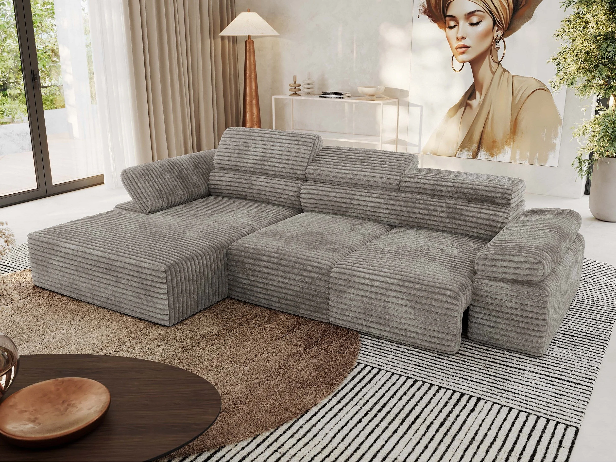 Ecksofa RILASSO - L-förmige Ecke mit Relax-funktion, elektrisch verstellbarer Sitz, Armlehnen - Hellbraun Cord - Ecke Links