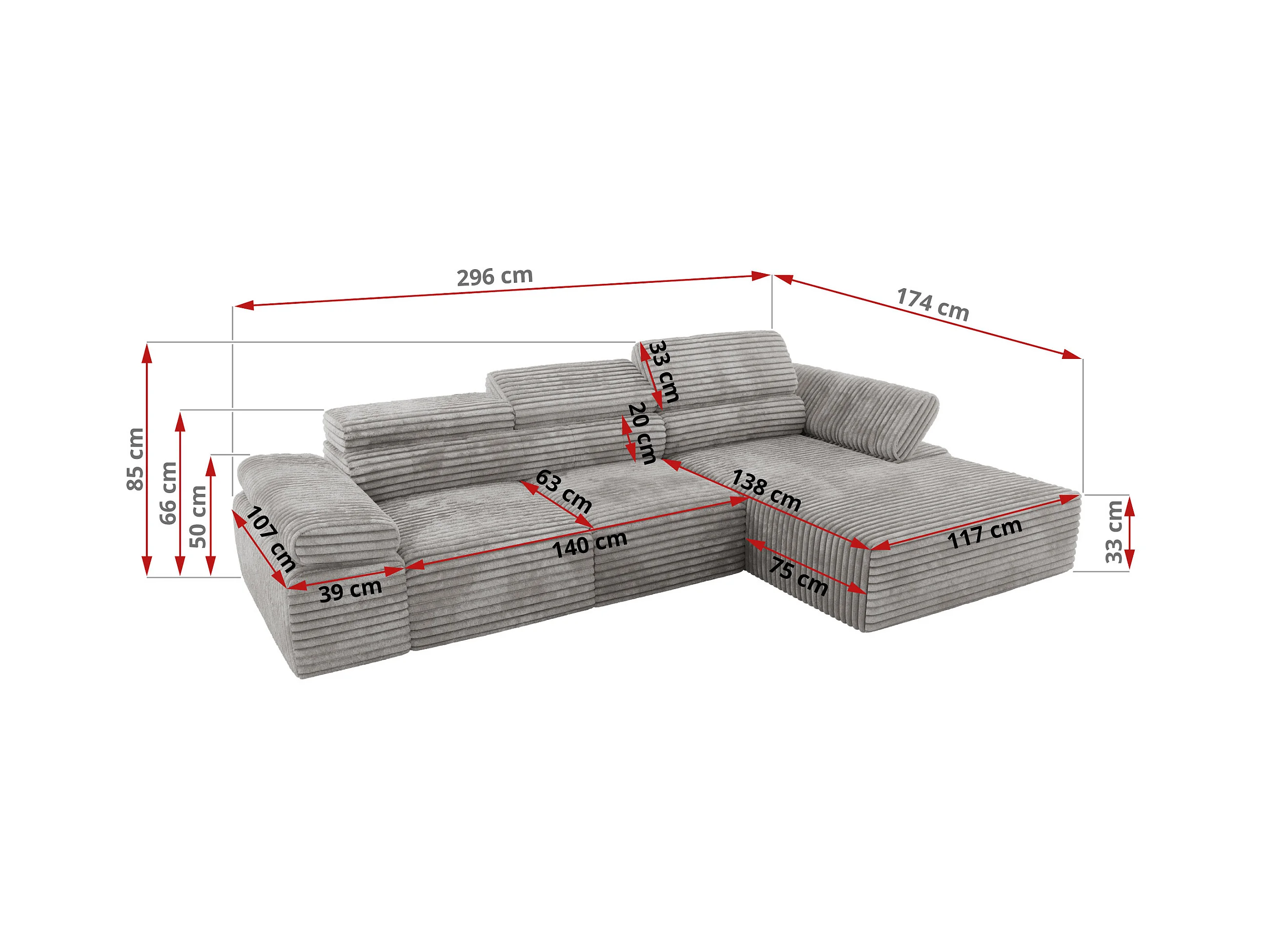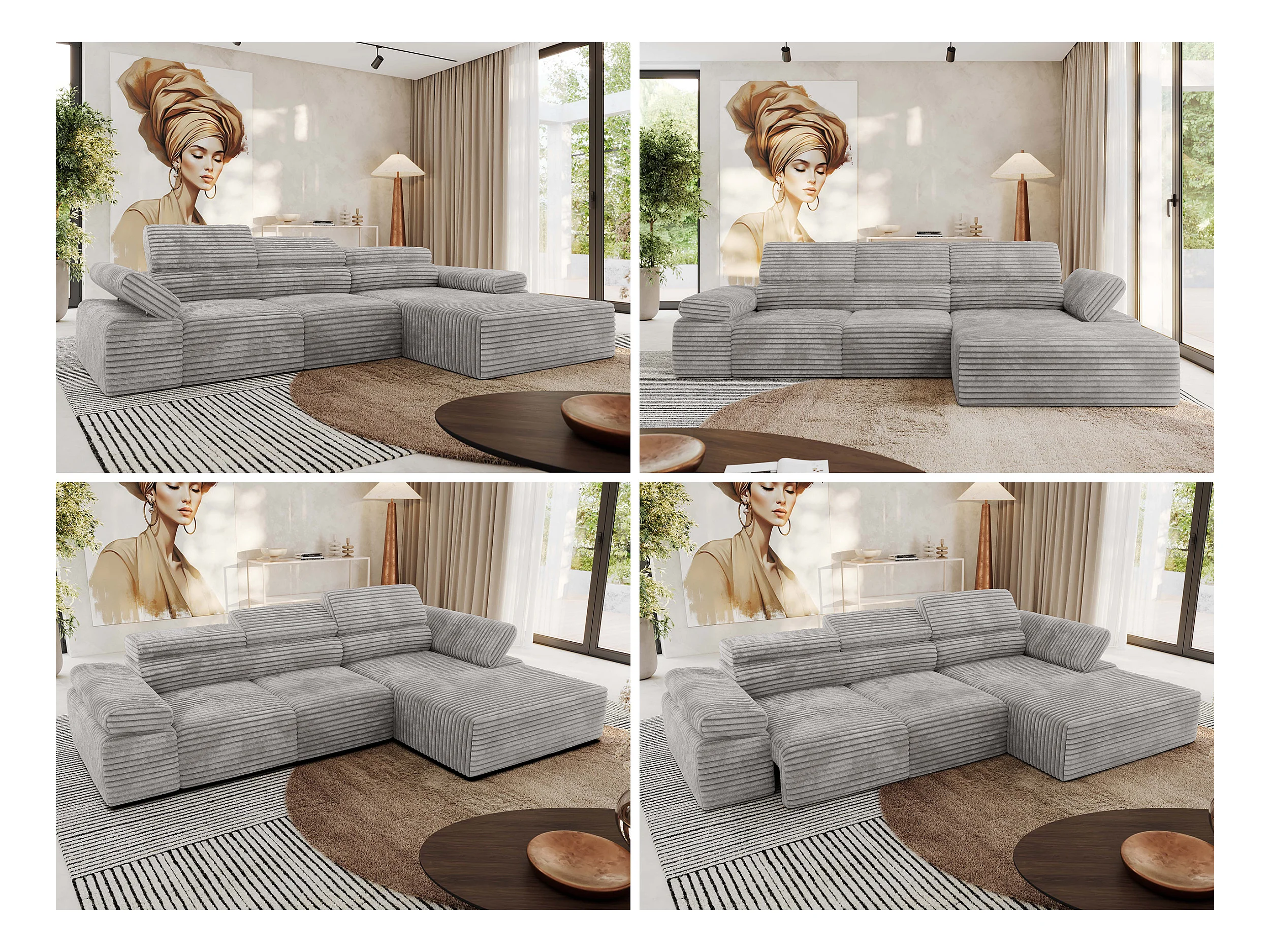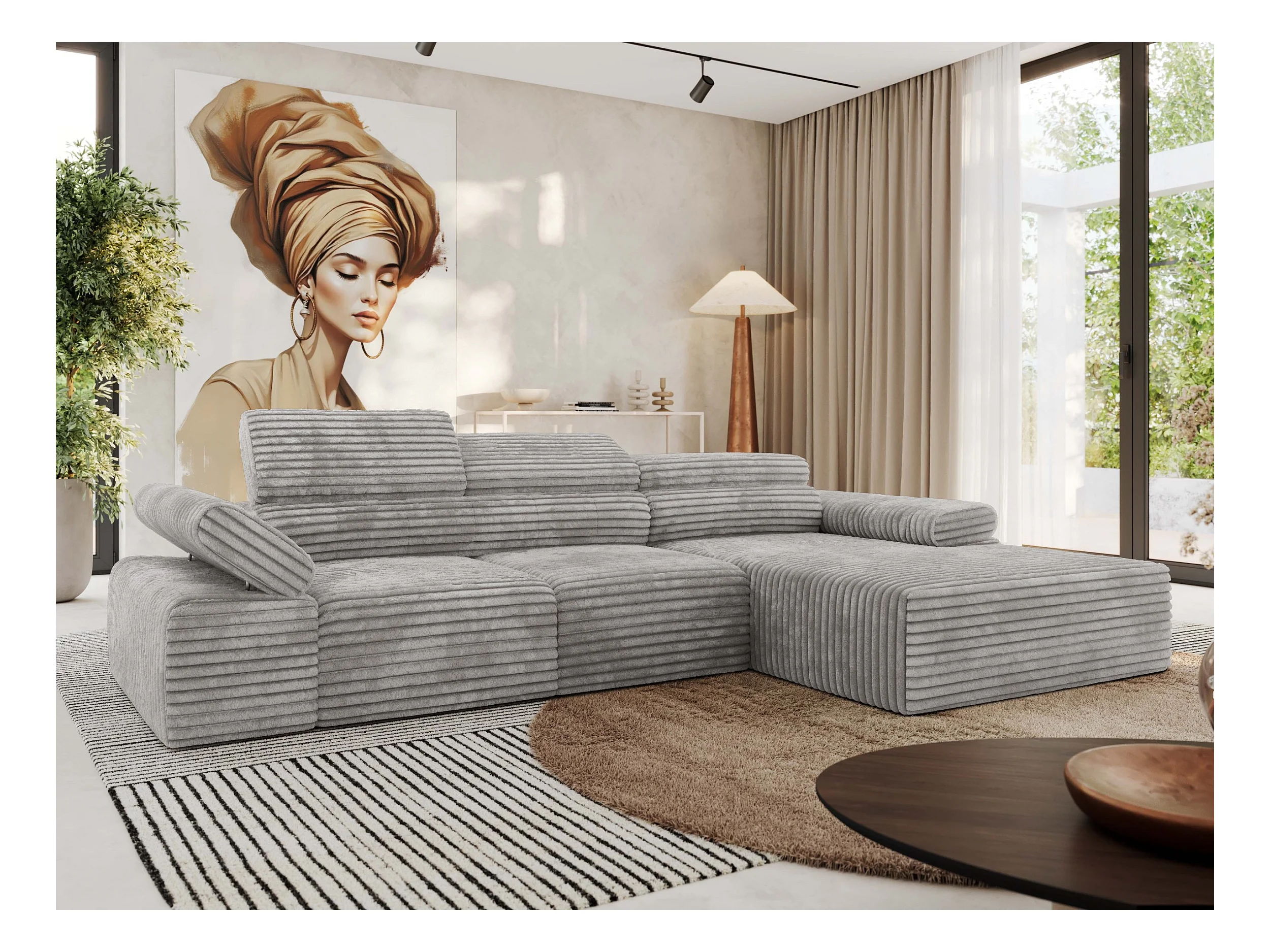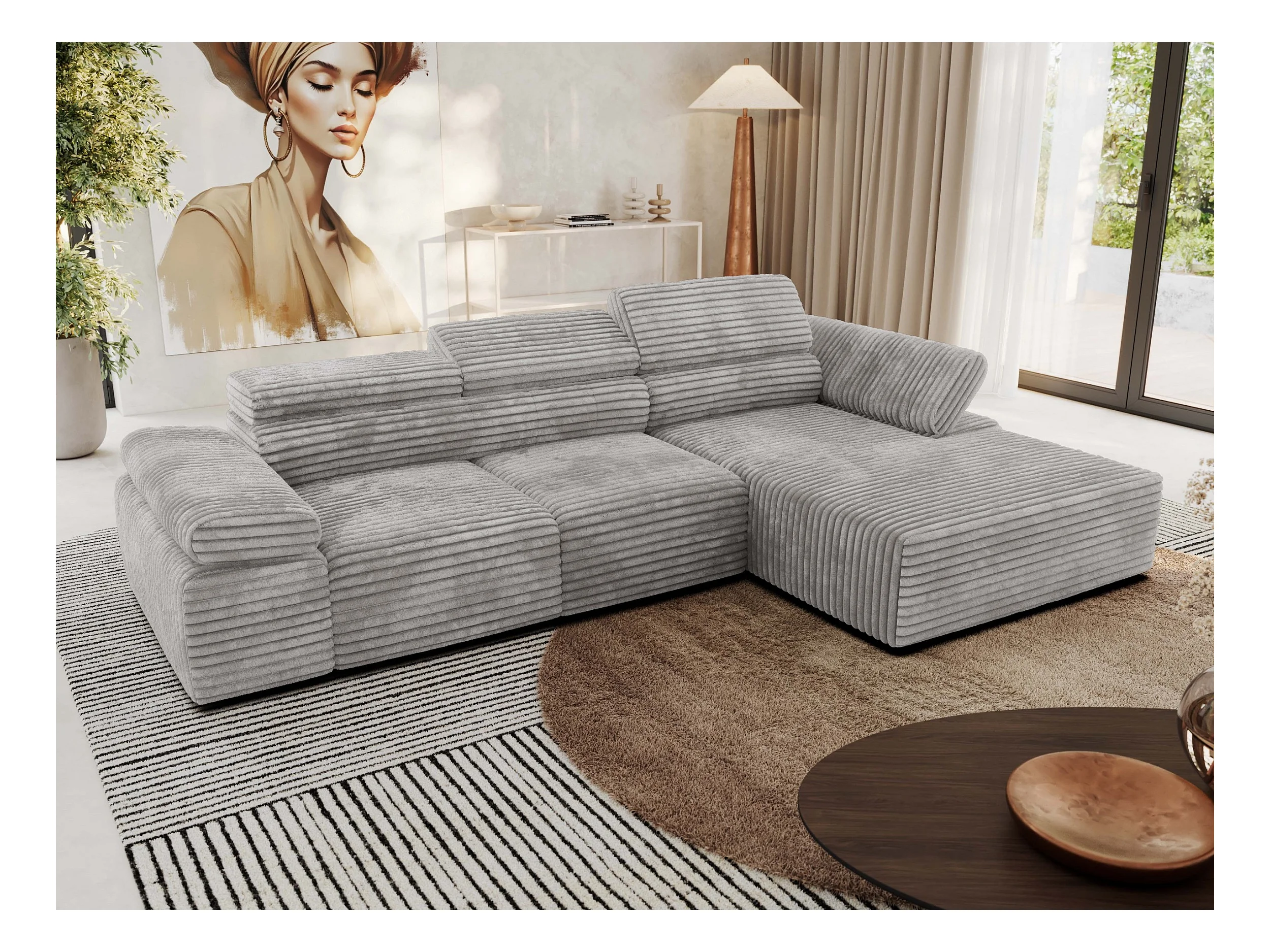 Ecksofa RILASSO - L-förmige Ecke mit Relax-funktion, elektrisch verstellbarer Sitz, Armlehnen - Hellgrau Cord - Ecke Rechts
