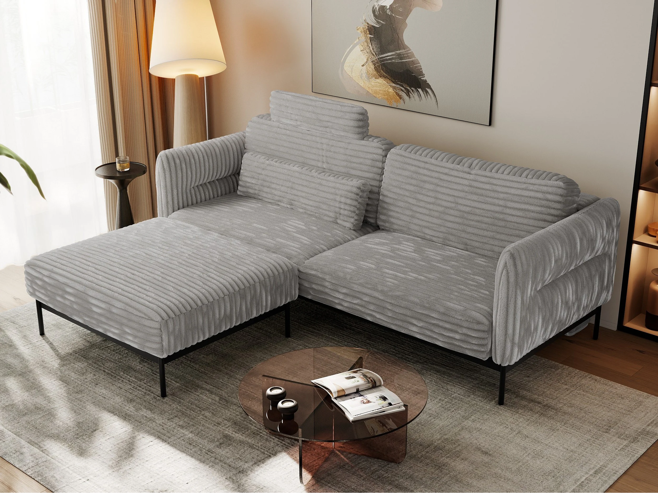 Ecksofa SALENTO - mit Metallbeine, Schlafsofa, mobilen Fußhocker, lose Kissen - Hellgrau Cord