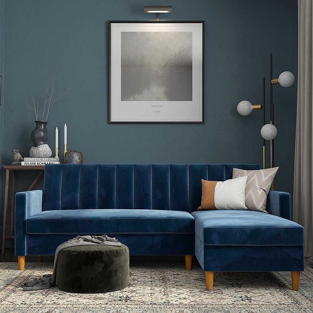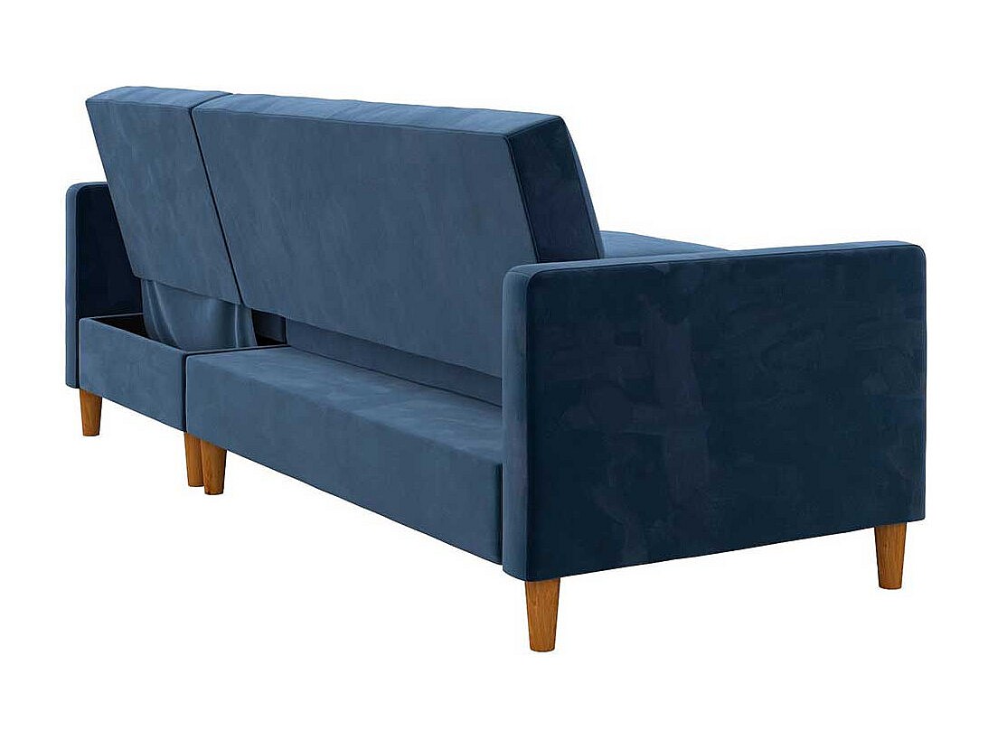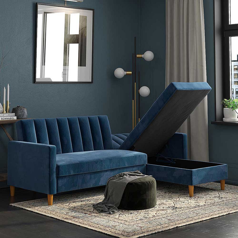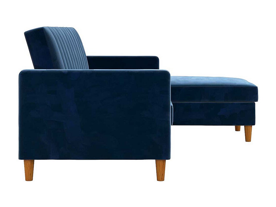 Ecksofa Samt Bezug blau mit Schlaffunktion Bettkasten