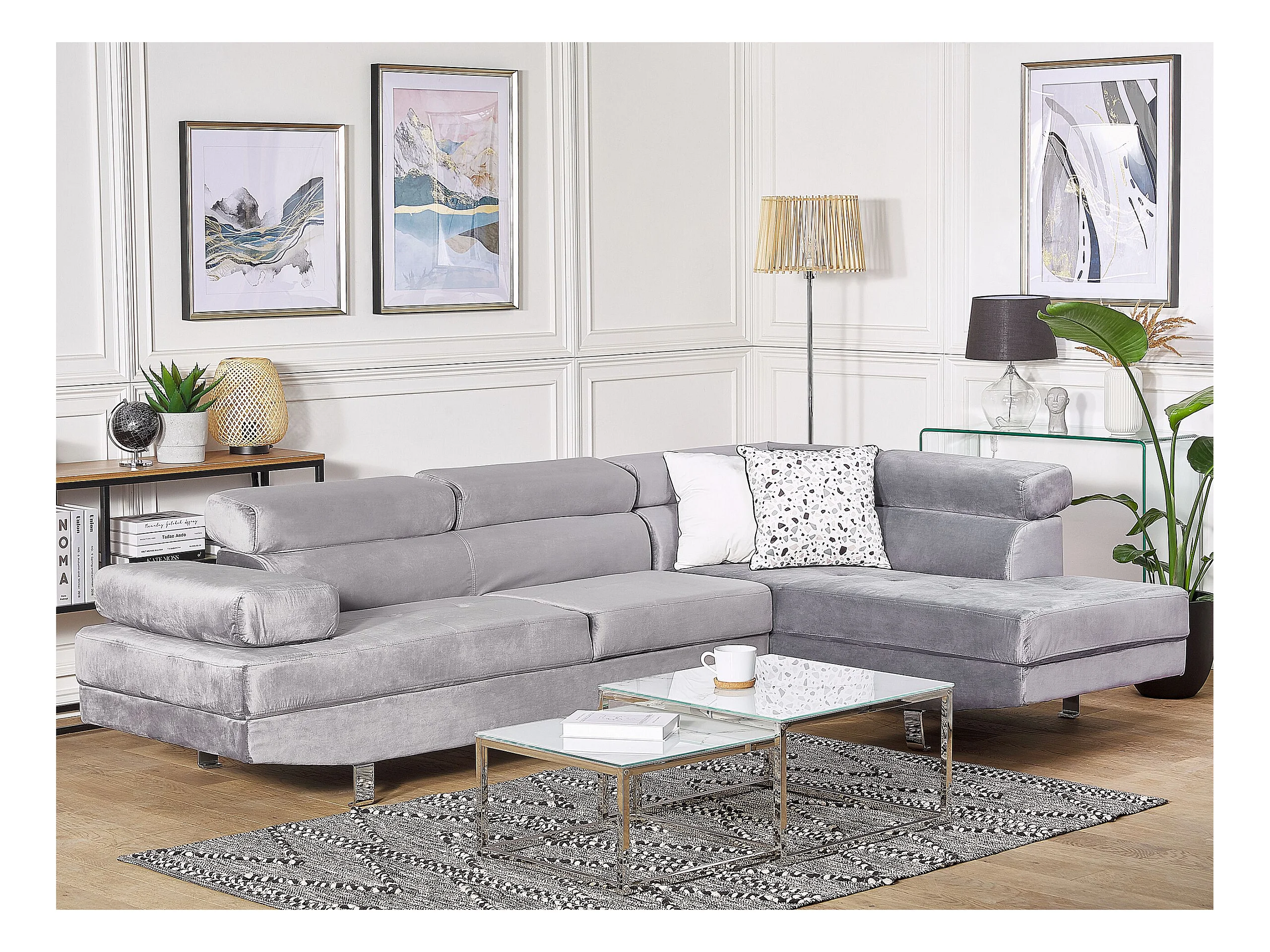5-Sitzer Ecksofa Samt helles Grau mit Chaiselongue links modern Norrea