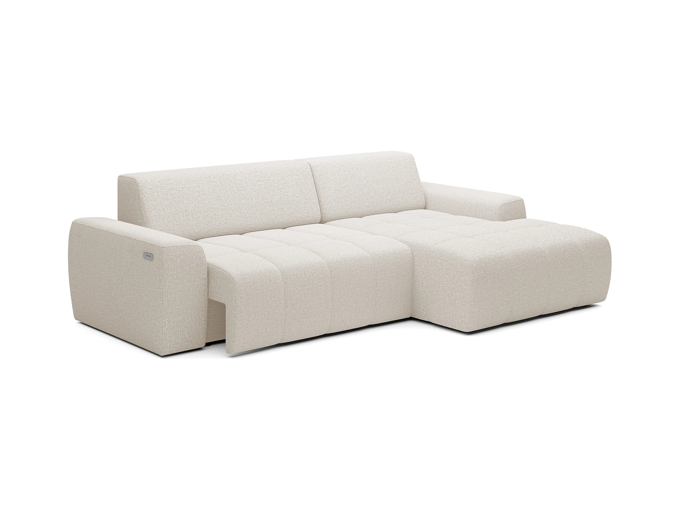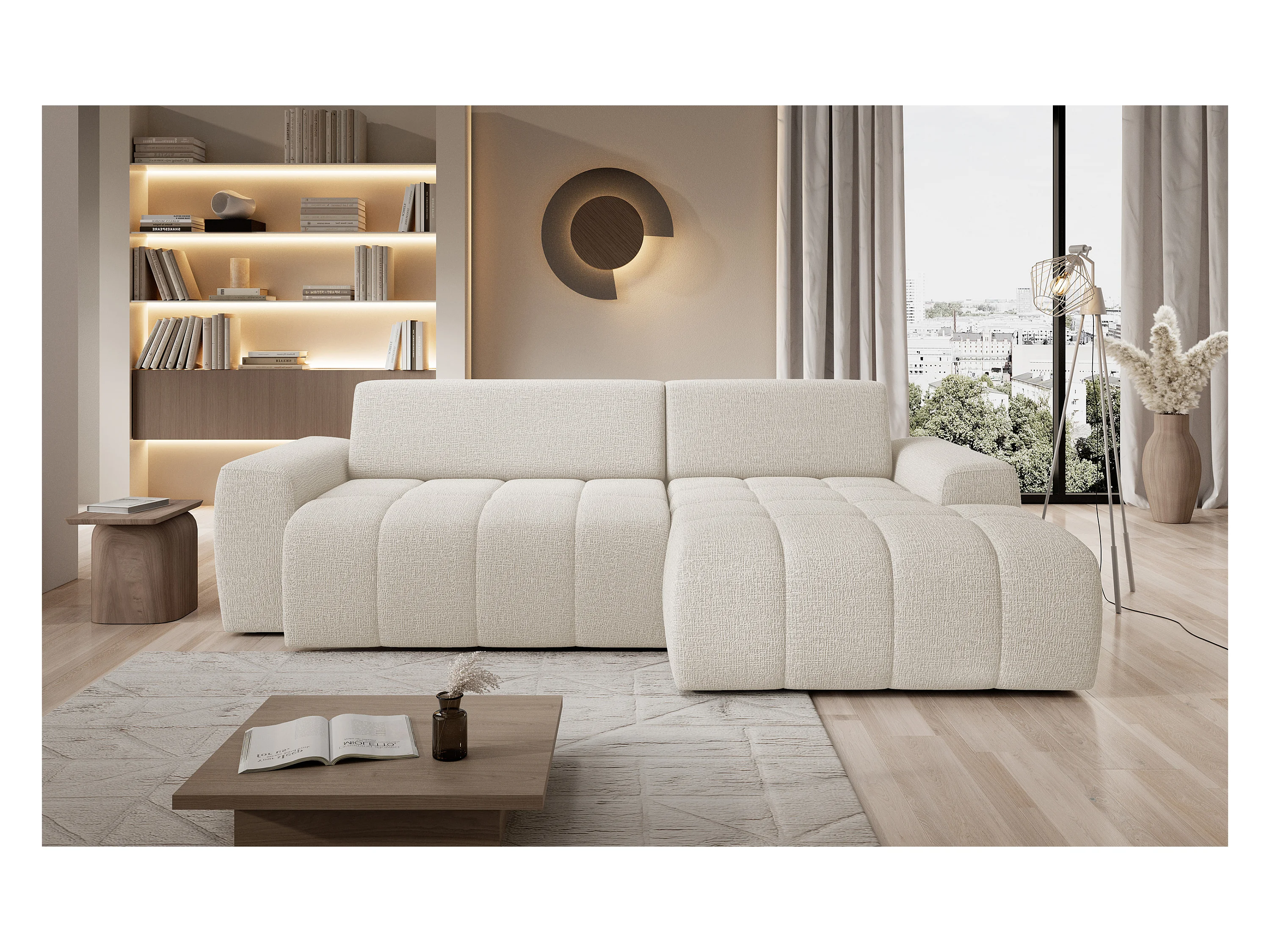 Ecksofa Savio Freistehend, Mit Abriebfestem Kansas-Stoff, Maße 265x172x81cm, Ausziehbare Sitzfläche 206x92cm, Rechte Seite, Helles Beige