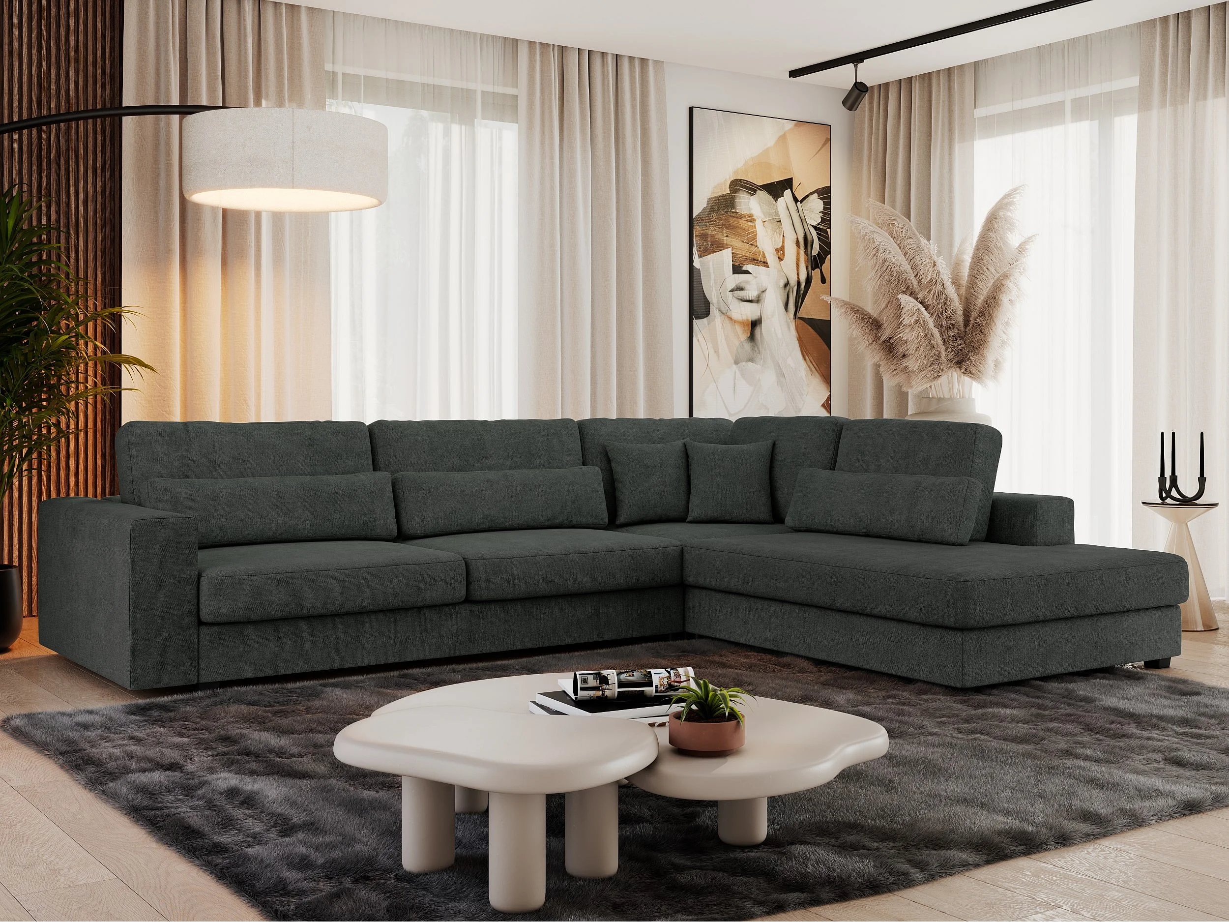 Ecksofa SAVONA - mit Armlehnen, lose Kissen, große L-förmige Ecke, Wohnlandschaft - Dunkelgrau Strukture - Ecke Rechts