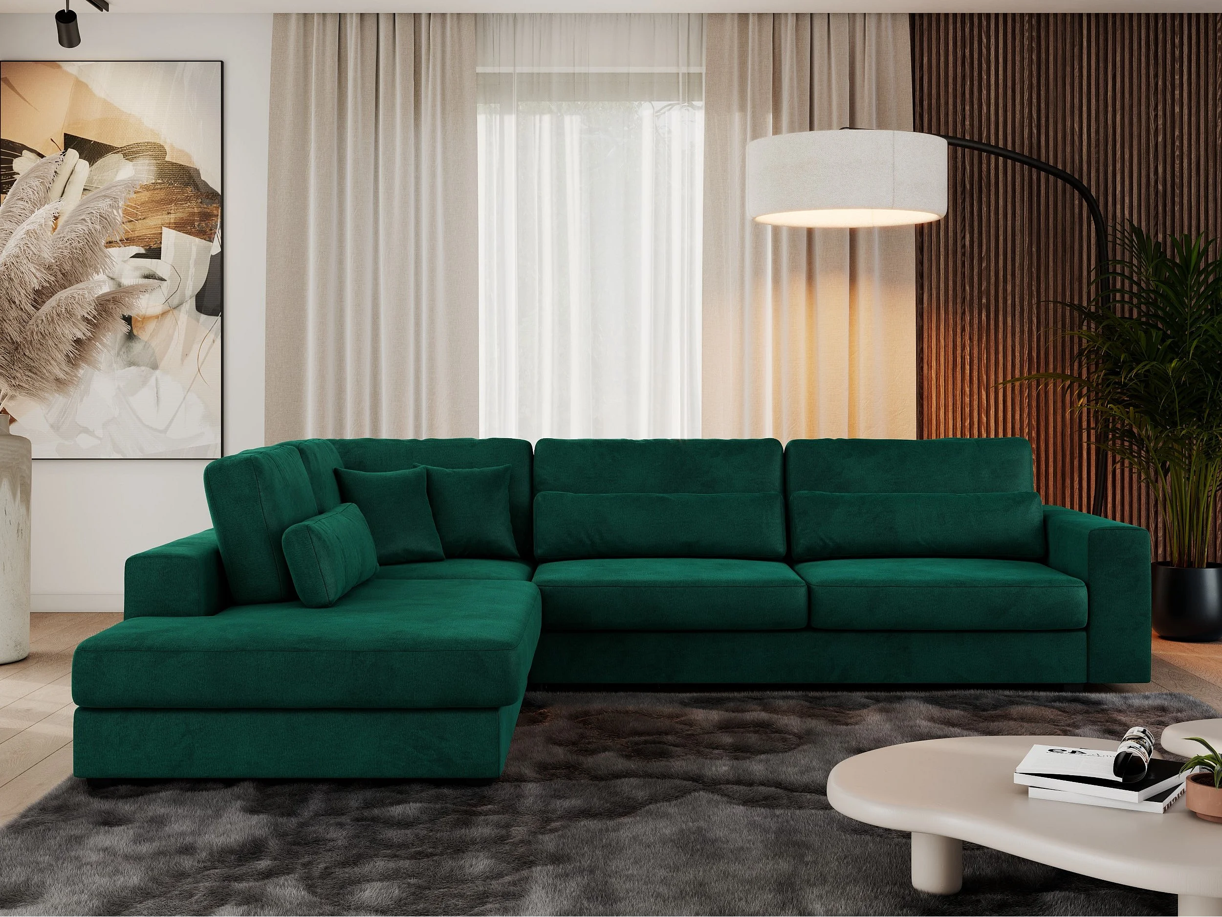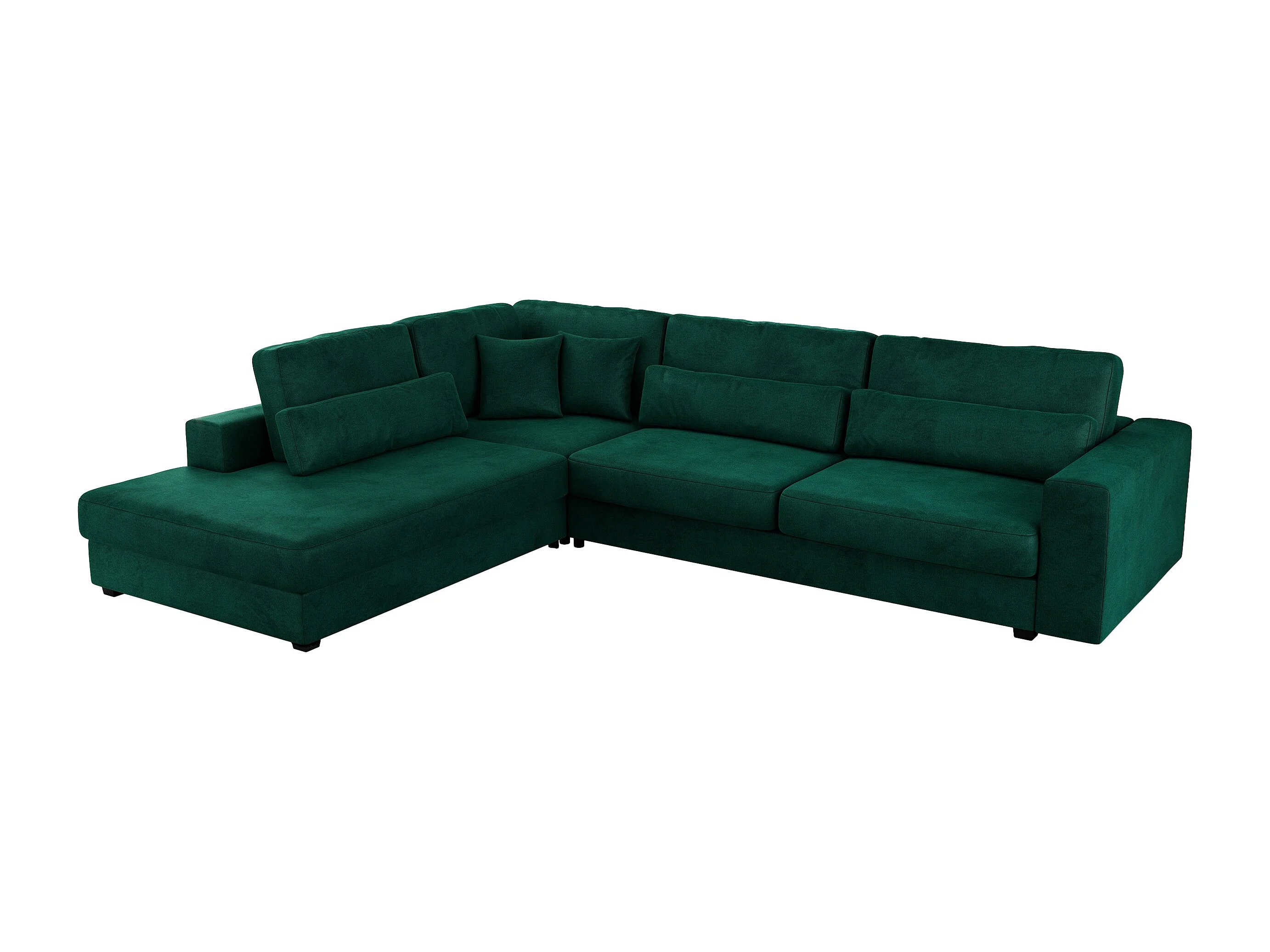 Ecksofa SAVONA - mit Armlehnen, lose Kissen, große L-förmige Ecke, Wohnlandschaft - Dunkelgrün Velvet - Ecke Links