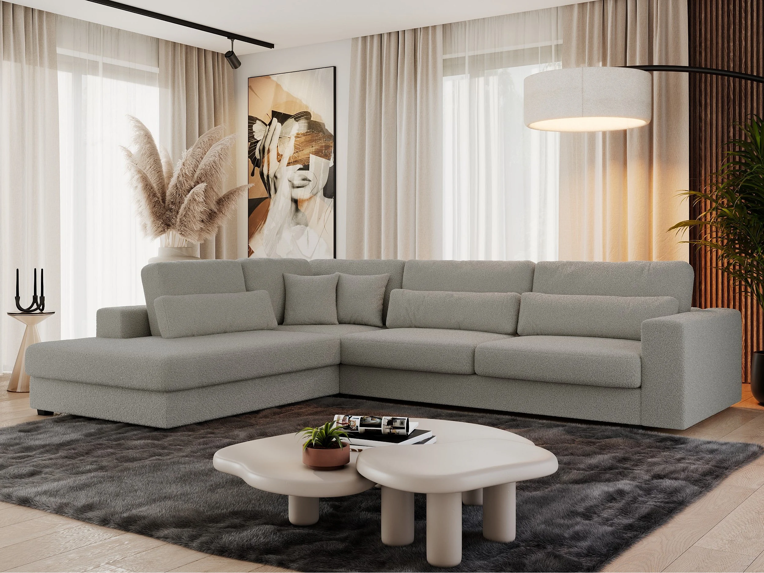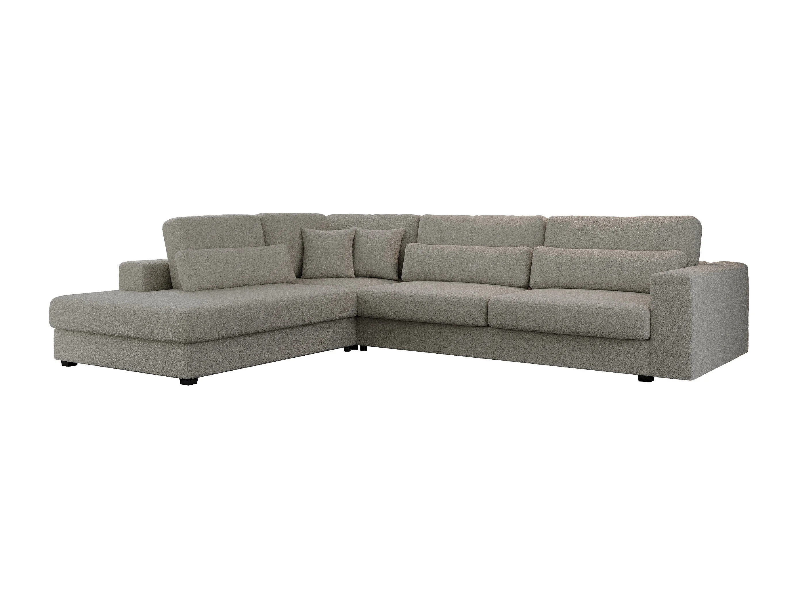 Ecksofa SAVONA - mit Armlehnen, lose Kissen, große L-förmige Ecke, Wohnlandschaft - Grau Boucle - Ecke Links