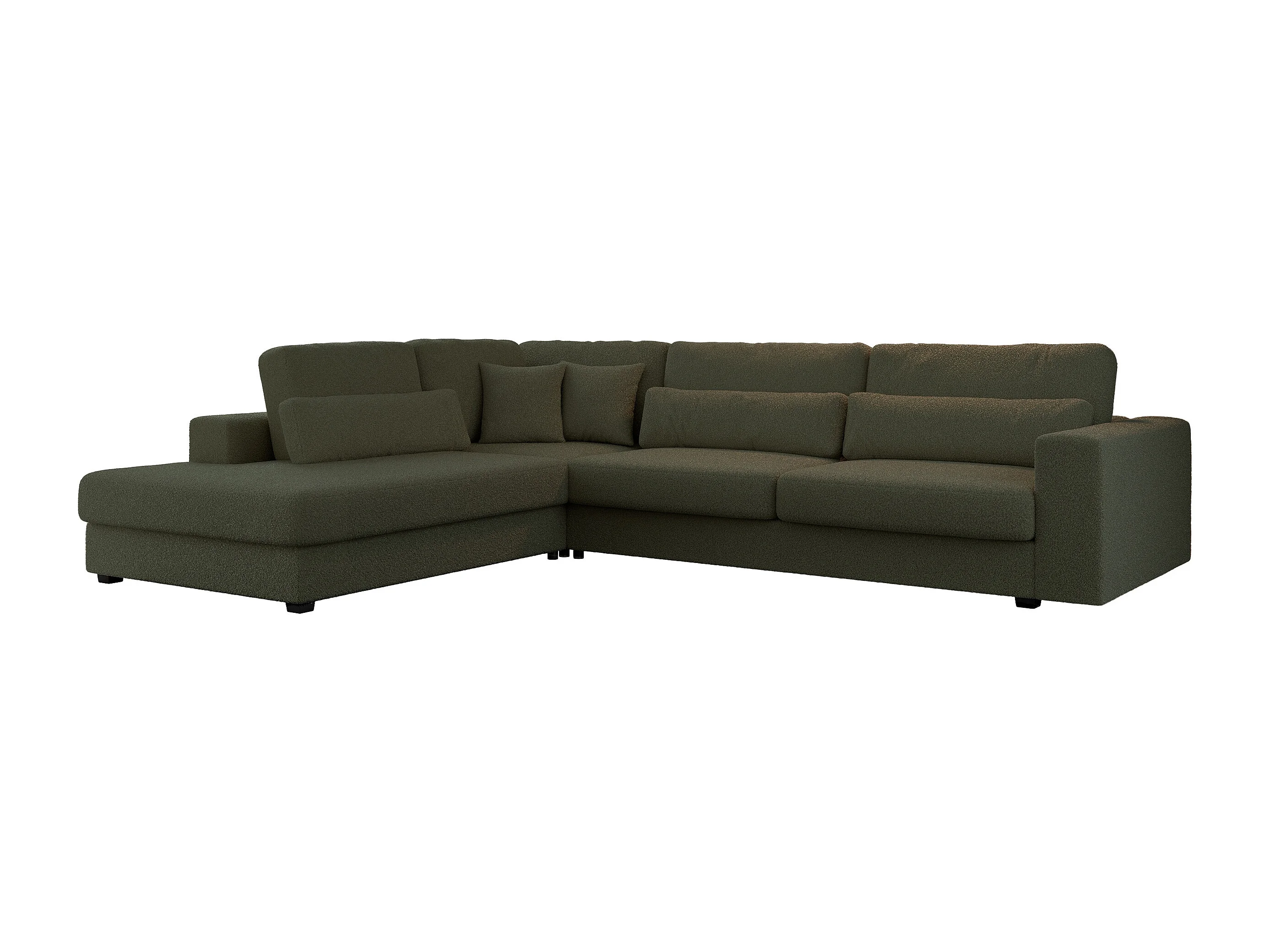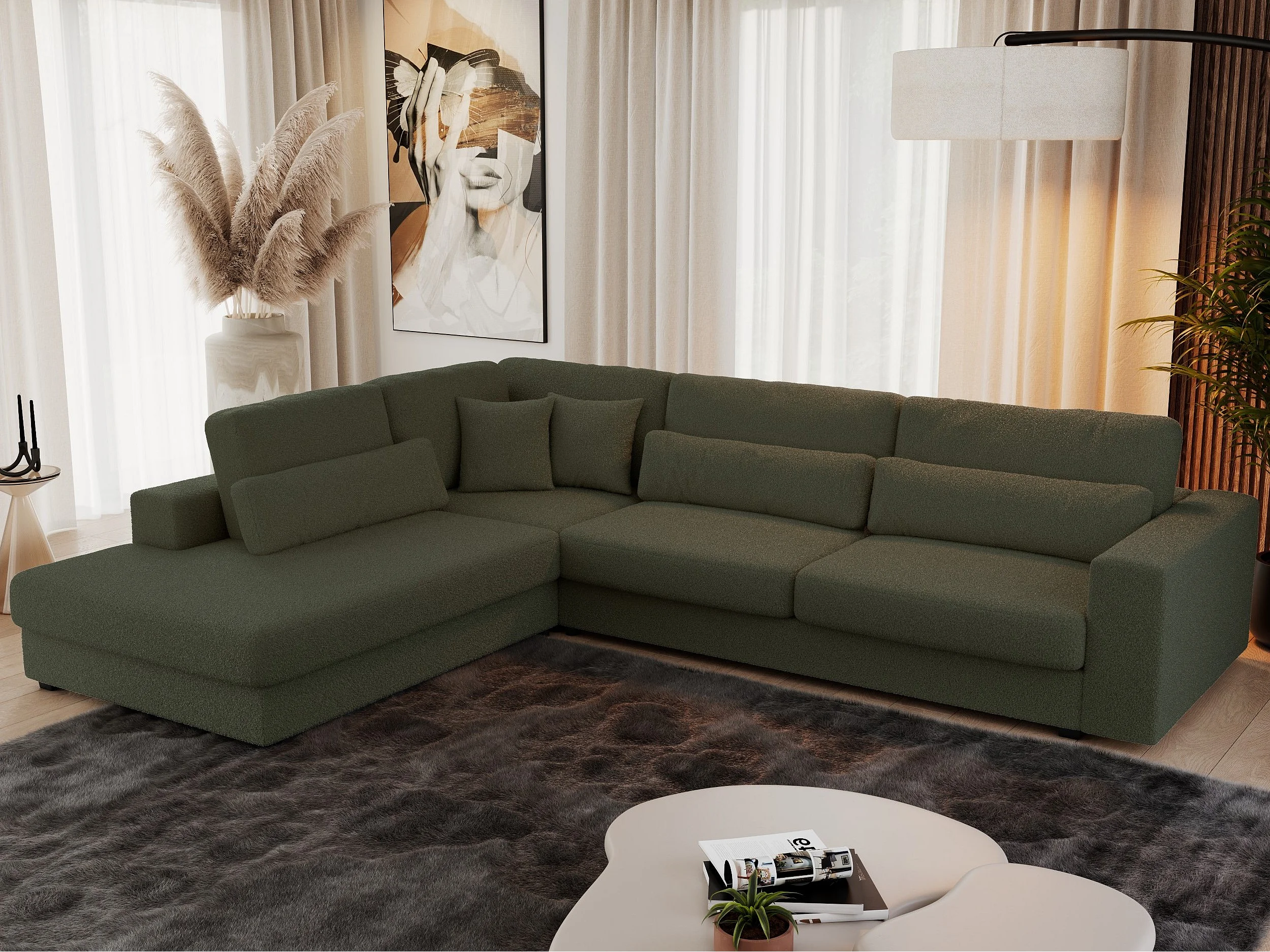 Ecksofa SAVONA - mit Armlehnen, lose Kissen, große L-förmige Ecke, Wohnlandschaft - Grün Boucle - Ecke Links