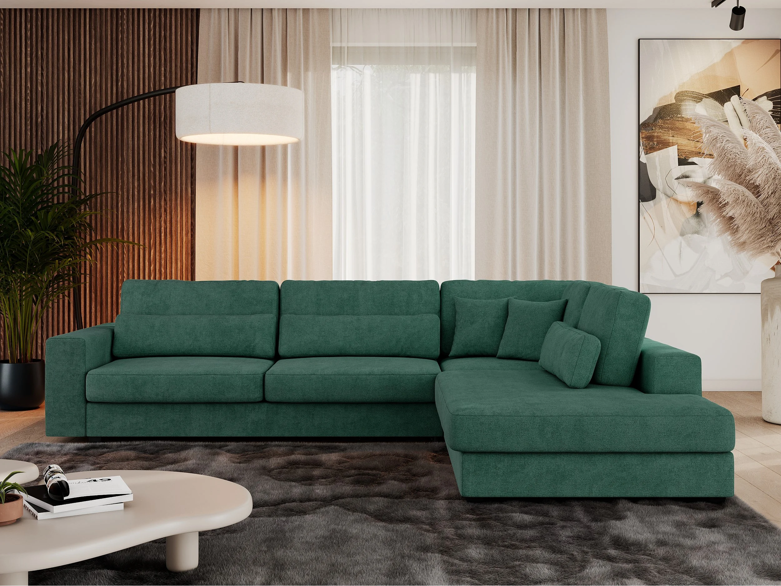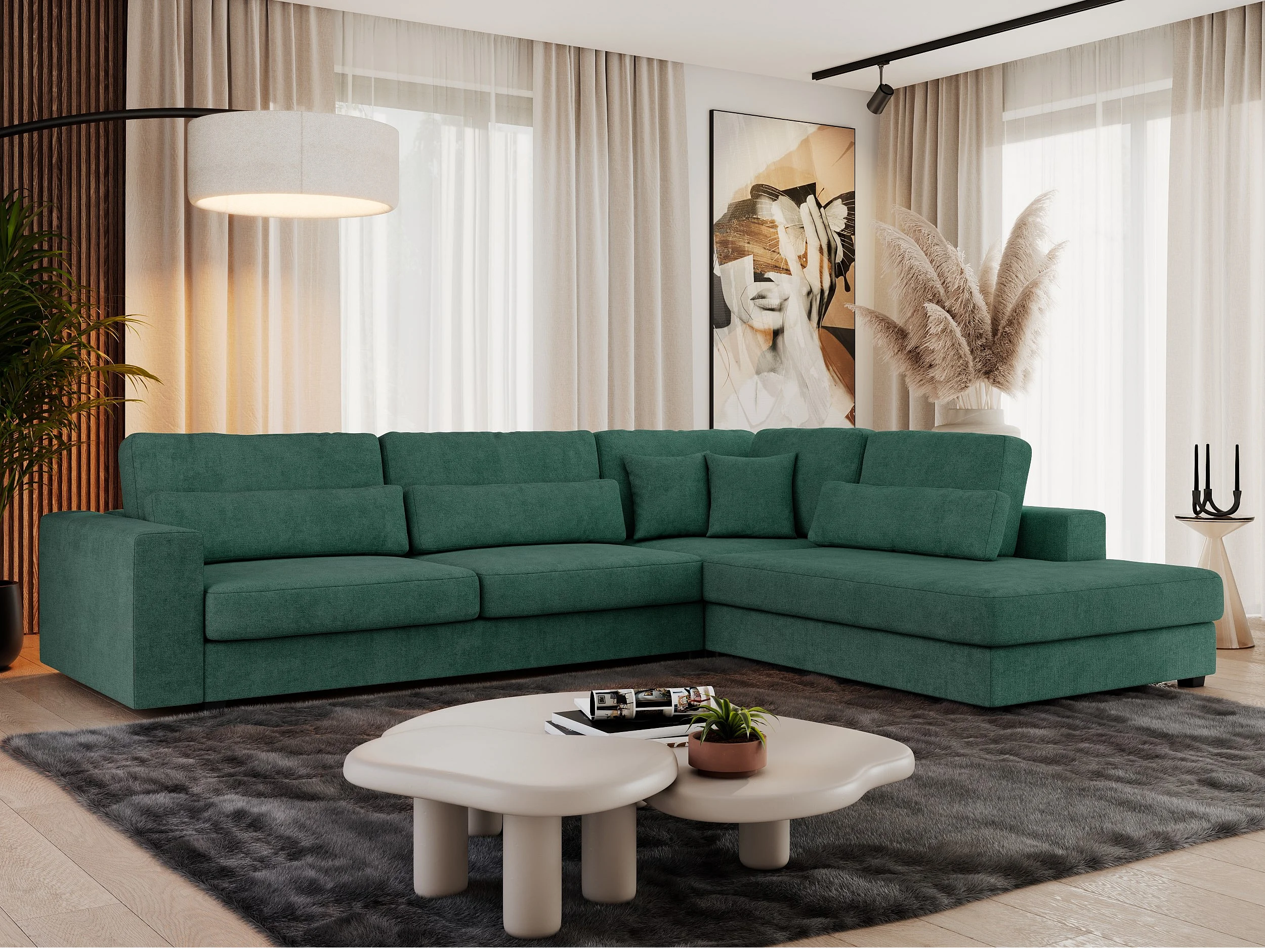 Ecksofa SAVONA - mit Armlehnen, lose Kissen, große L-förmige Ecke, Wohnlandschaft - Grün Strukture - Ecke Rechts