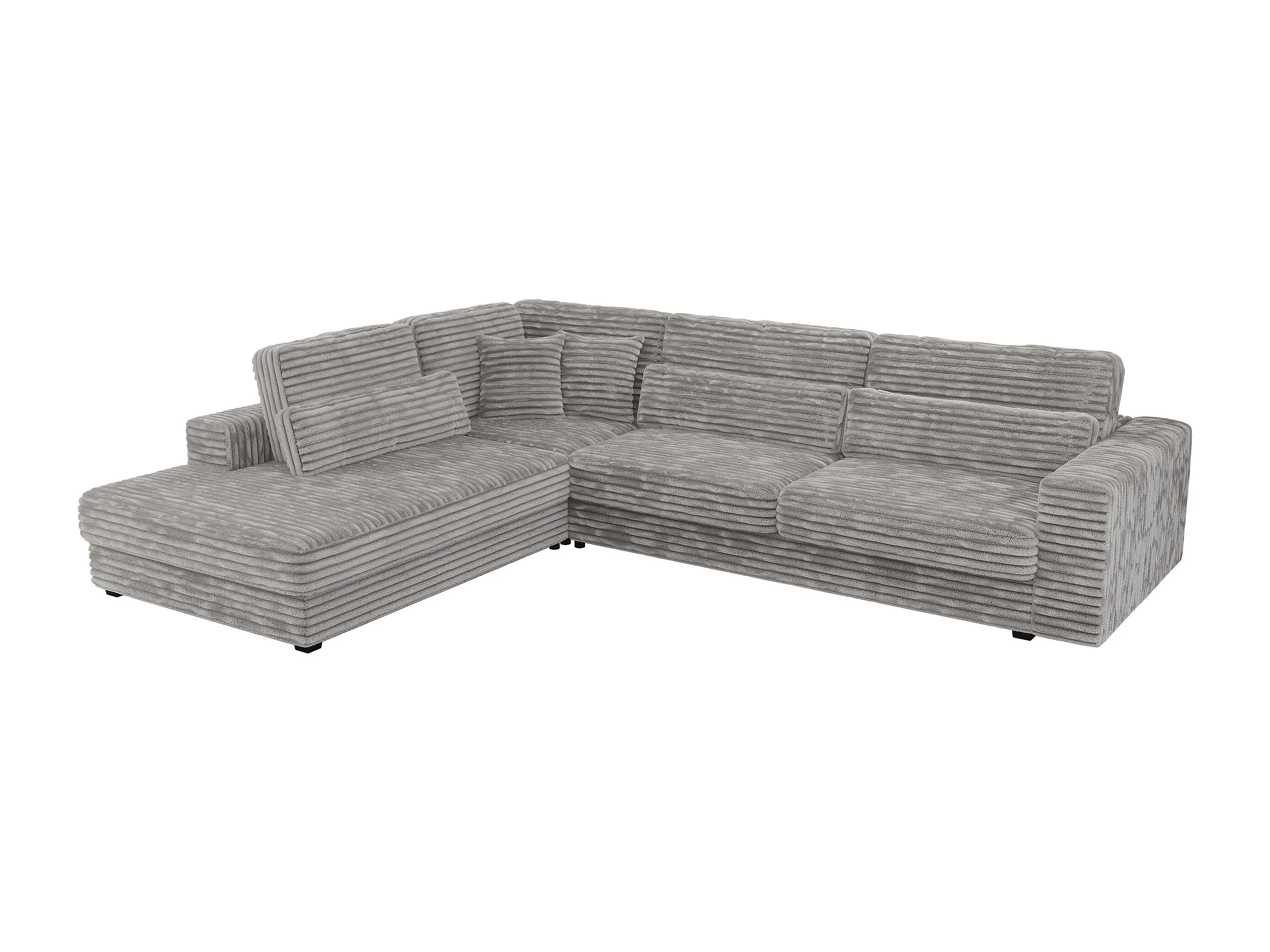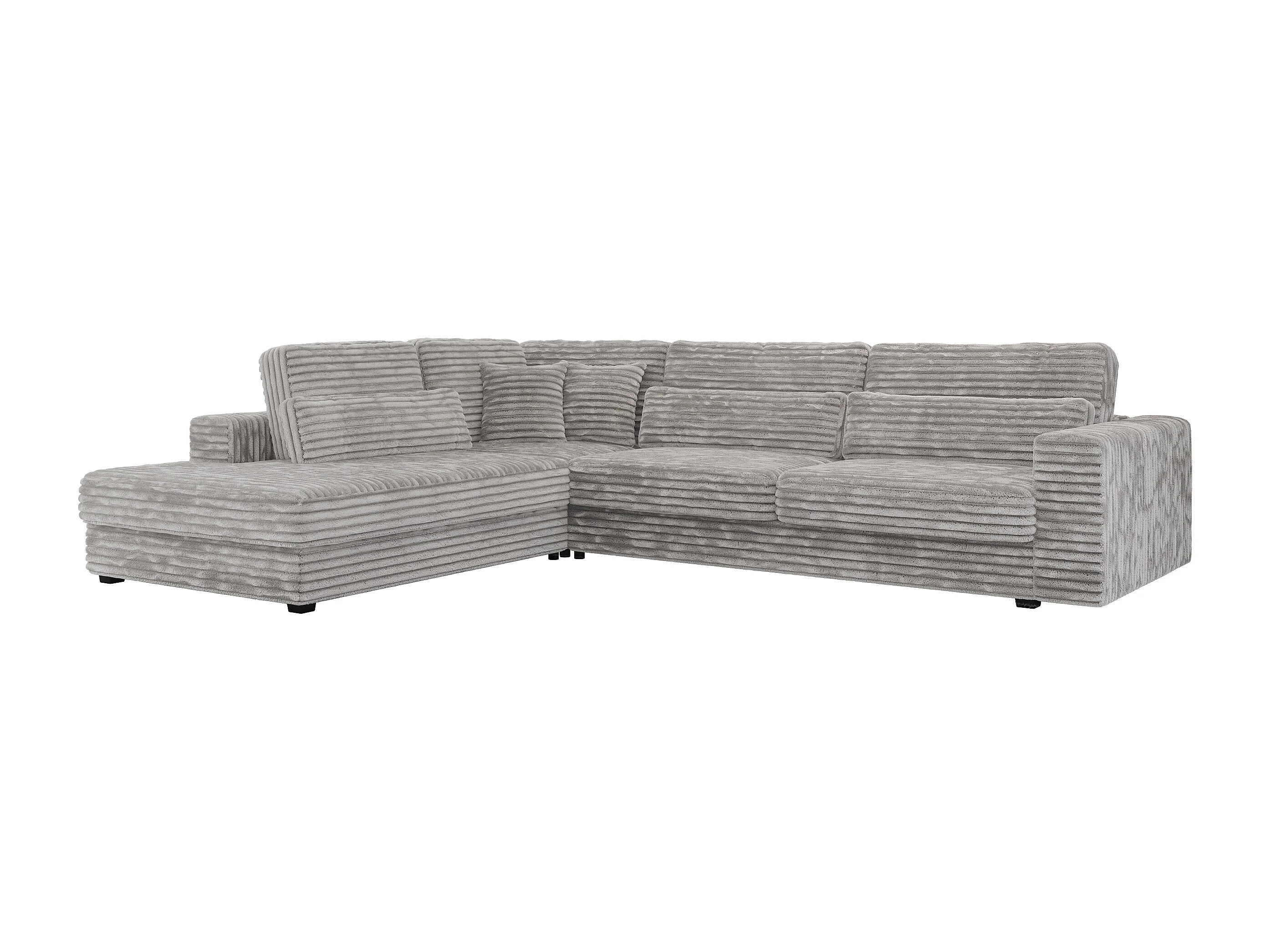 Ecksofa SAVONA - mit Armlehnen, lose Kissen, große L-förmige Ecke, Wohnlandschaft - Hellgrau Cord - Ecke Links