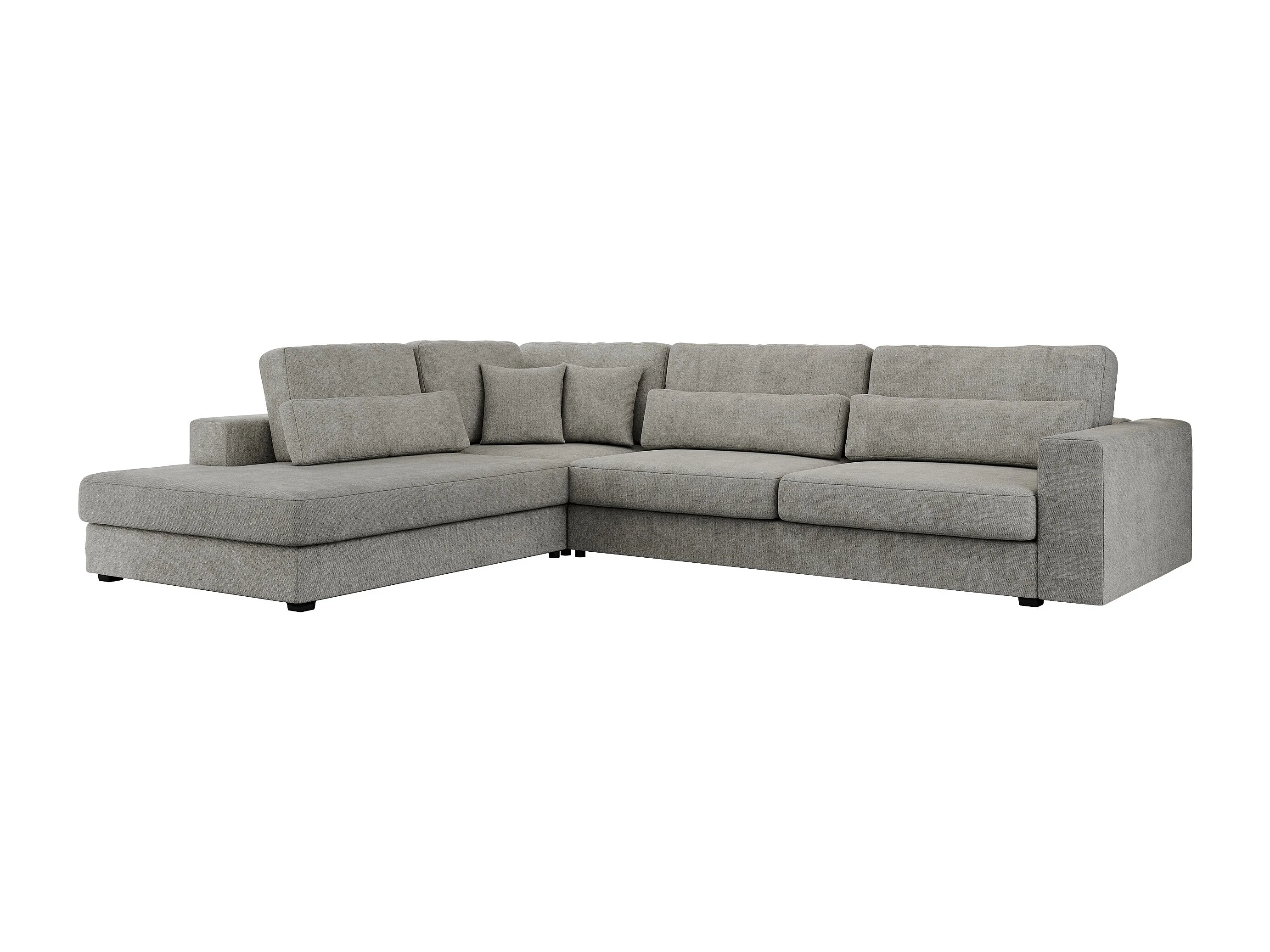 Ecksofa SAVONA - mit Armlehnen, lose Kissen, große L-förmige Ecke, Wohnlandschaft - Hellgrau Strukture - Ecke Links