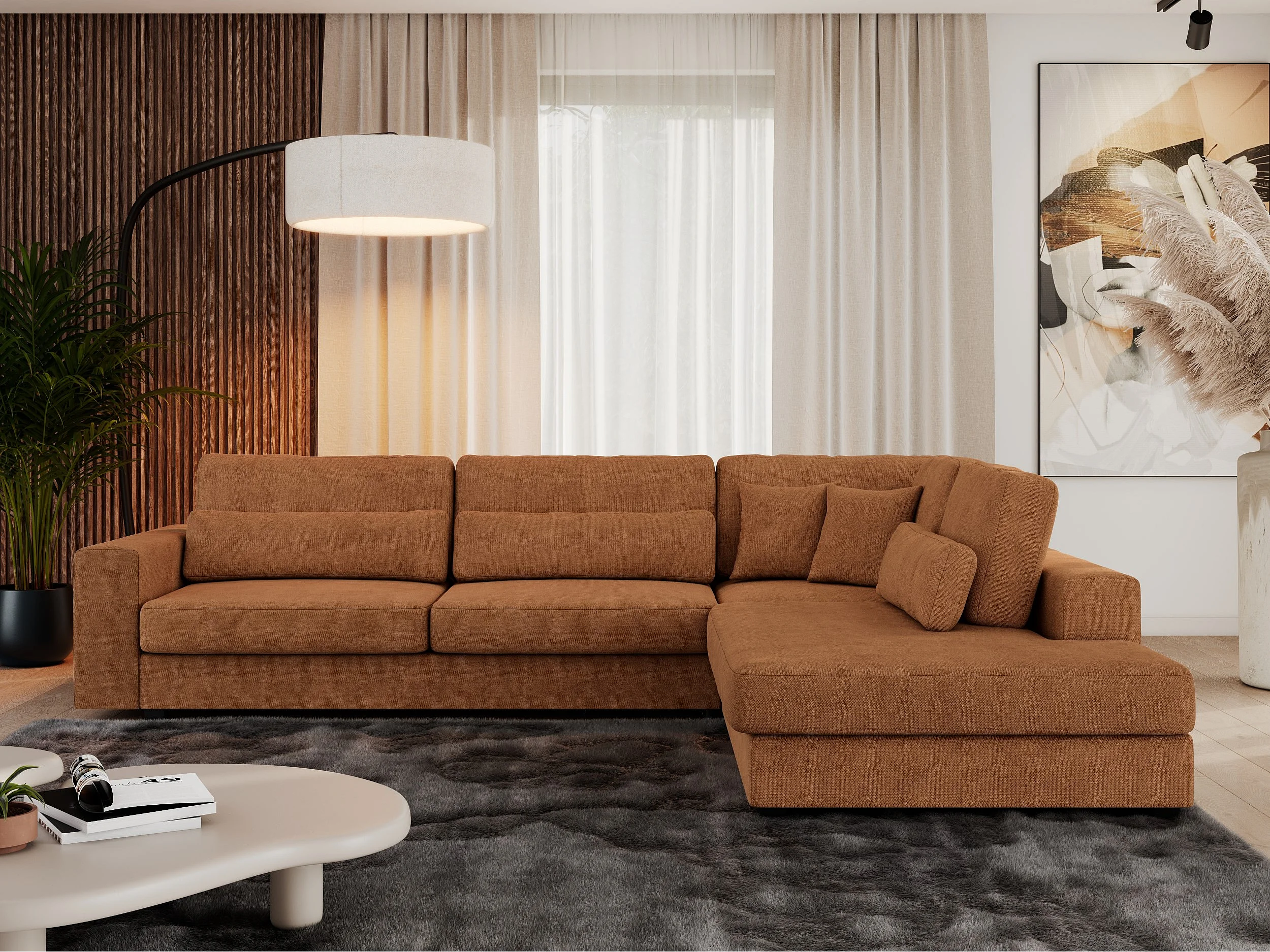 Ecksofa SAVONA - mit Armlehnen, lose Kissen, große L-förmige Ecke, Wohnlandschaft - Orange Strukture - Ecke Rechts