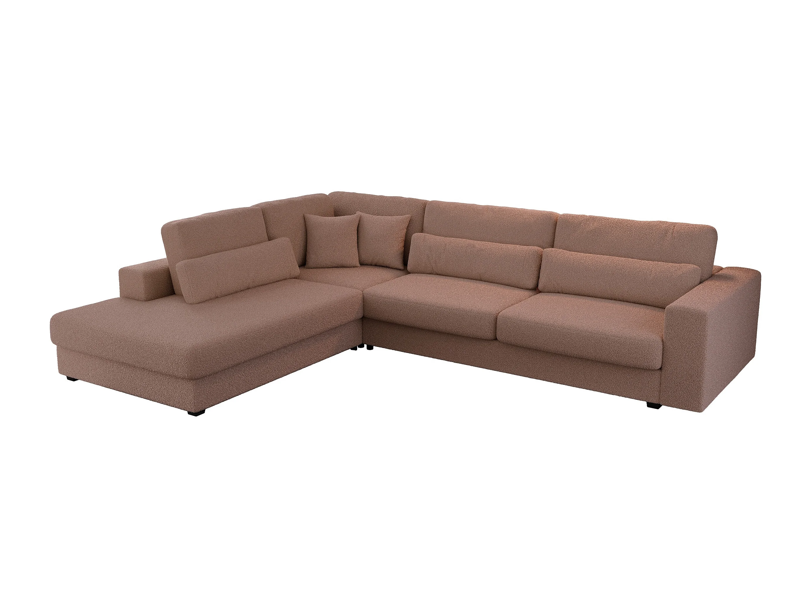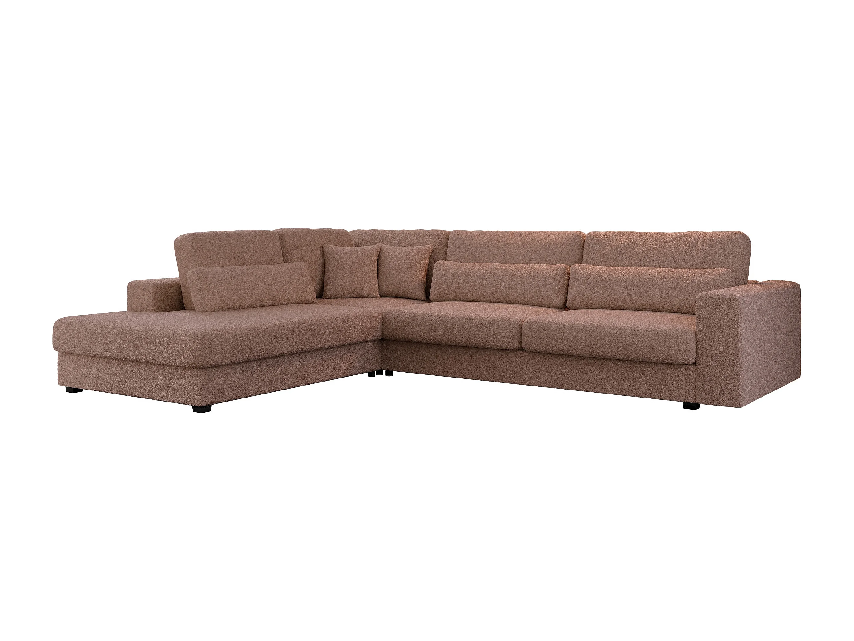 Ecksofa SAVONA - mit Armlehnen, lose Kissen, große L-förmige Ecke, Wohnlandschaft - Rosa Boucle - Ecke Links