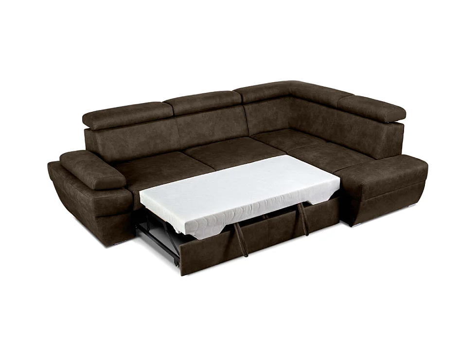 Ecksofa rechts mit Schlaffunktion - RATLO - Dunkelbraun