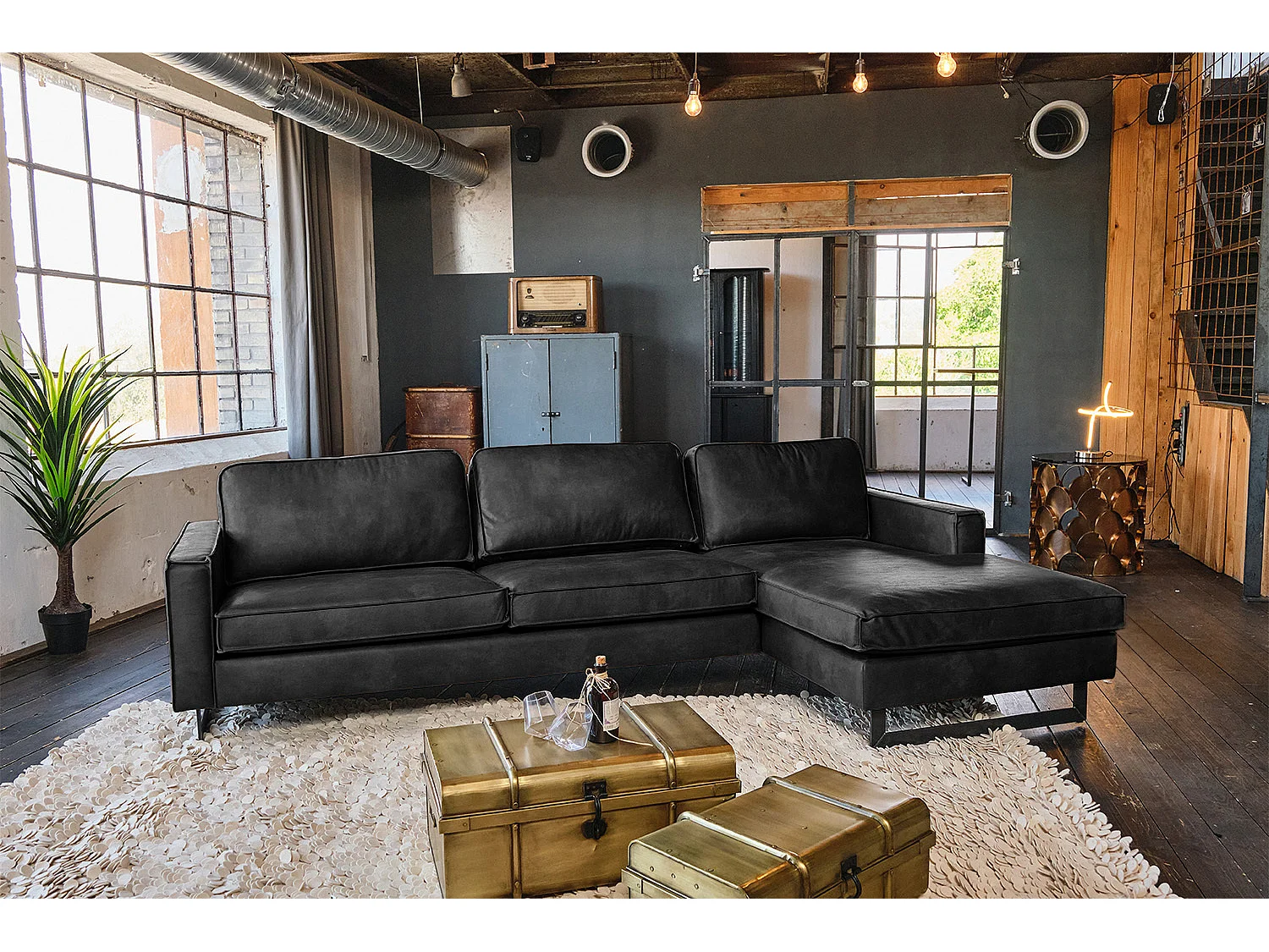 Ecksofa - Schwarz Lederfaserstoff - VILNIUS