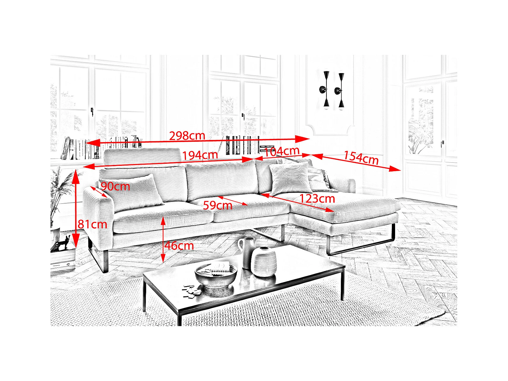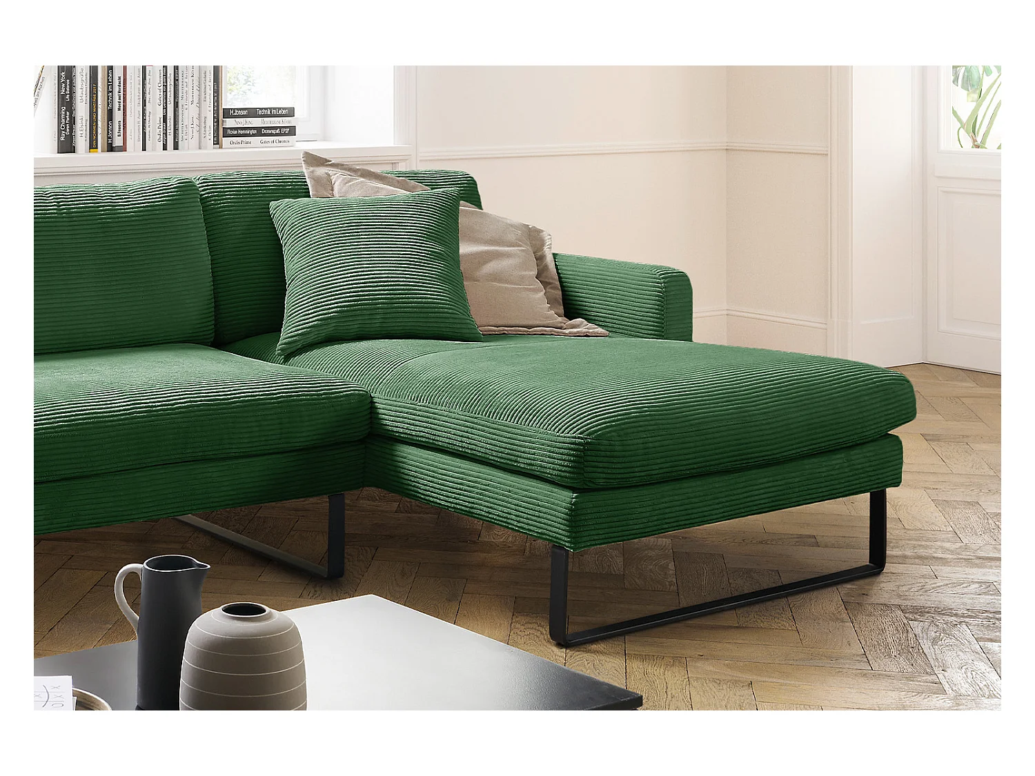 Ecksofa - Smaragdgrün Cord - RICARDA
